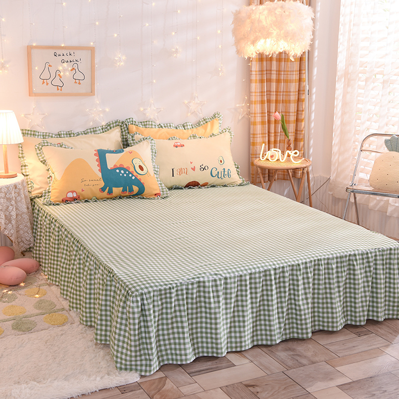 商品名称:莎臣豹2025新款水洗磨毛活性印花植物羊绒单床裙 绿小格