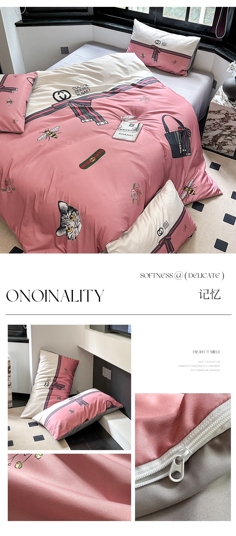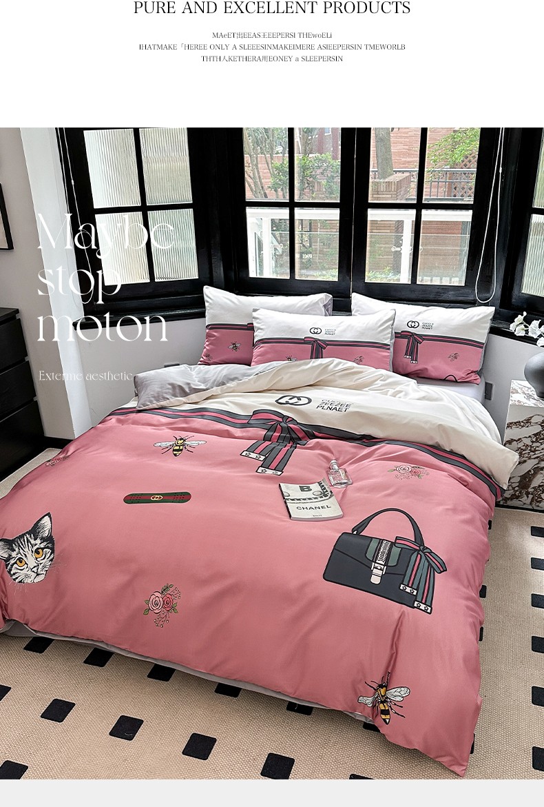 (总)摩卡(乐趣) 2024新款亲肤全棉网红轻奢四件套,H马,大H,粉红兔,黑白迪,黑白V,黑双C,咖古,咖色熊,蓝咖熊,毛绒熊,趴趴熊,七彩迪,小楂花,萌兔