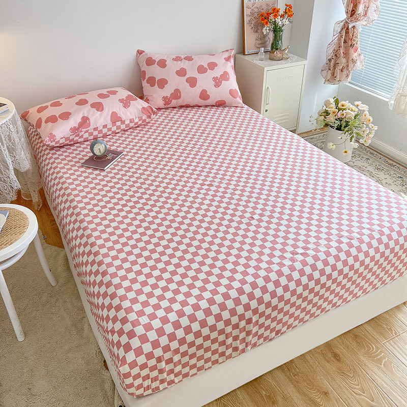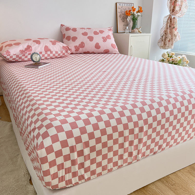 麦伦 2023新款 全棉小清新单品床笠系列 棋盘格粉