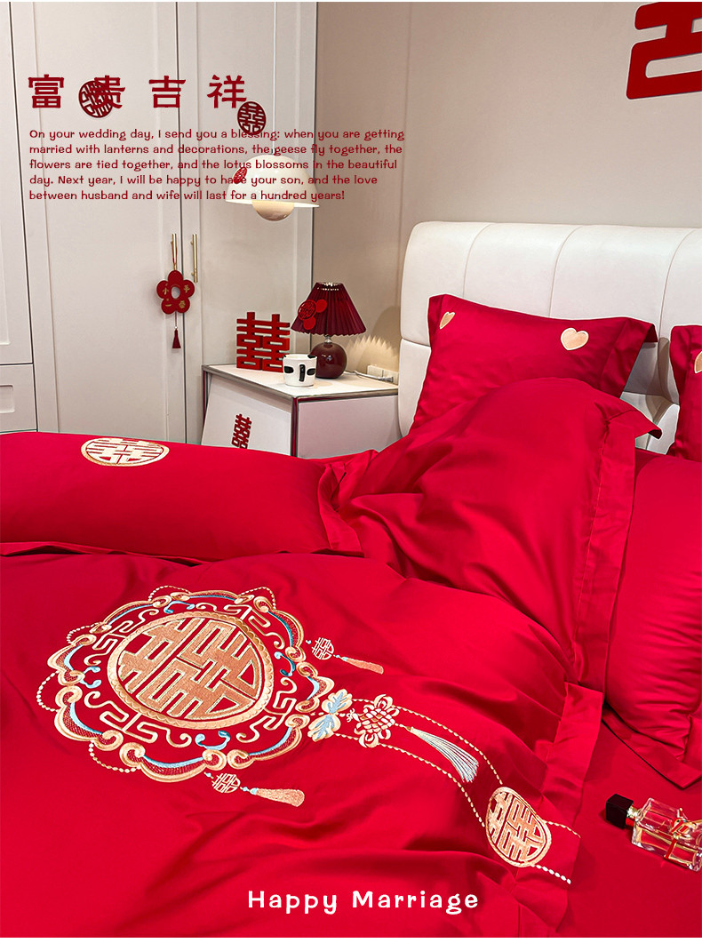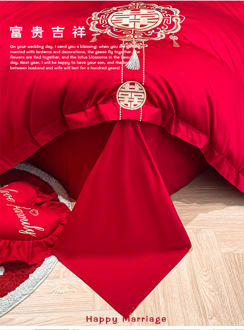 当前位置: 91家纺网 > 商品网购 > 床品套件 > 四件套 > 婚庆四件套 > 新款亲肤舒适时尚婚庆四件套系列 富贵吉祥
