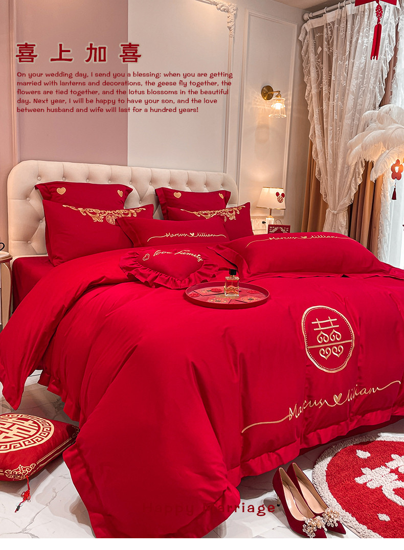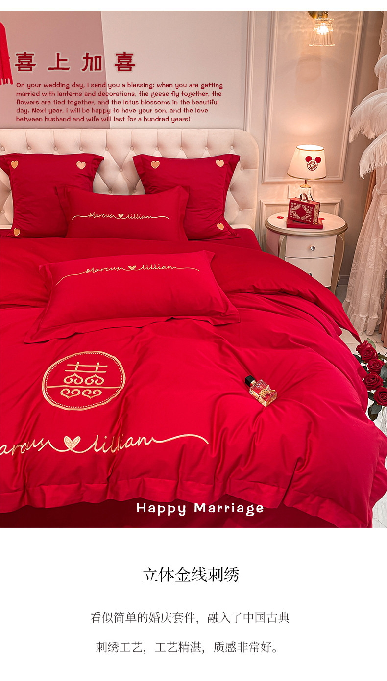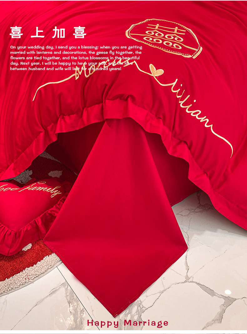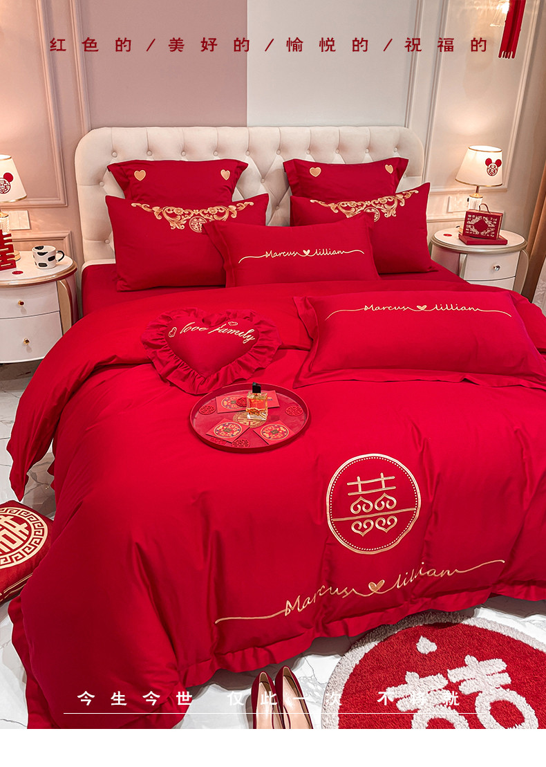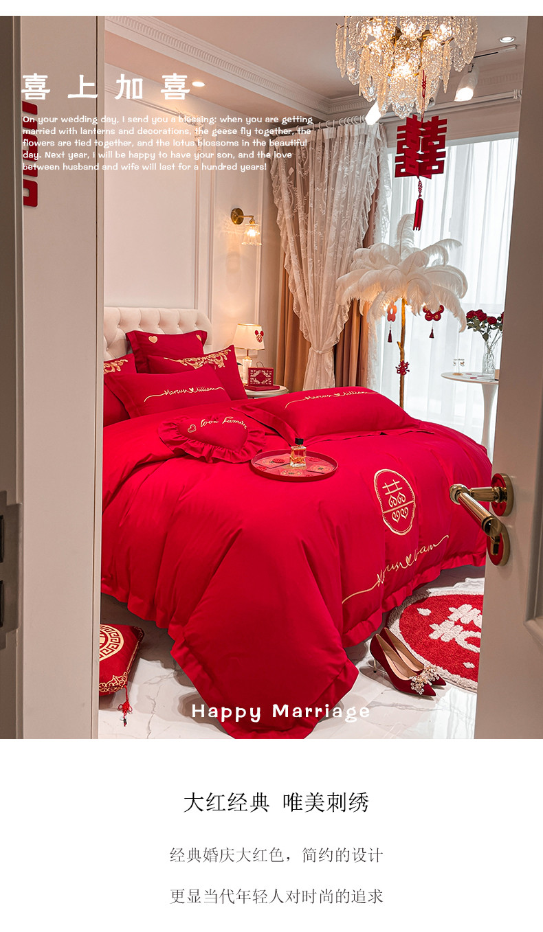 当前位置: 91家纺网 > 商品网购 > 床品套件 > 四件套 > 婚庆四件套 > 新款亲肤舒适时尚婚庆四件套系列 喜上加喜