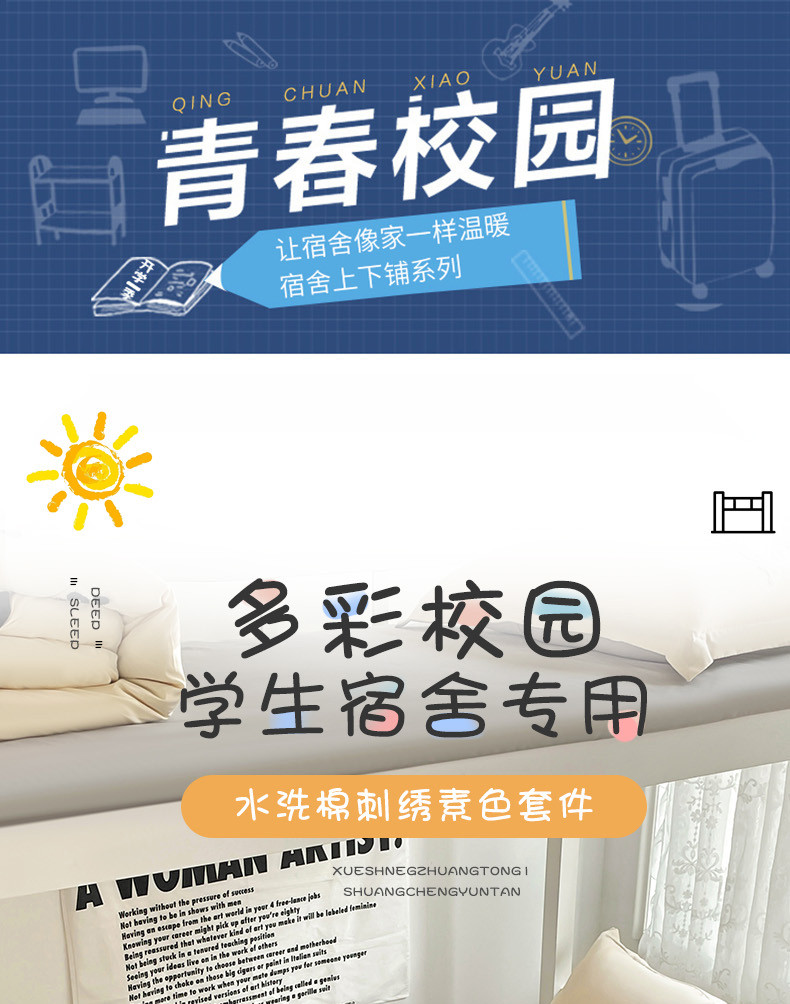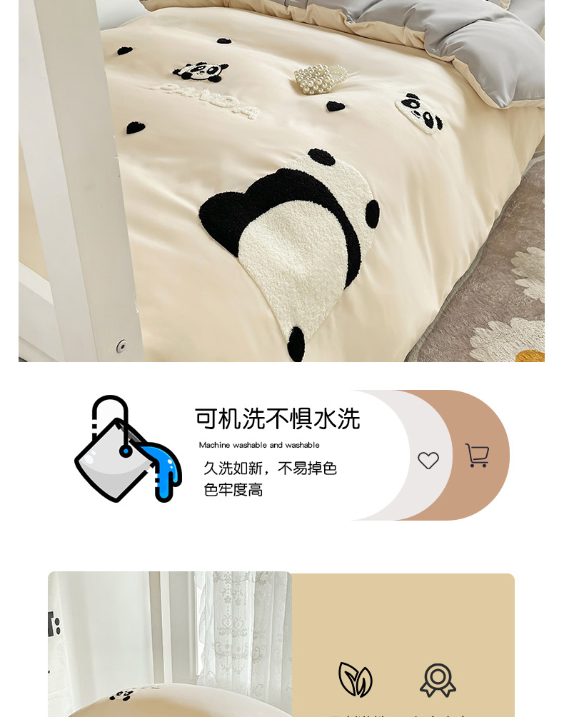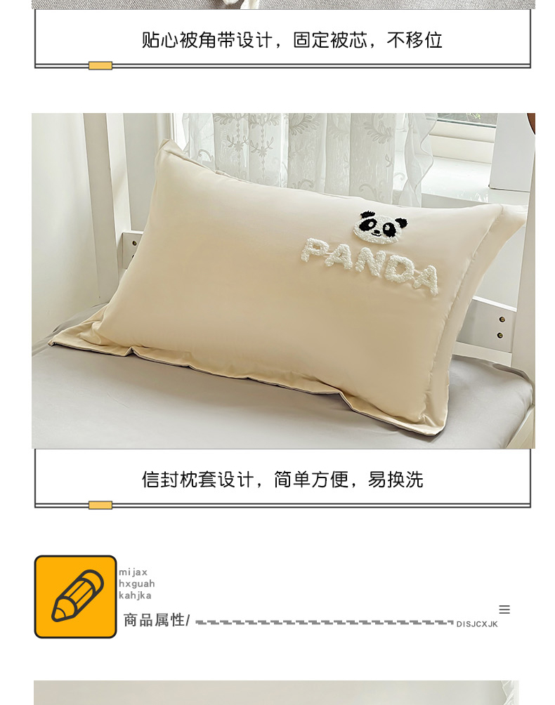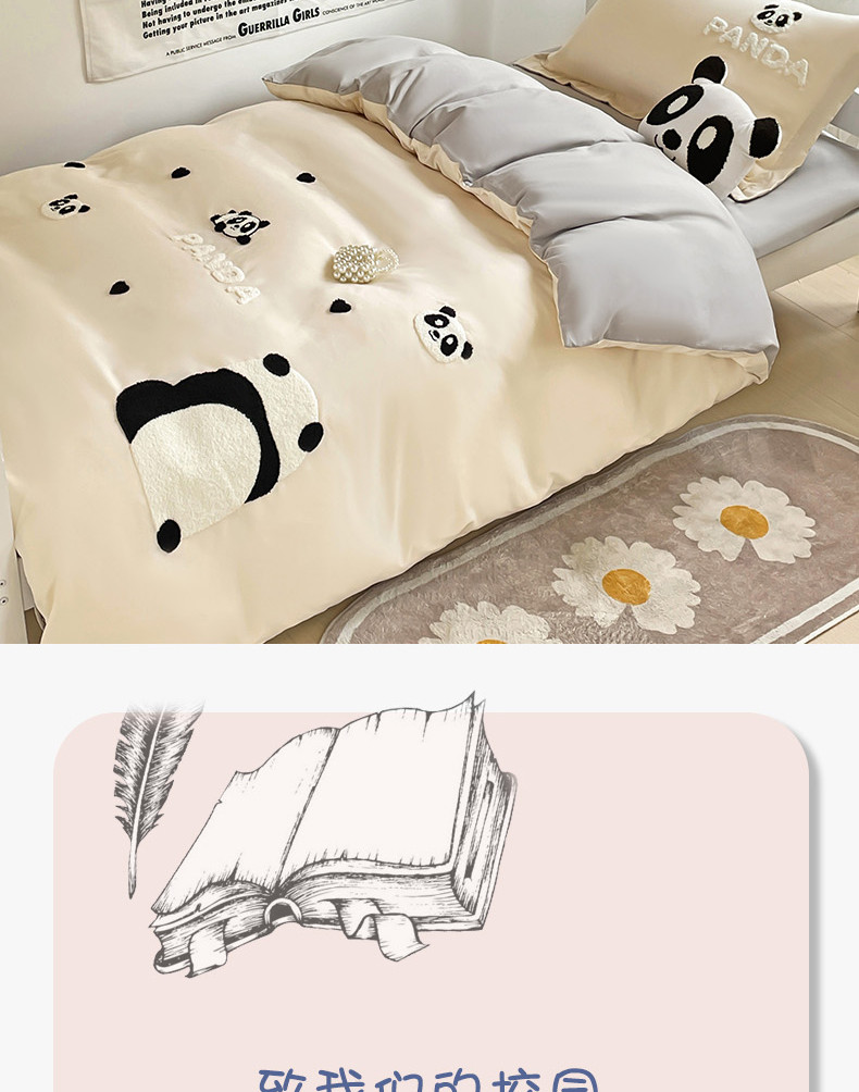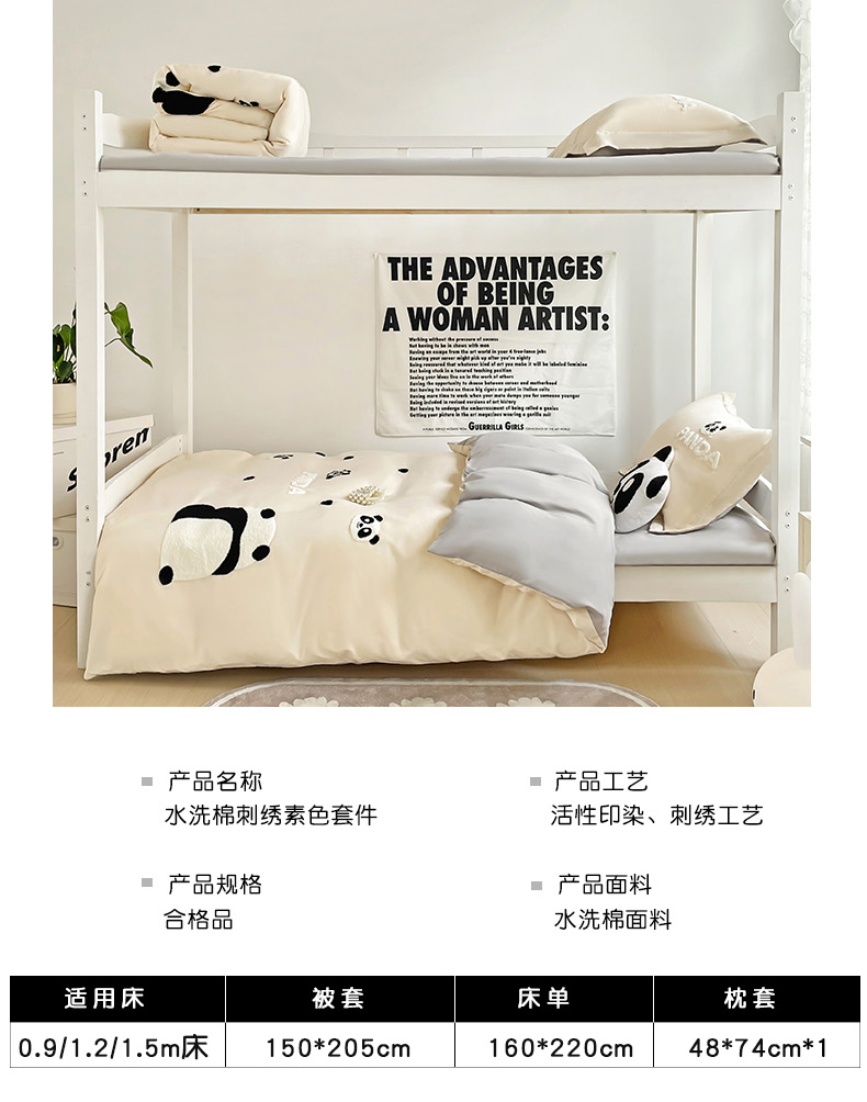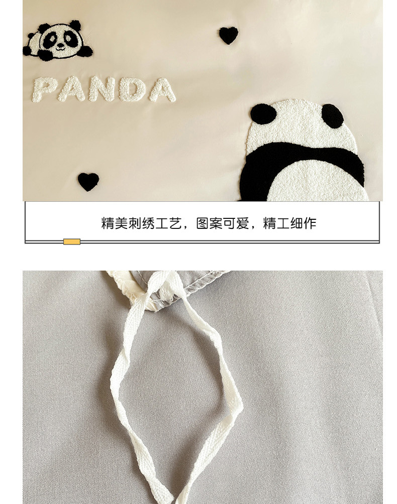 商品名称:娜娜 2023新款水洗棉刺绣素色学生三件套 熊猫嘟嘟-白灰