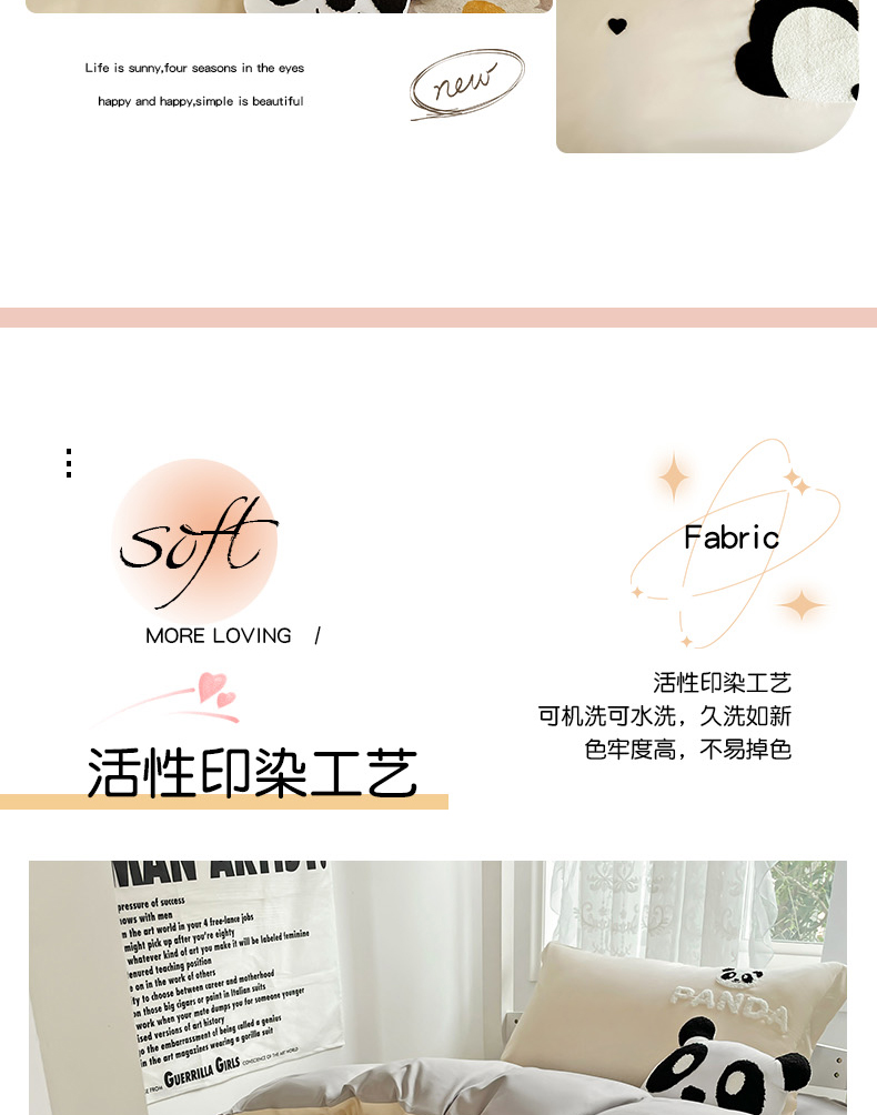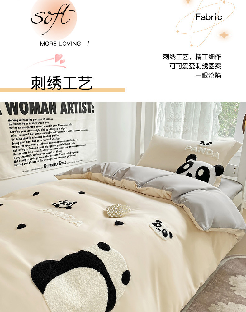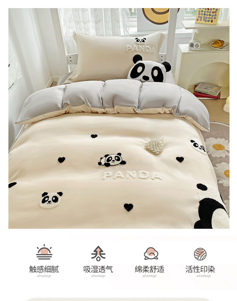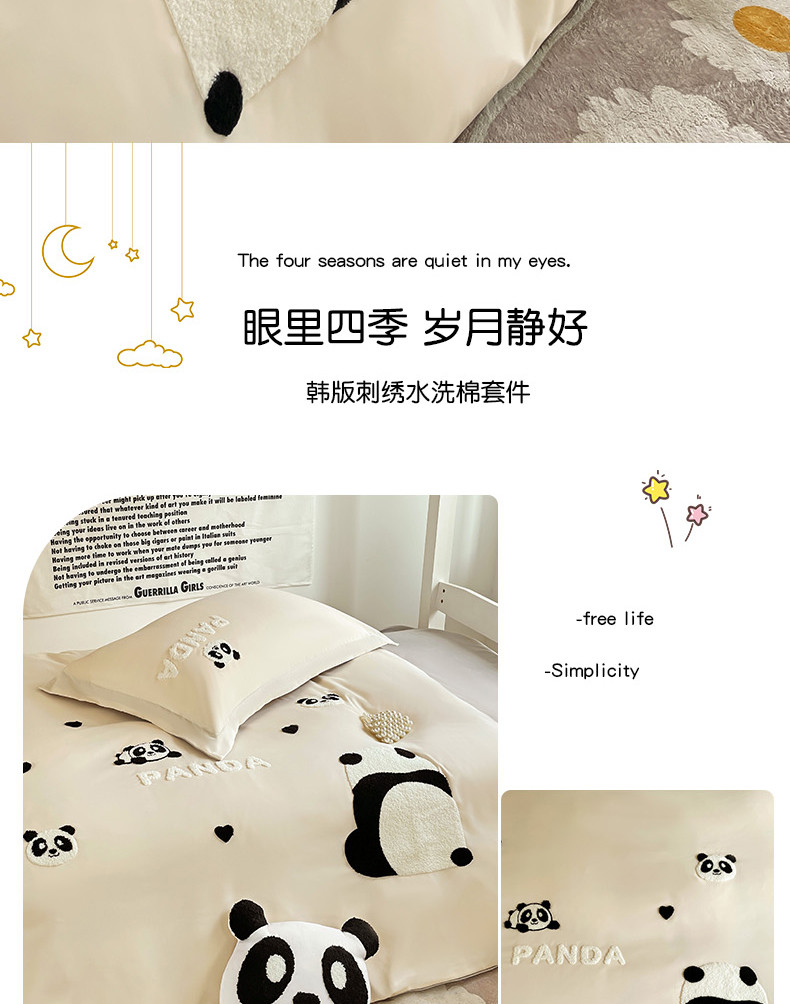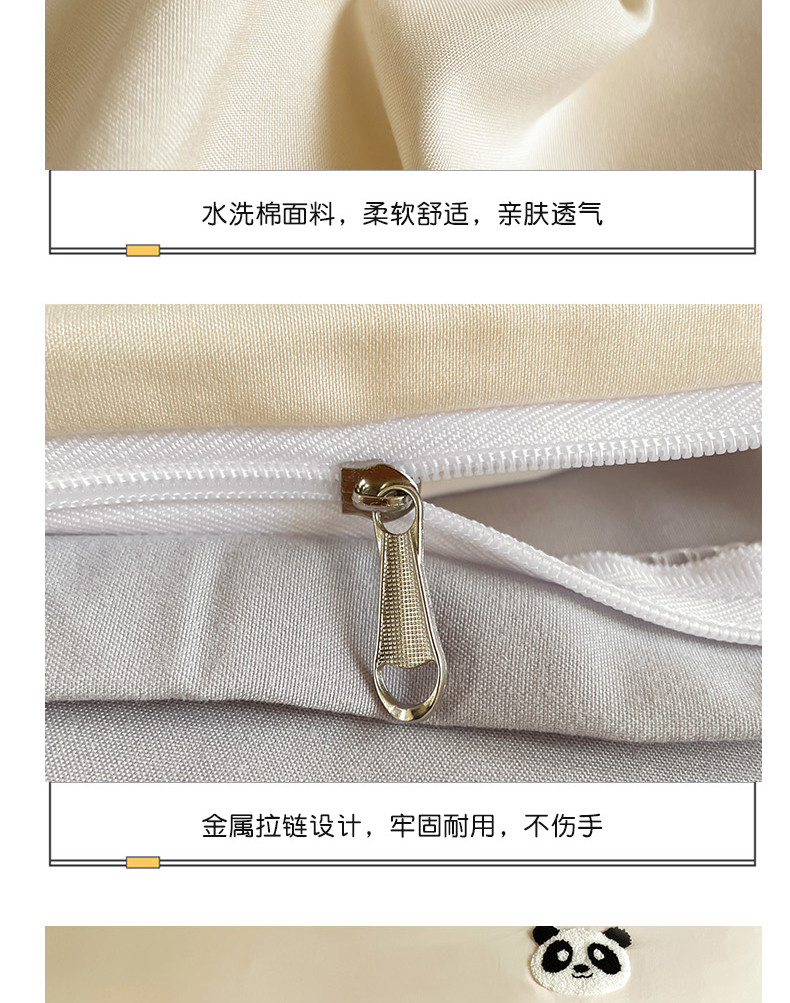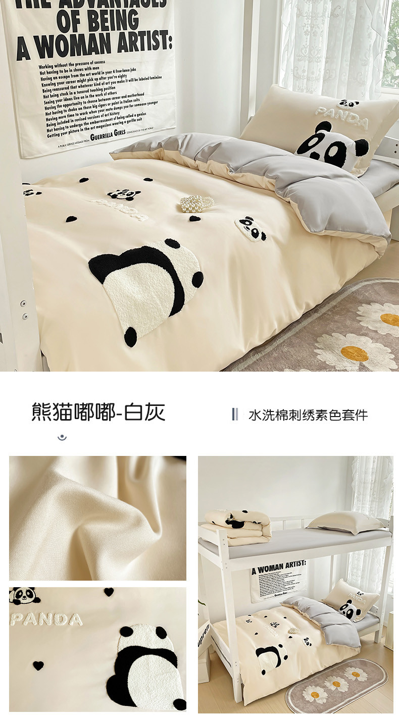 娜娜 2023新款水洗棉刺绣素色学生三件套 熊猫嘟嘟-白灰