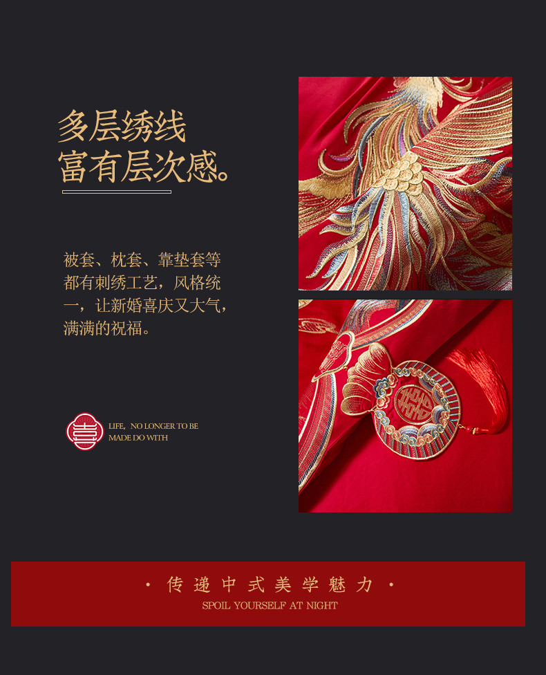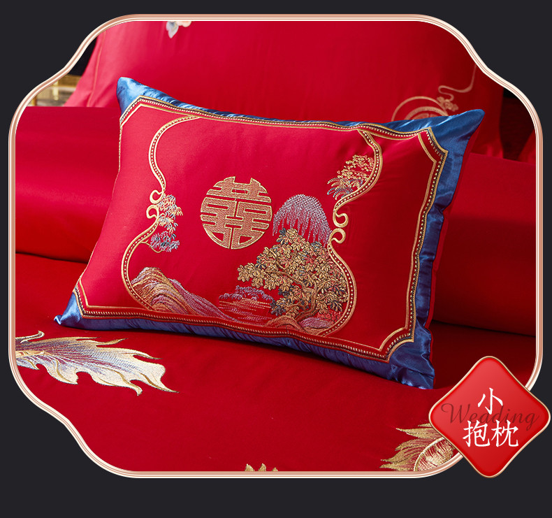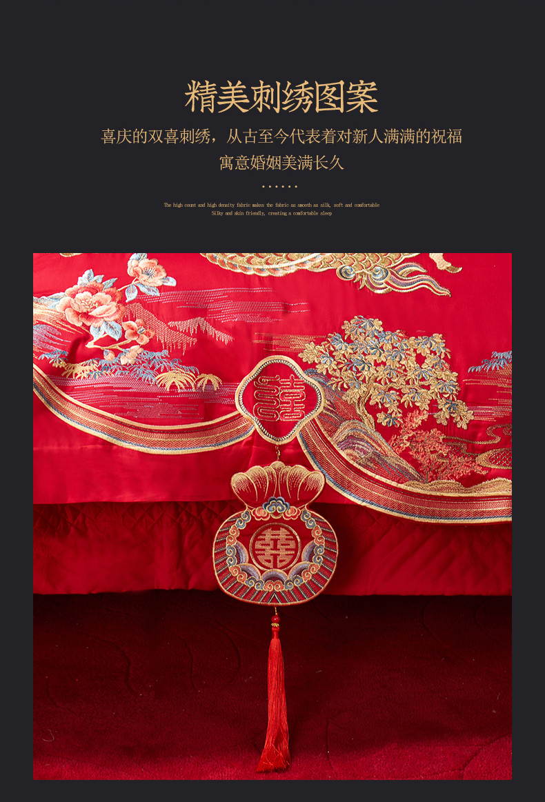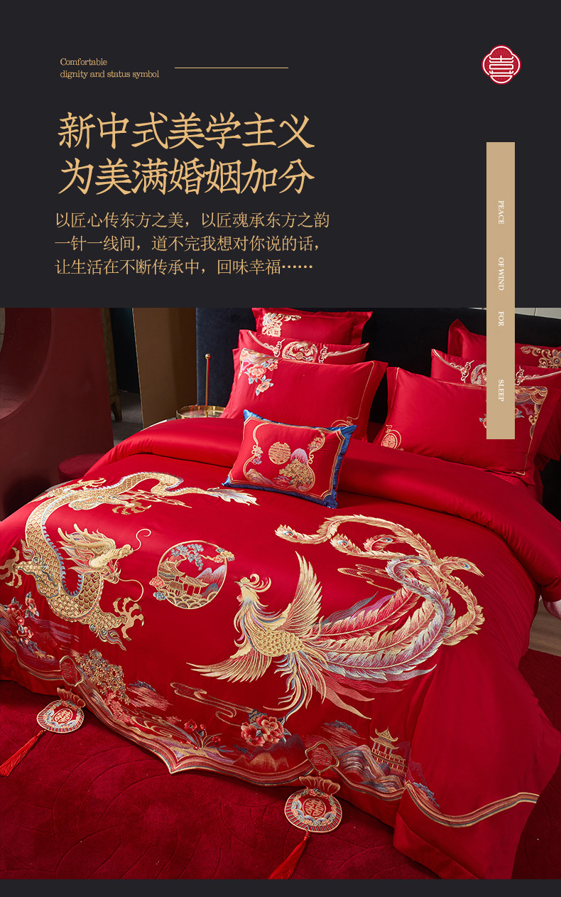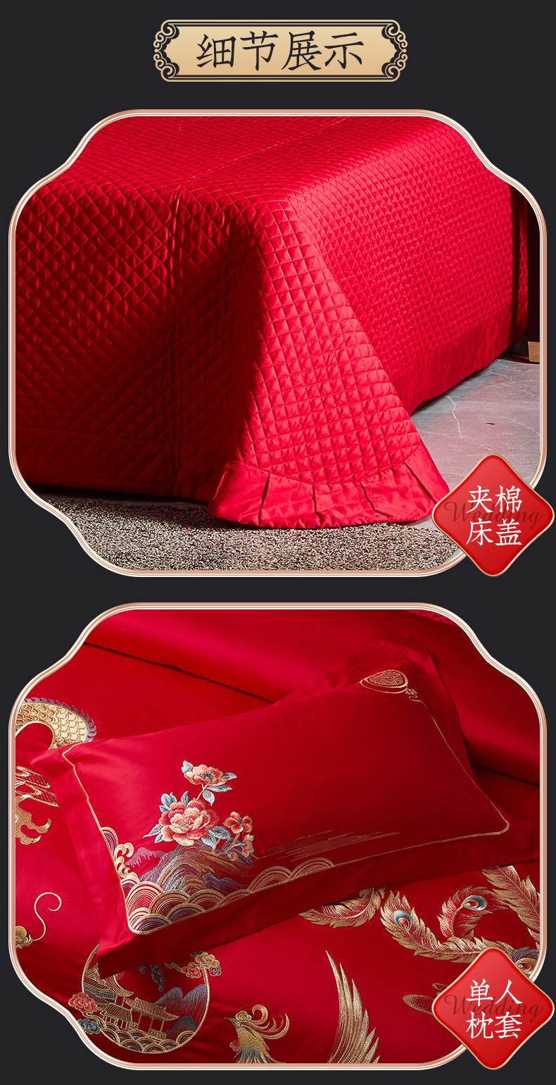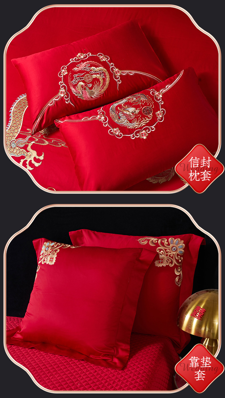 当前位置: 91家纺网 > 商品网购 > 床品套件 > 四件套 > 提花四件套 > 2024新款高支高密纯棉提花长绒棉大红婚庆四件套多件套 龙凤情缘