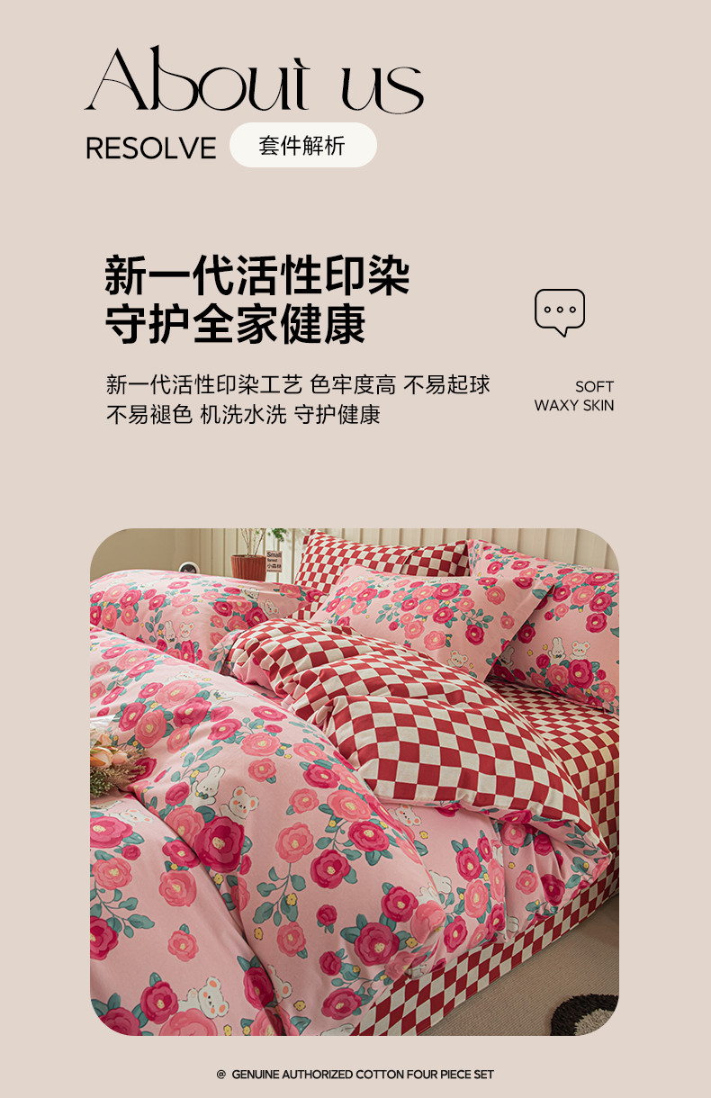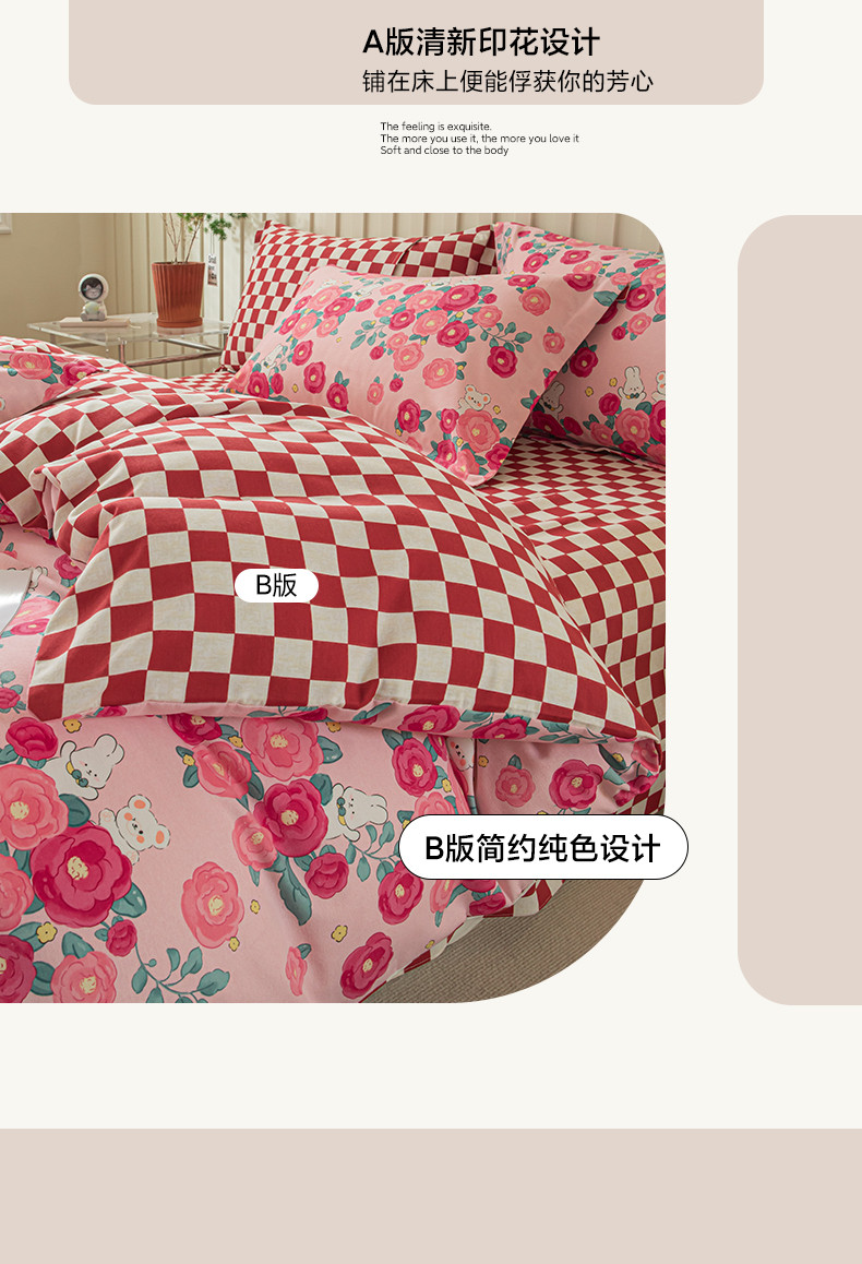 卡巴伦家纺 2023新款磨毛小清新印花系列四件套 闭月羞花