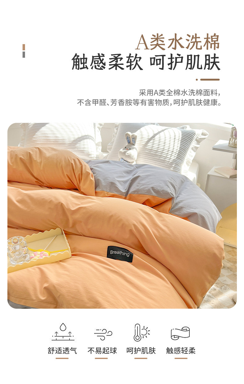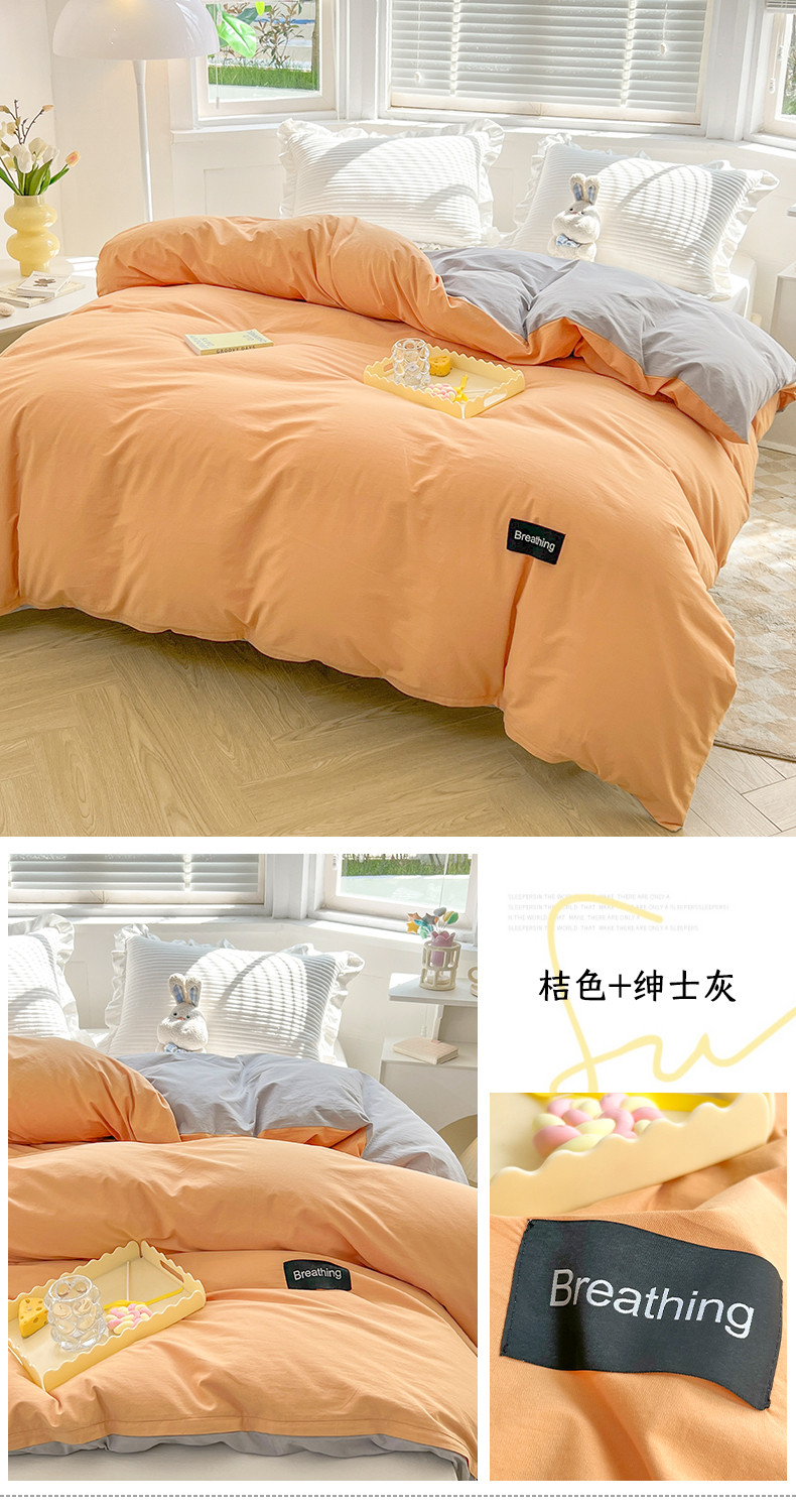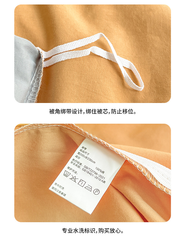 商品名称:绵庭家纺 2023新款全棉水洗棉拼色单被套 桔色+绅士灰