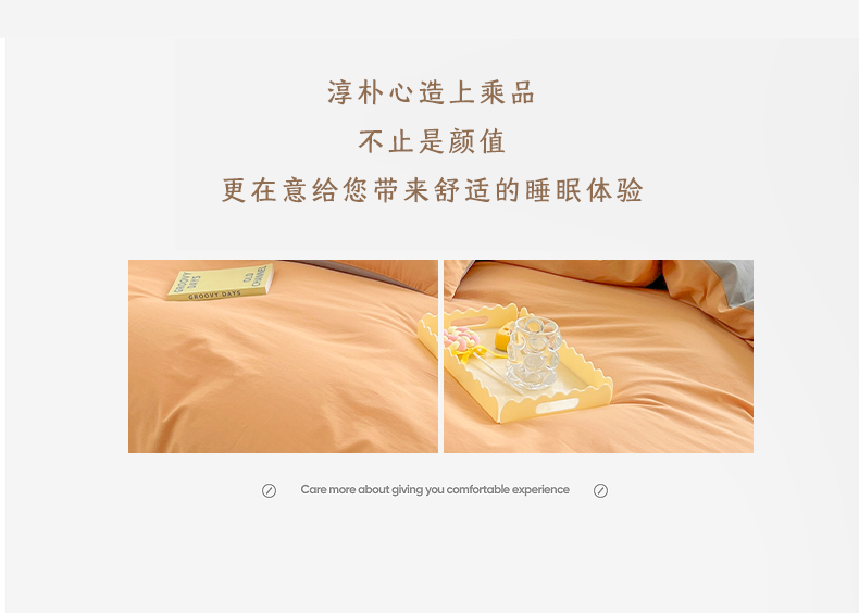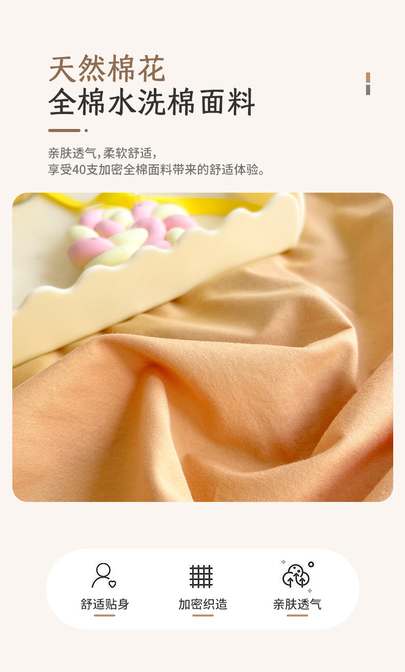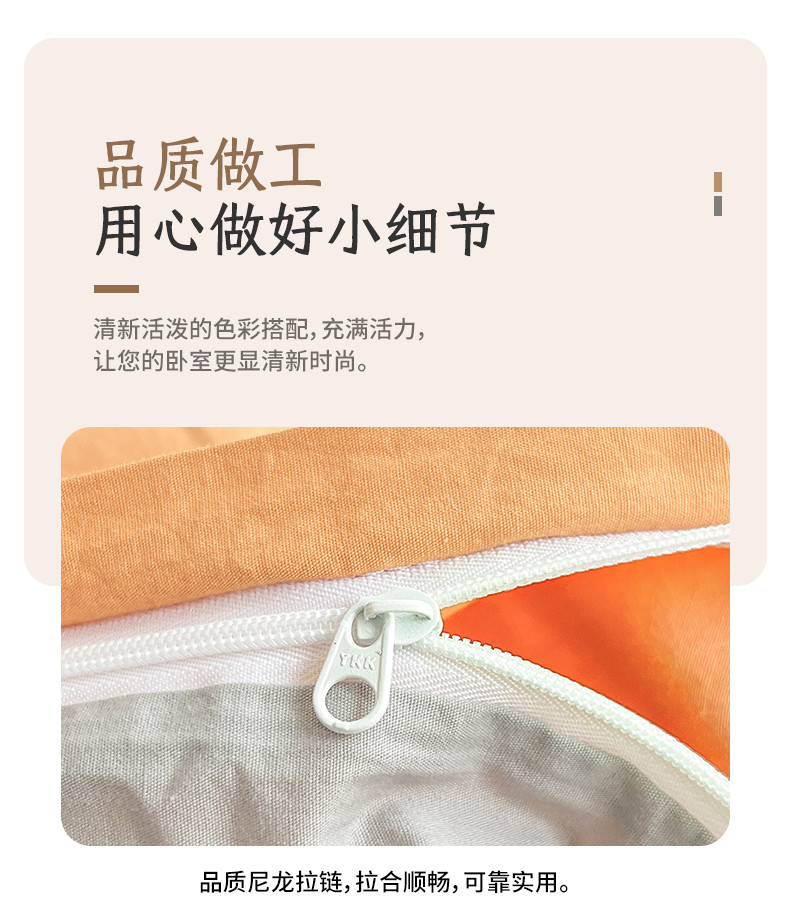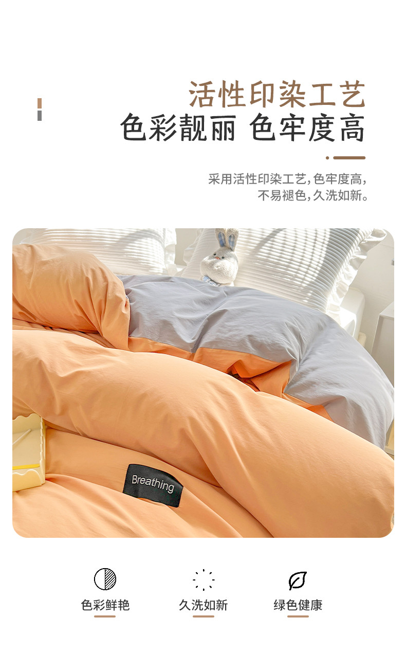 商品名称:绵庭家纺 2023新款全棉水洗棉拼色单被套 桔色+绅士灰