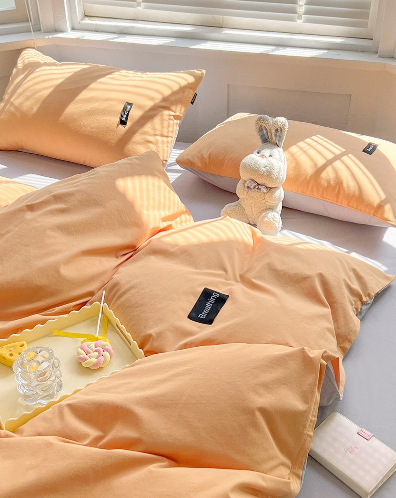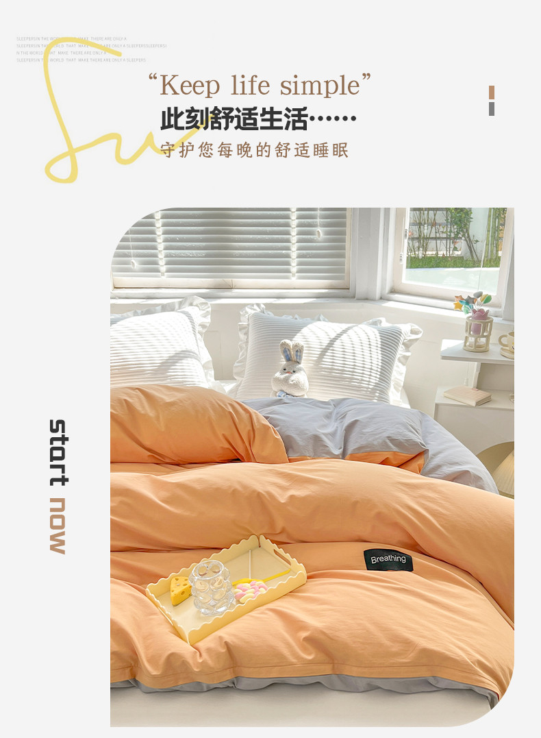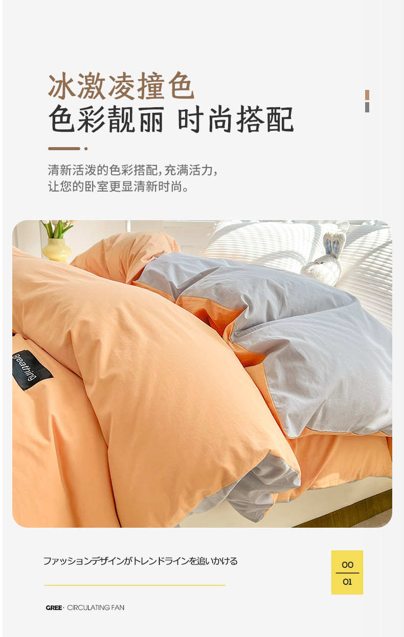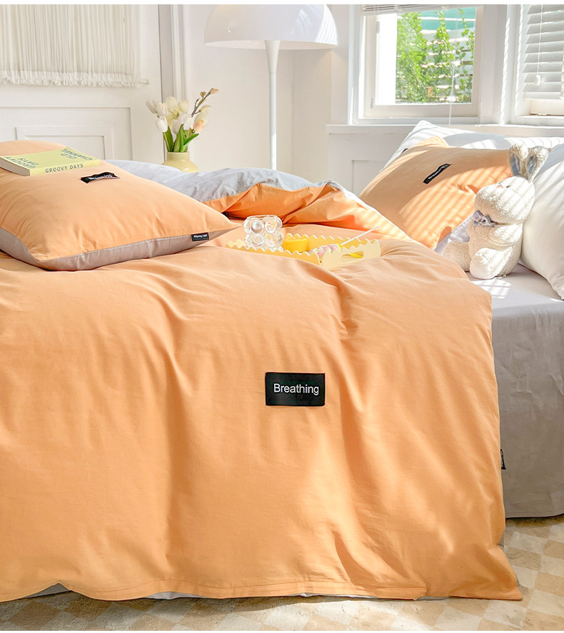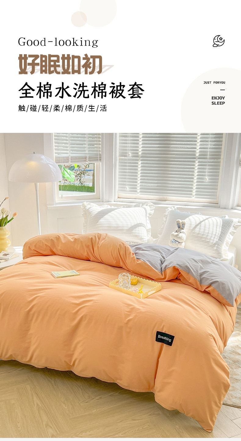 绵庭家纺 2023新款全棉水洗棉拼色单被套 桔色+绅士灰