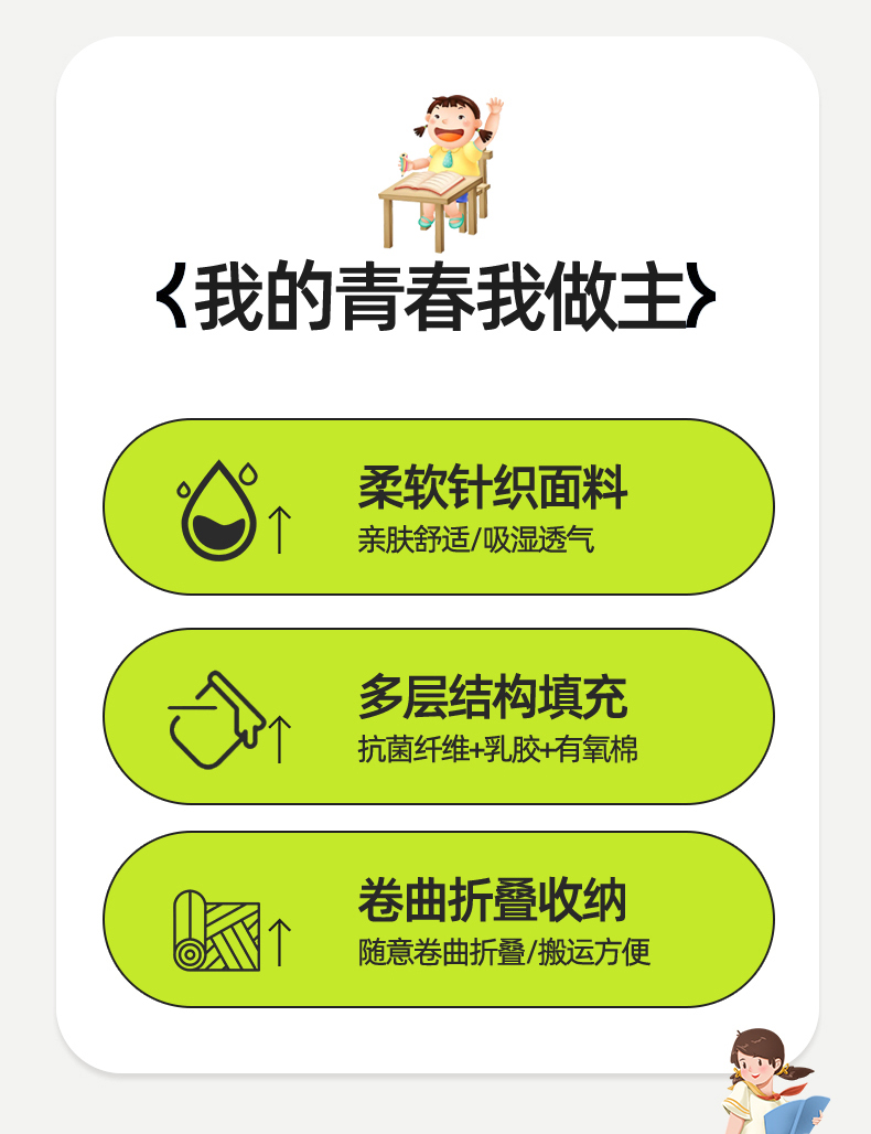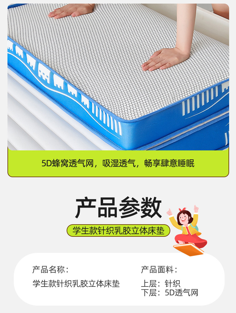 商品名称:(总)布卢姆2025新款A类针织乳胶记忆海绵立体学生床垫垫子-长城系列