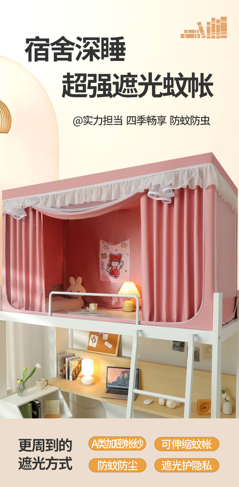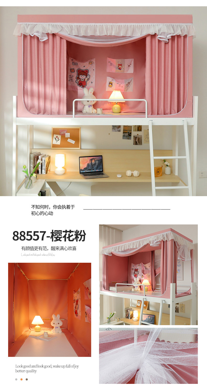 • 91家纺网 家纺一手货源 找家纺 夏彩 88575加强遮光涂层窗帘学生上下铺拉链蚊帐 88557-豆沙粉