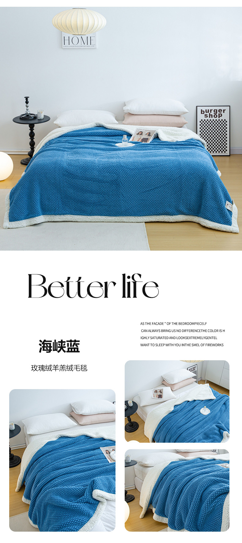商品名称:羋多2023年新款AB版提花塔芙绒羊羔绒毯子舒棉绒毛毯 玫瑰绒-海峡蓝
