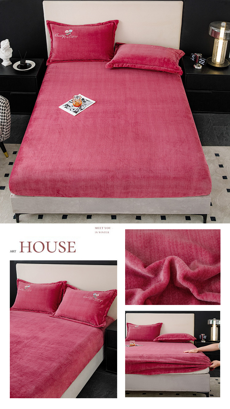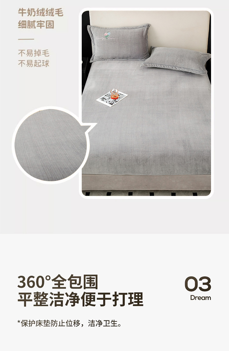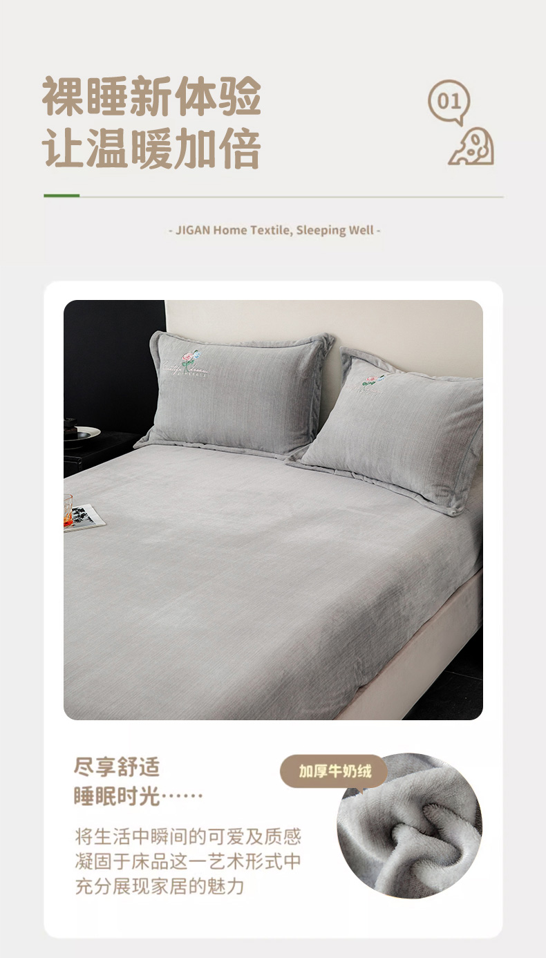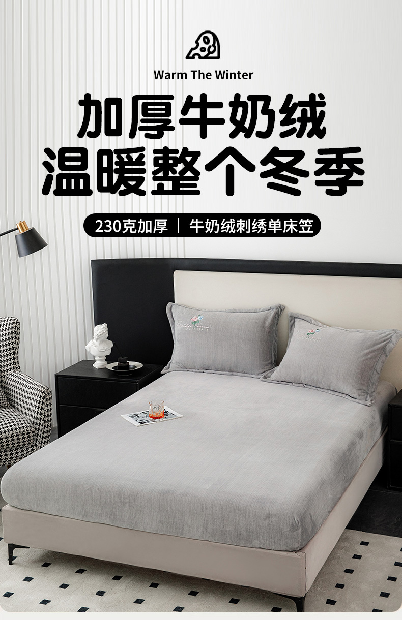 (总)新款230克高克重肌理纹绣花牛奶绒单床笠