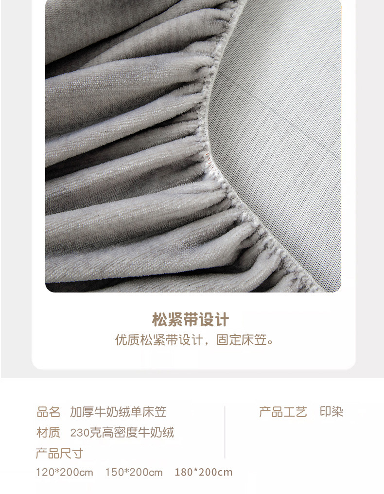 商品名称:(总)新款230克高克重肌理纹绣花牛奶绒单床笠