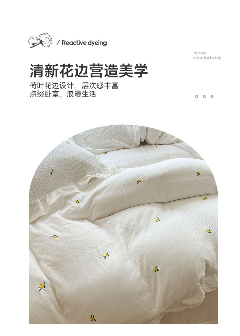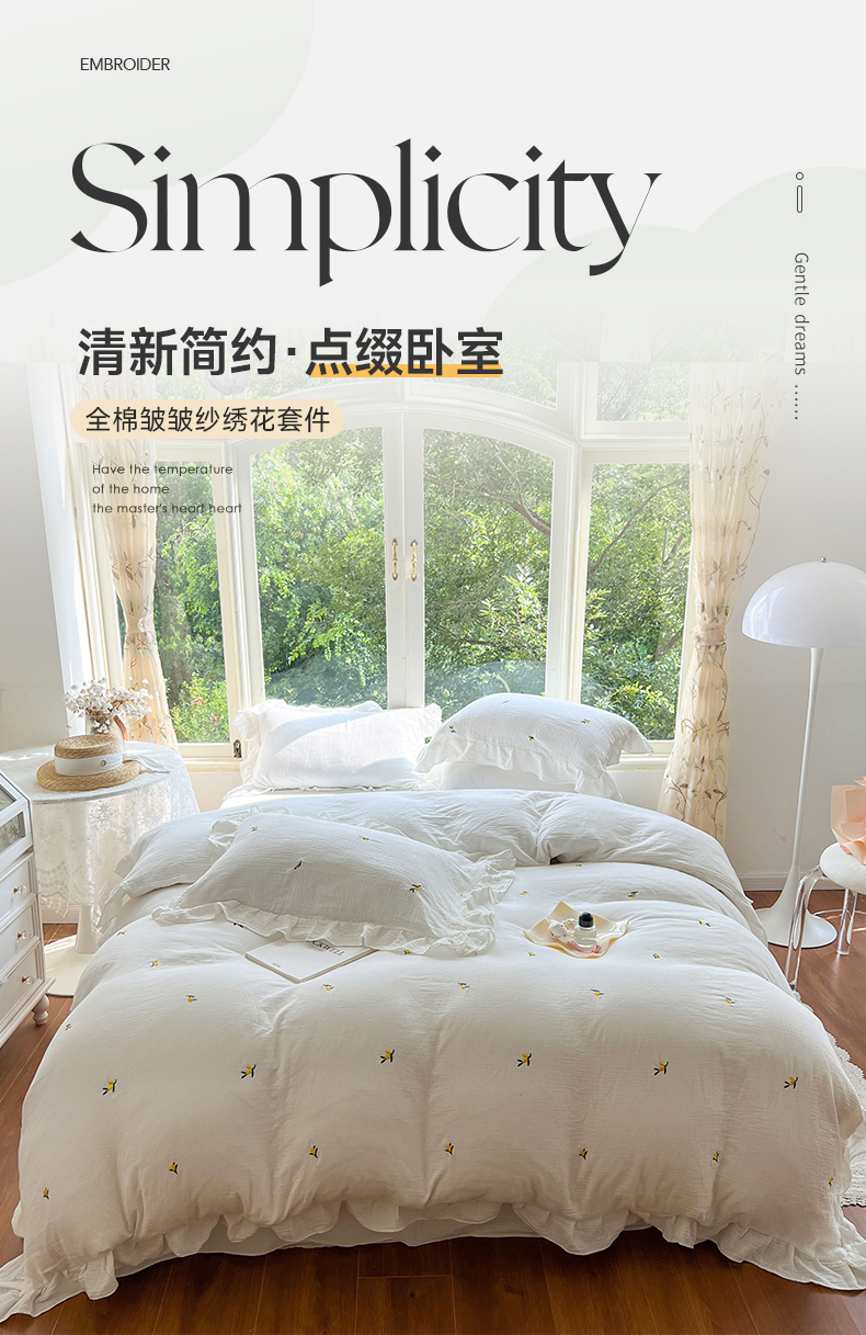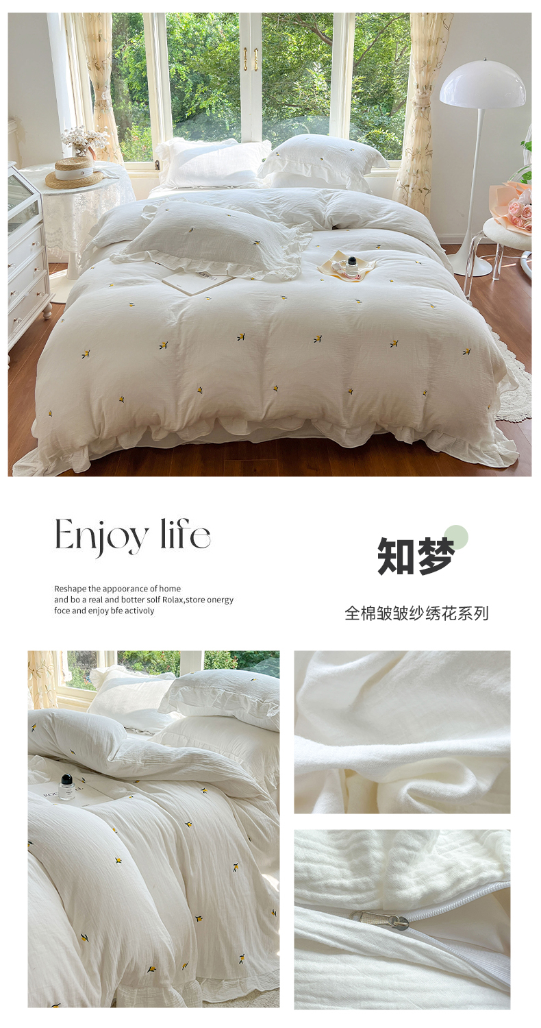 木楌家居 2024秋冬全棉皱皱纱荷叶边刺绣工艺款四件套 知梦
