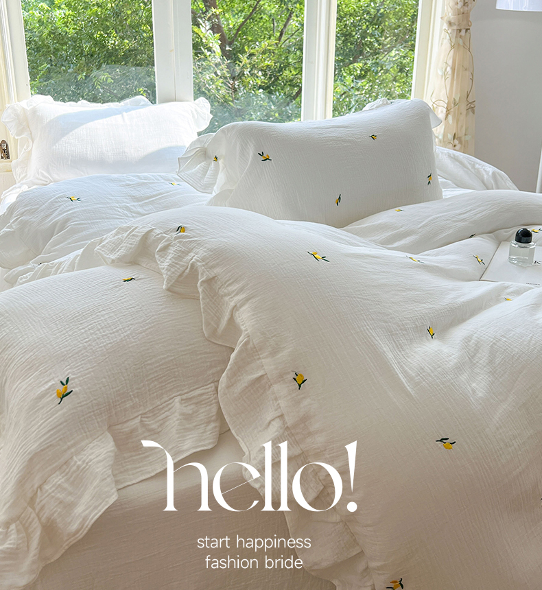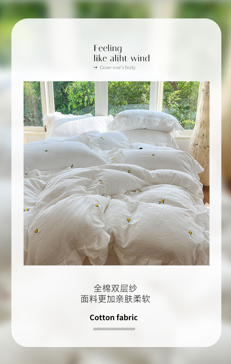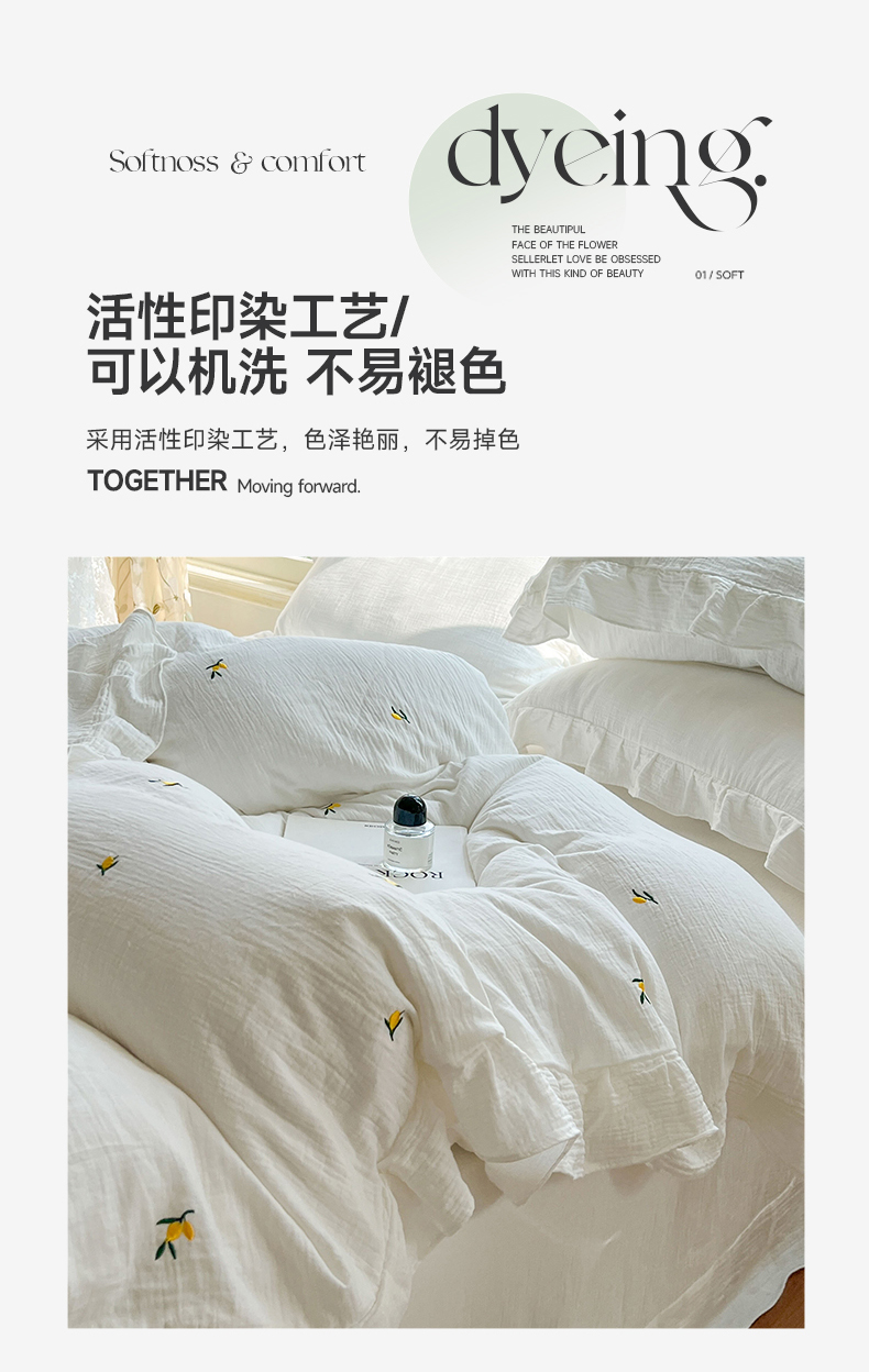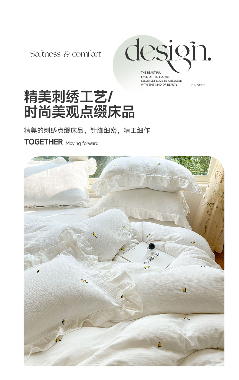 木楌家居 2024秋冬全棉皱皱纱荷叶边刺绣工艺款四件套 知梦