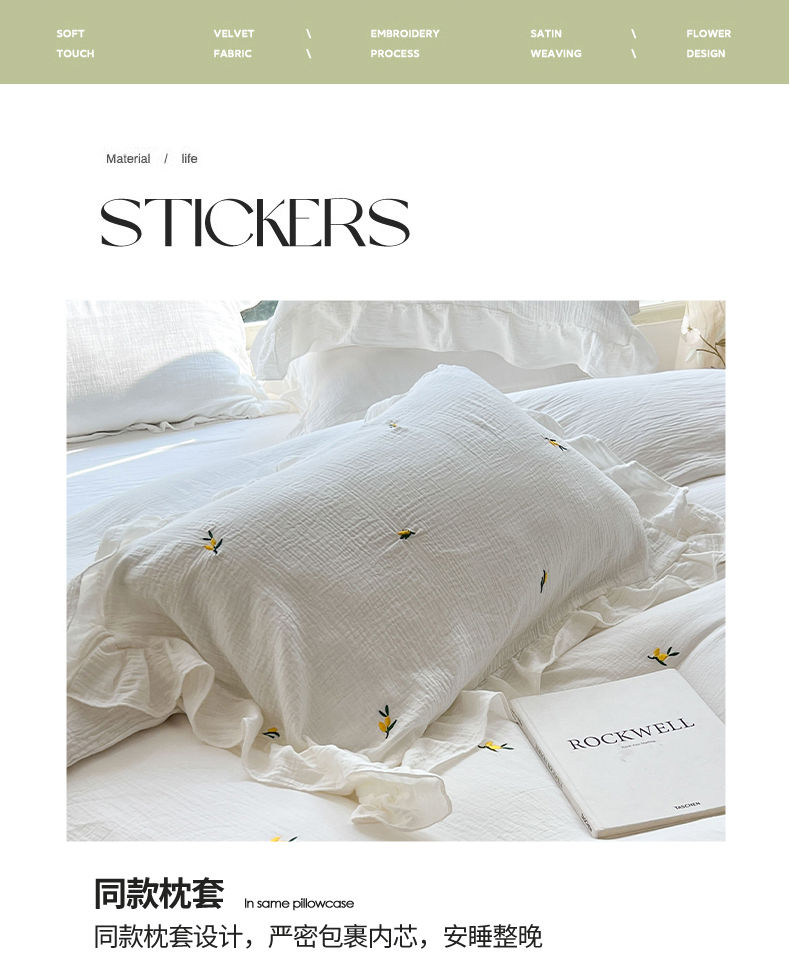 (总)木楌家居2025新款全棉彩点皱皱纱绣花四件套,暗香初醒,星柠微糖,樱草日记,织梦星河