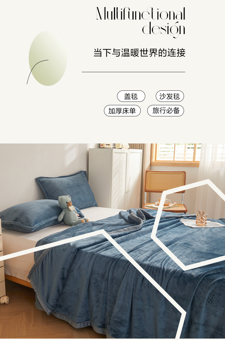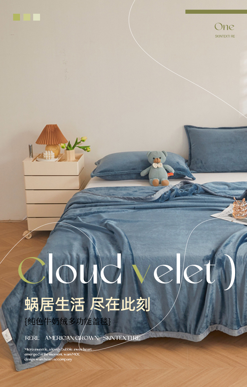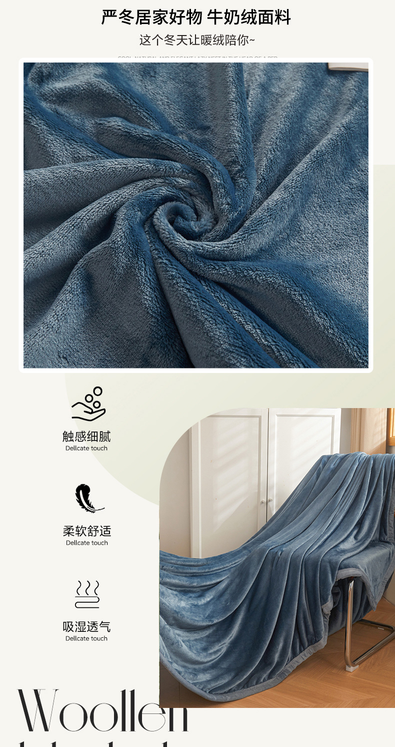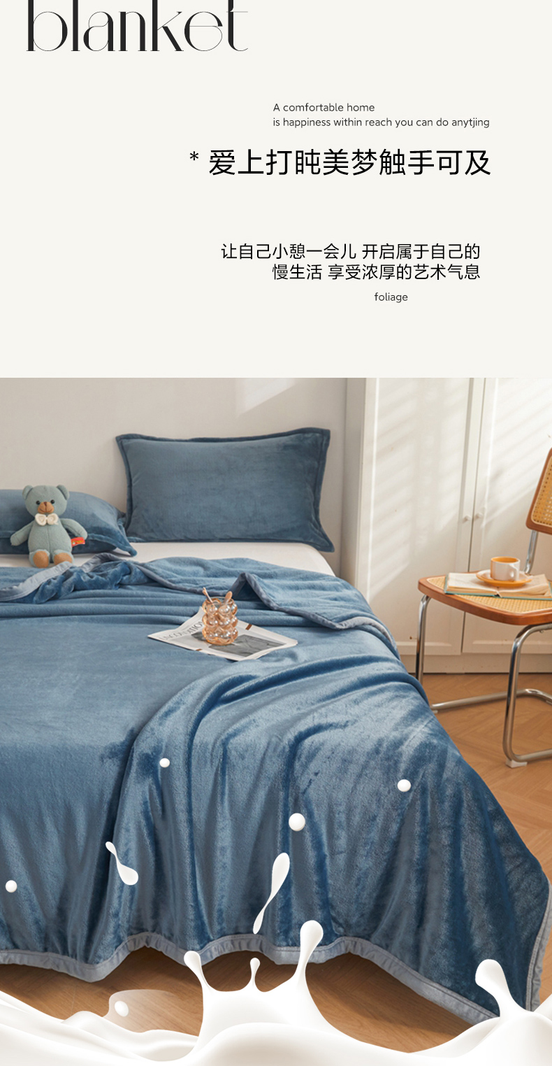 当前位置: 91家纺网 > 商品网购 > 毛毯休闲毯绒毯 > 毛毯 > 雅萱家纺 2023新款加厚牛奶绒多功能纯色毛毯 蓝灰