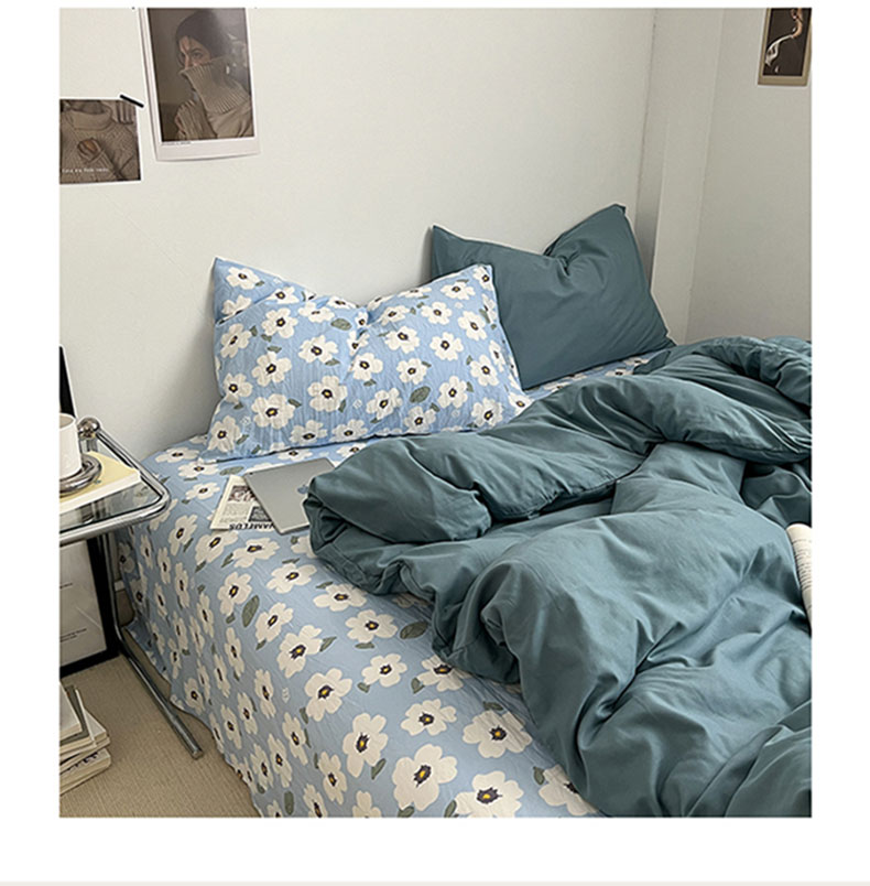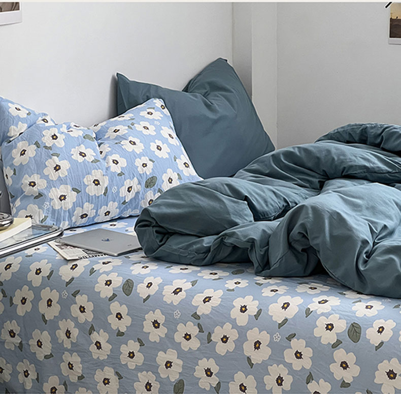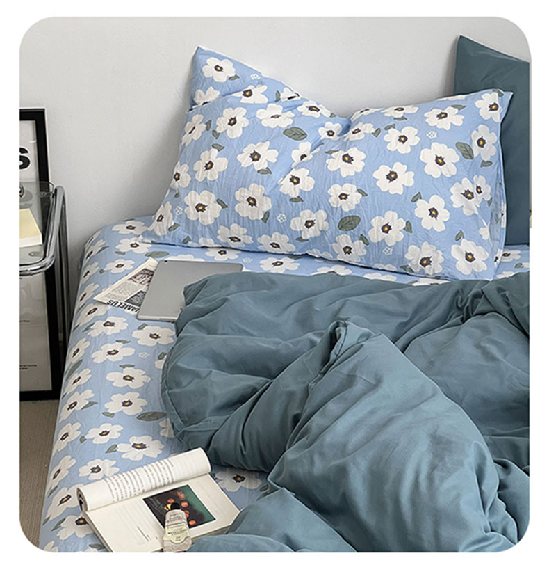 梦嘉居 2023新款水洗棉双层纱亲肤舒适单床笠 雾霾兰+花溪