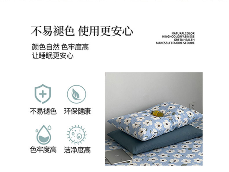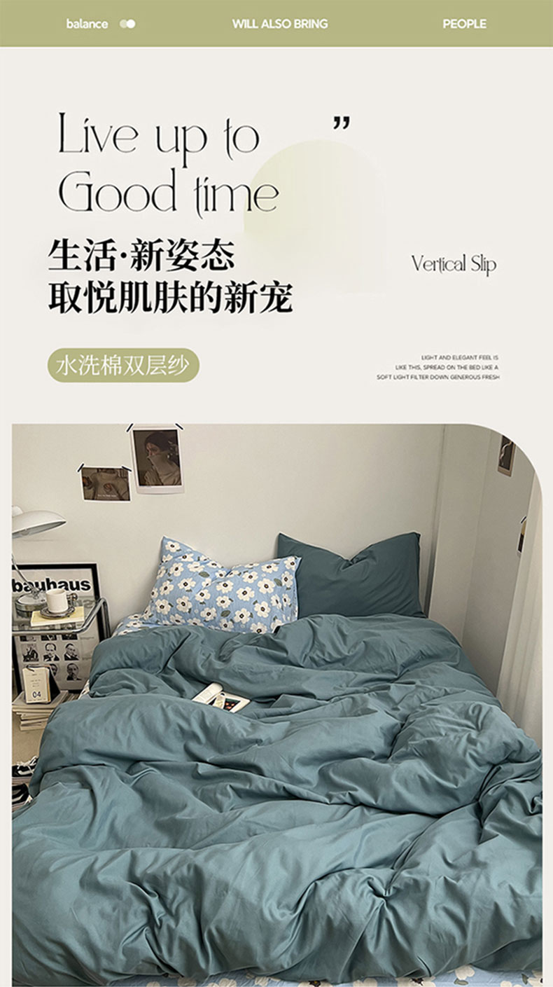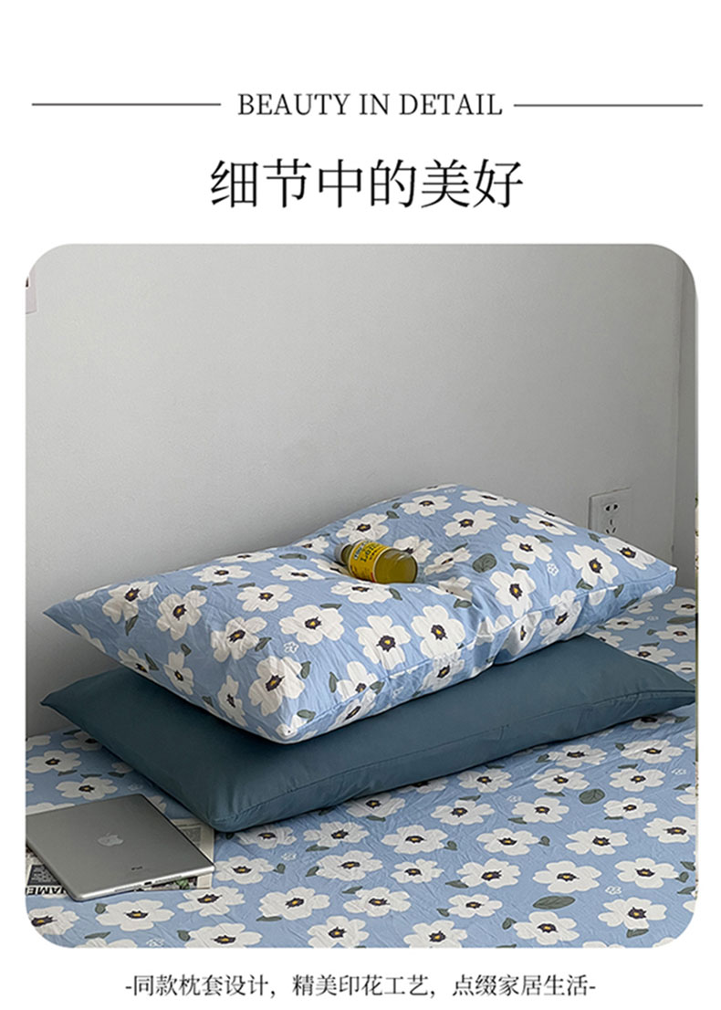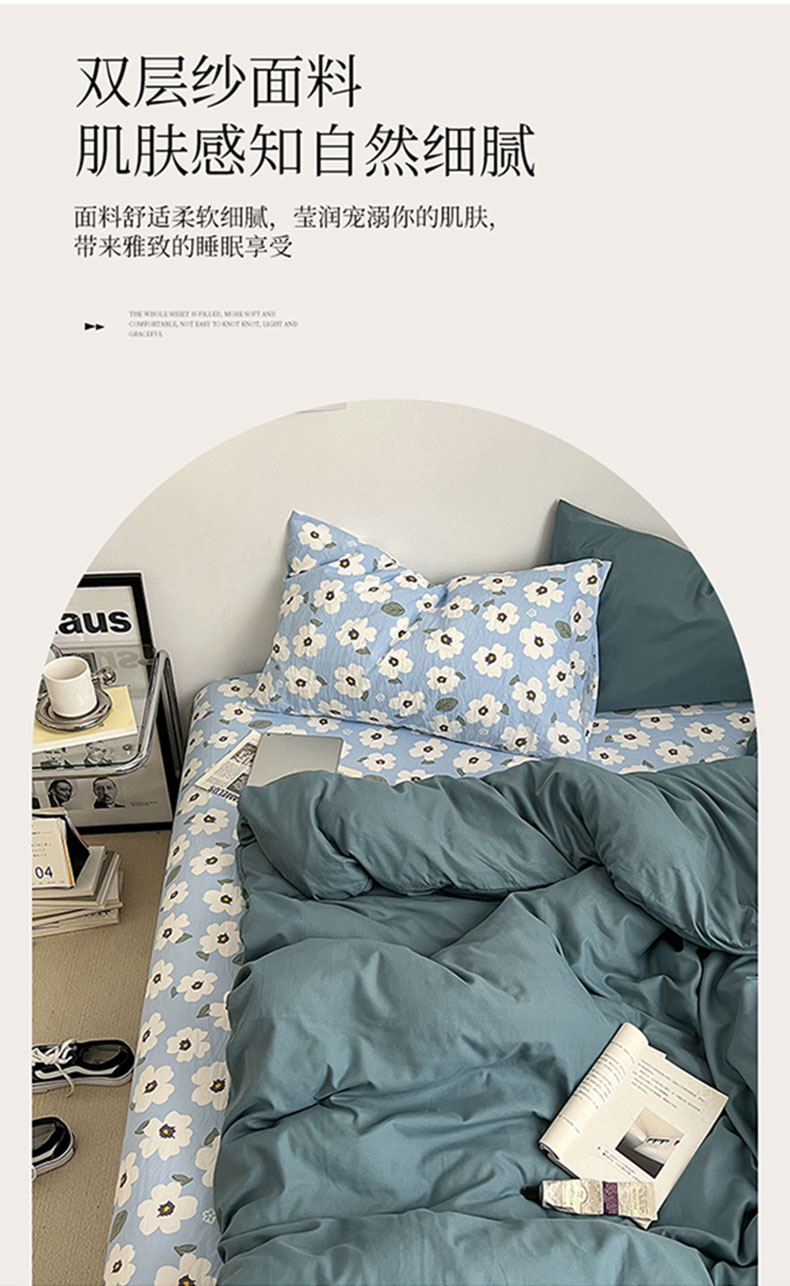 商品名称:梦嘉居 2023新款水洗棉双层纱亲肤舒适单床笠 雾霾兰+花溪