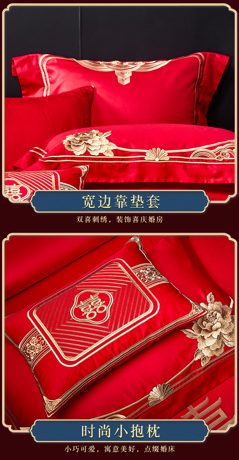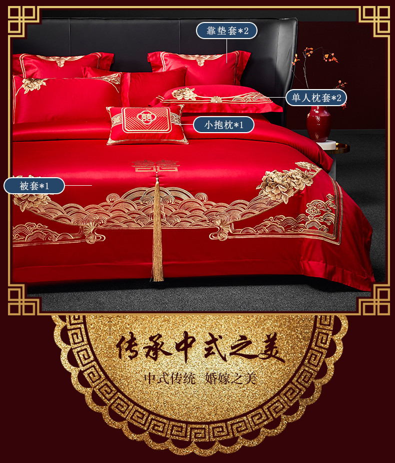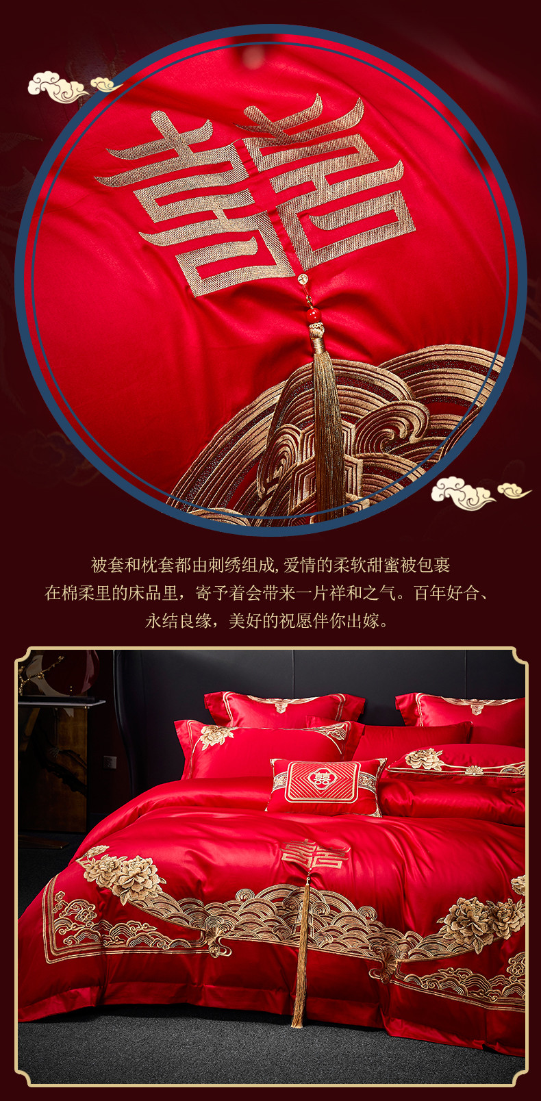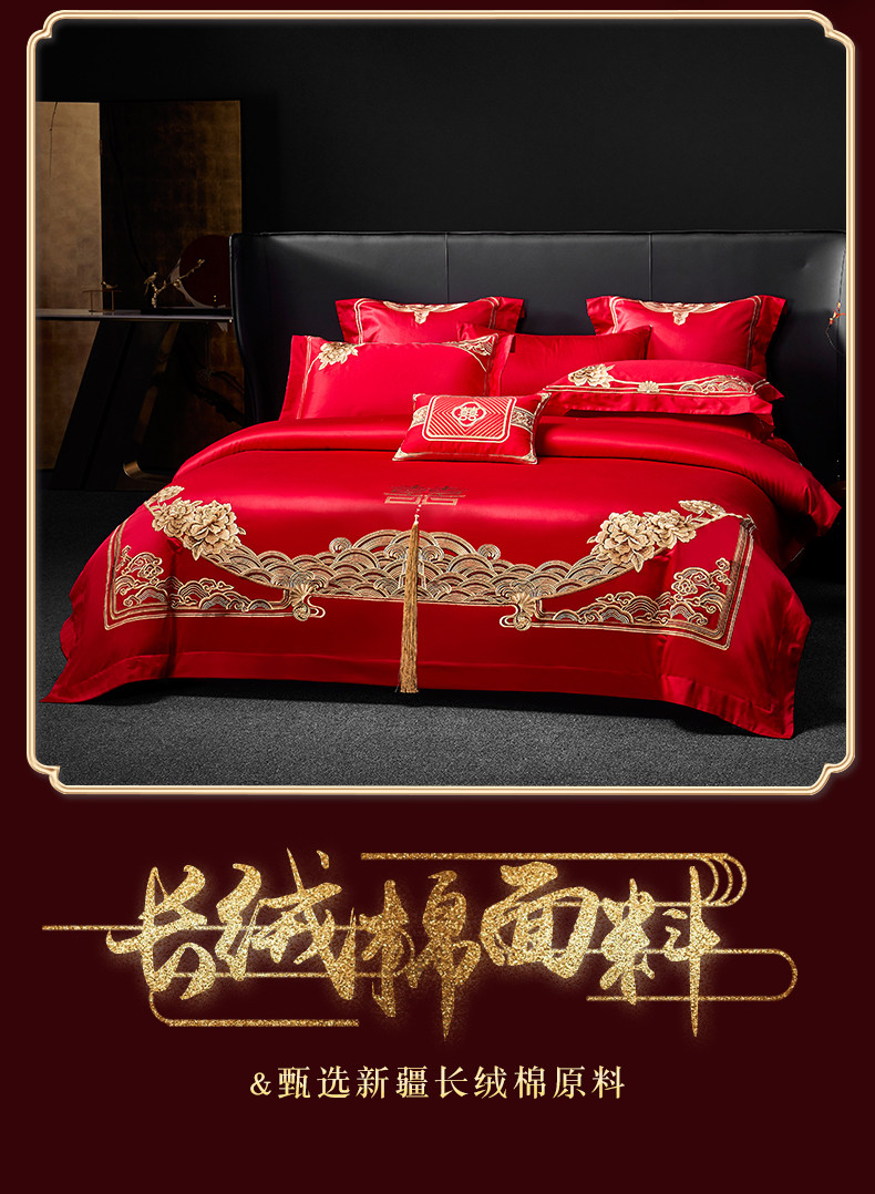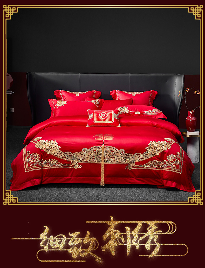 当前位置: 91家纺网 > 商品网购 > 床品套件 > 多件套 > 多件套 > 高大尚 2023新款40s全工艺喷气纯棉婚庆多件套 吉祥富贵-金