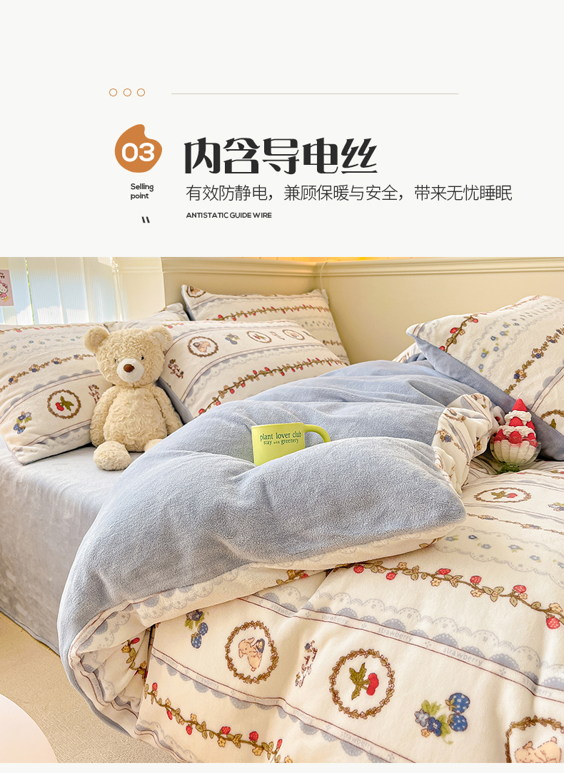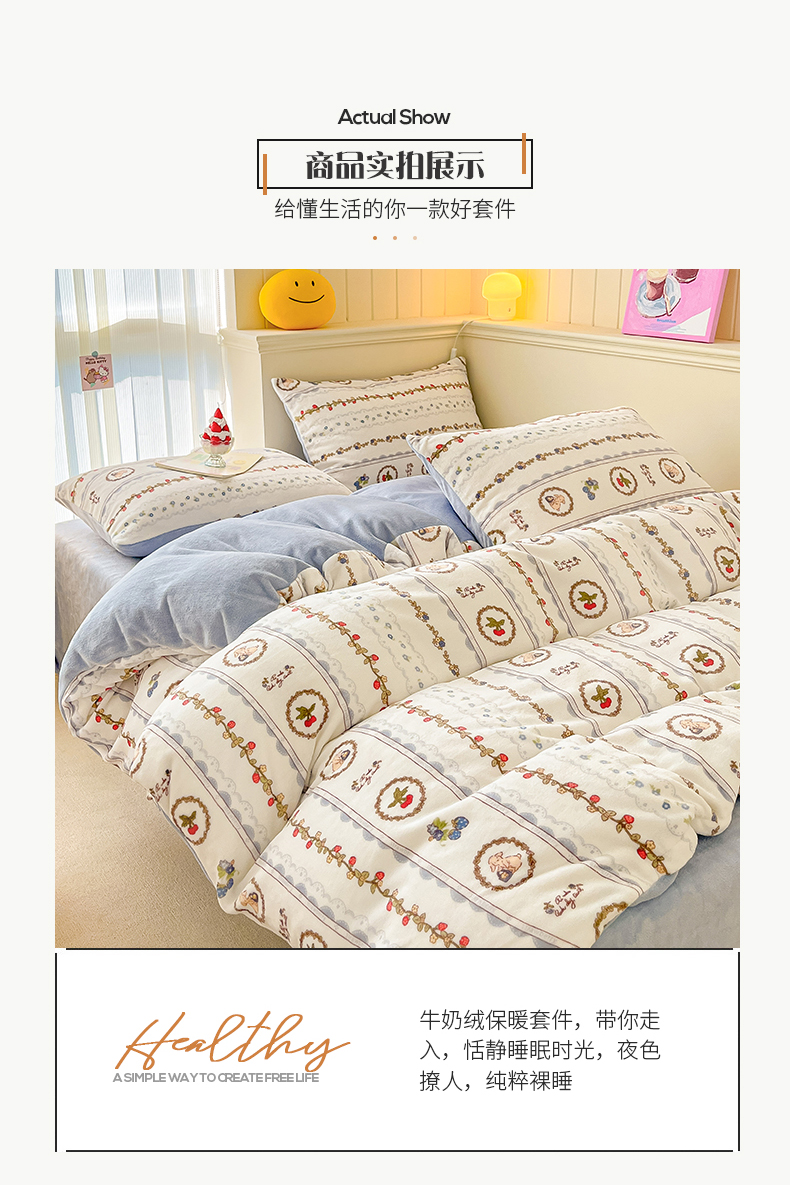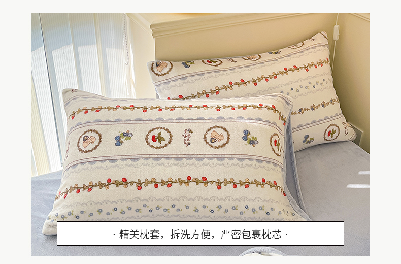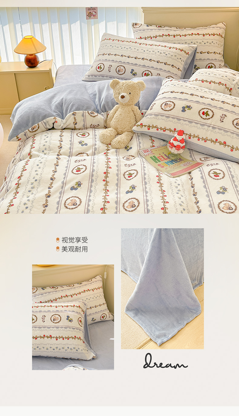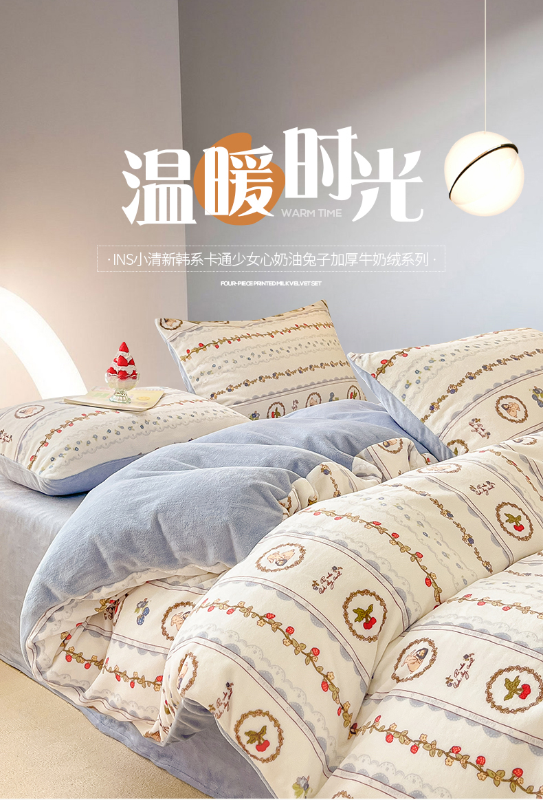 桃子 2023新款ins小清新韩系卡通少女心奶油兔子加厚牛奶绒系列四件套-第一批 绒-蓝可颂