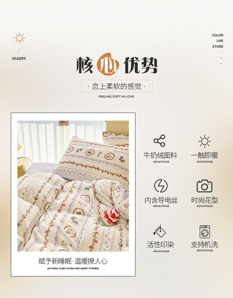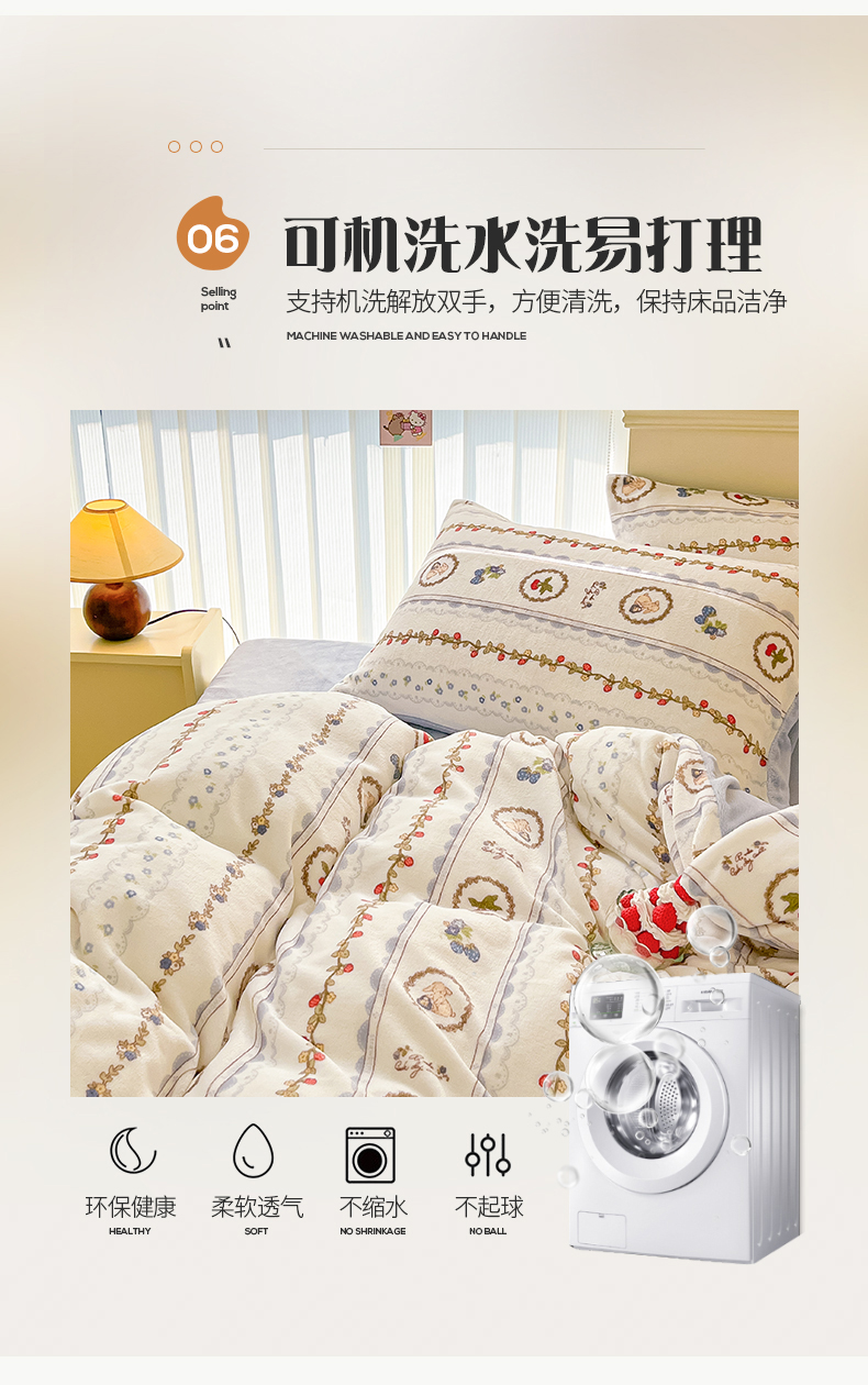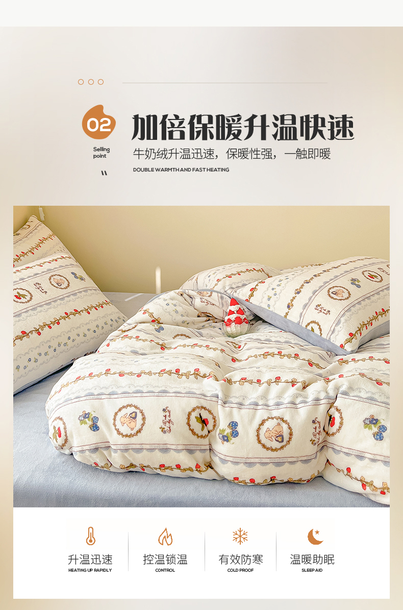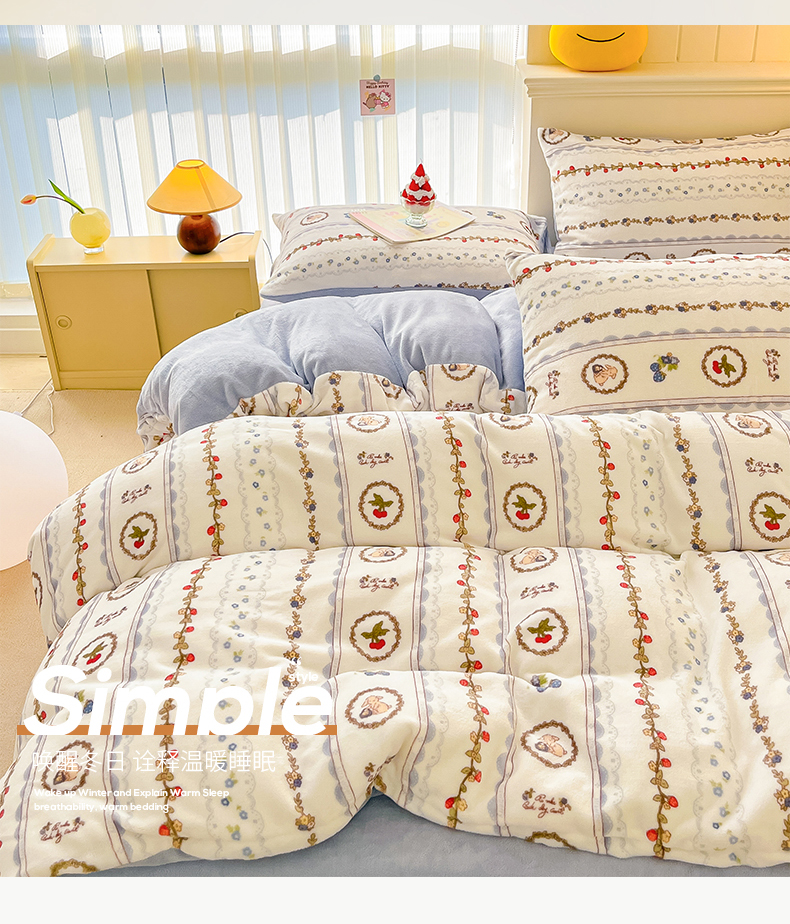 桃子 2023新款ins小清新韩系卡通少女心奶油兔子加厚牛奶绒系列四件套-第一批 绒-蓝可颂