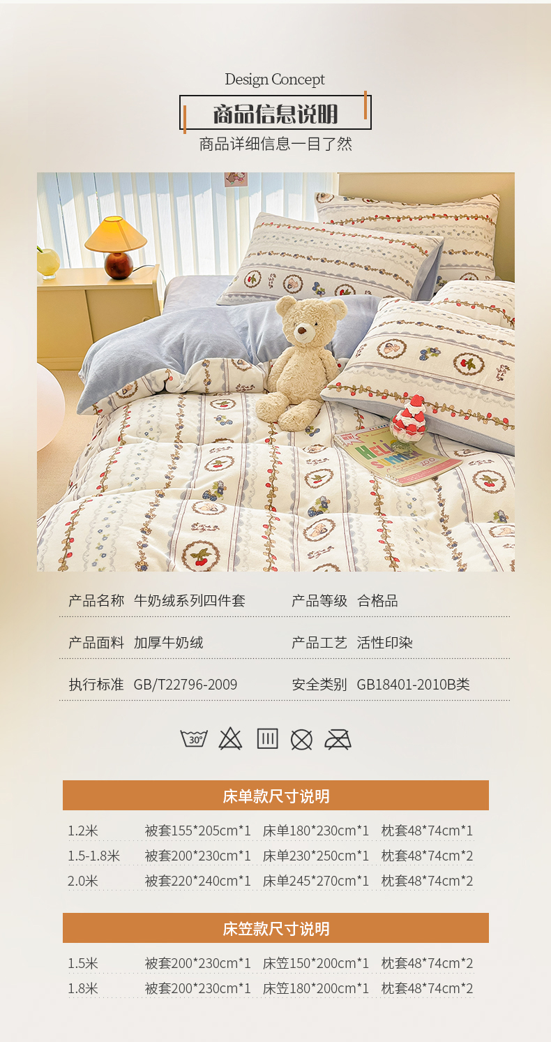 商品名称:桃子 2023新款ins小清新韩系卡通少女心奶油兔子加厚牛奶绒系列四件套-第一批 绒-蓝可颂