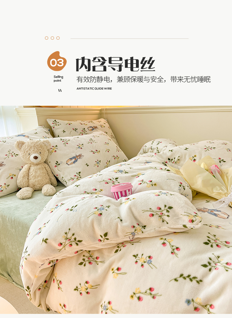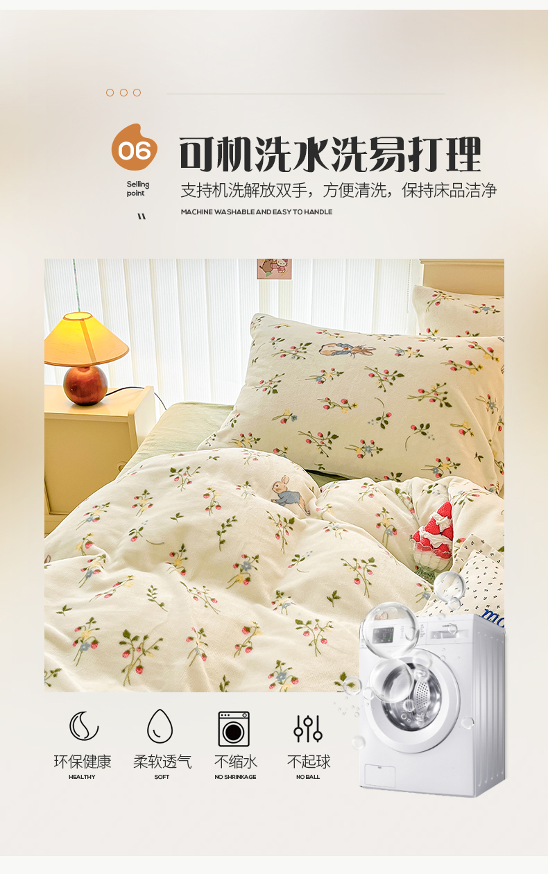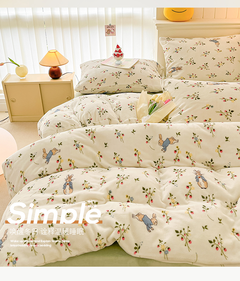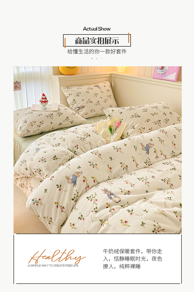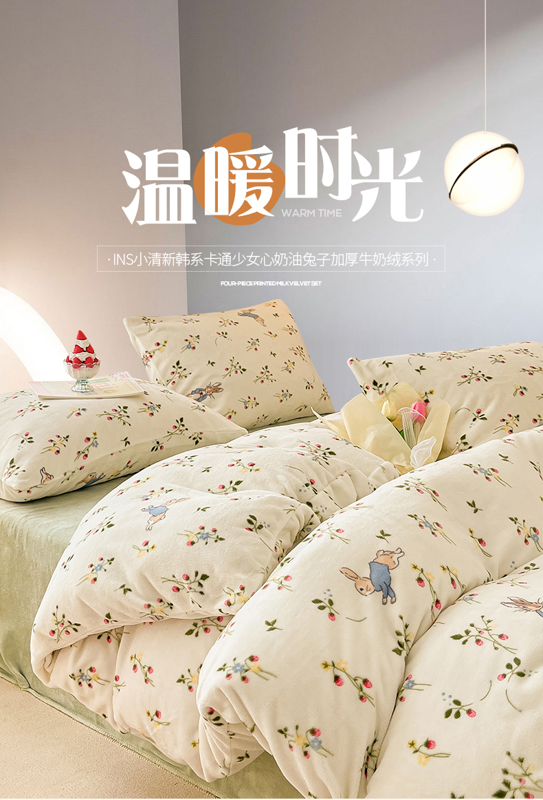 桃子 2023新款ins小清新韩系卡通少女心奶油兔子加厚牛奶绒系列四件套-第一批 绒-兔先生