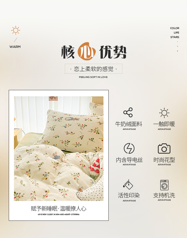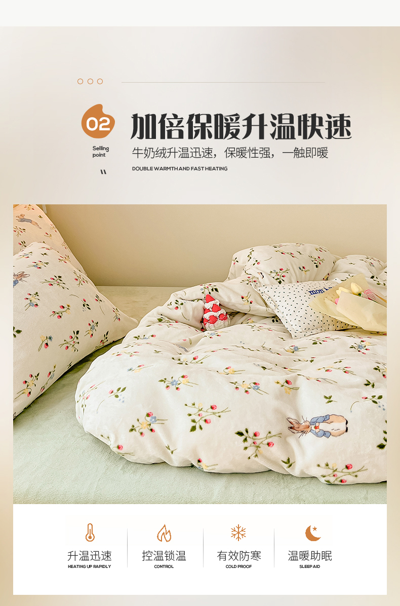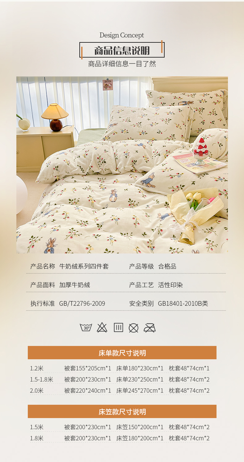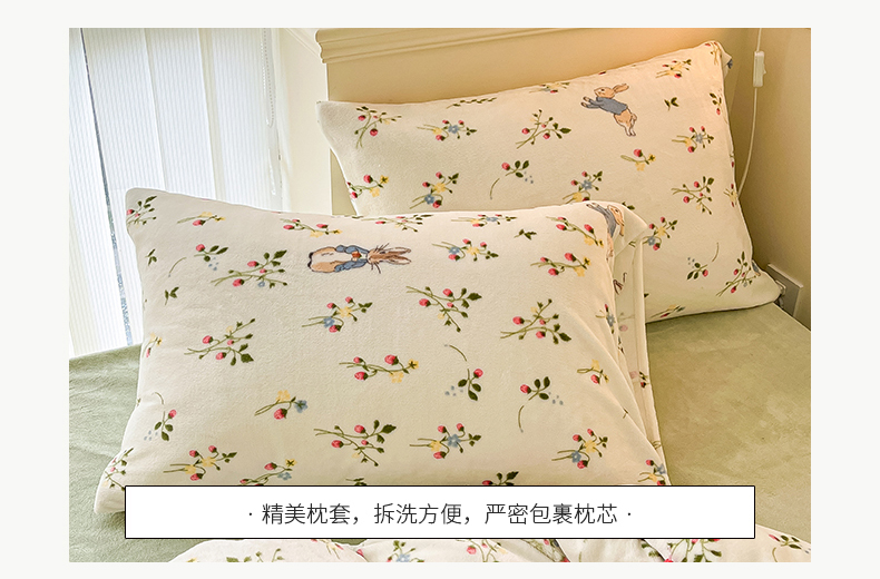 商品名称:桃子 2023新款ins小清新韩系卡通少女心奶油兔子加厚牛奶绒系列四件套-第一批 绒-兔先生