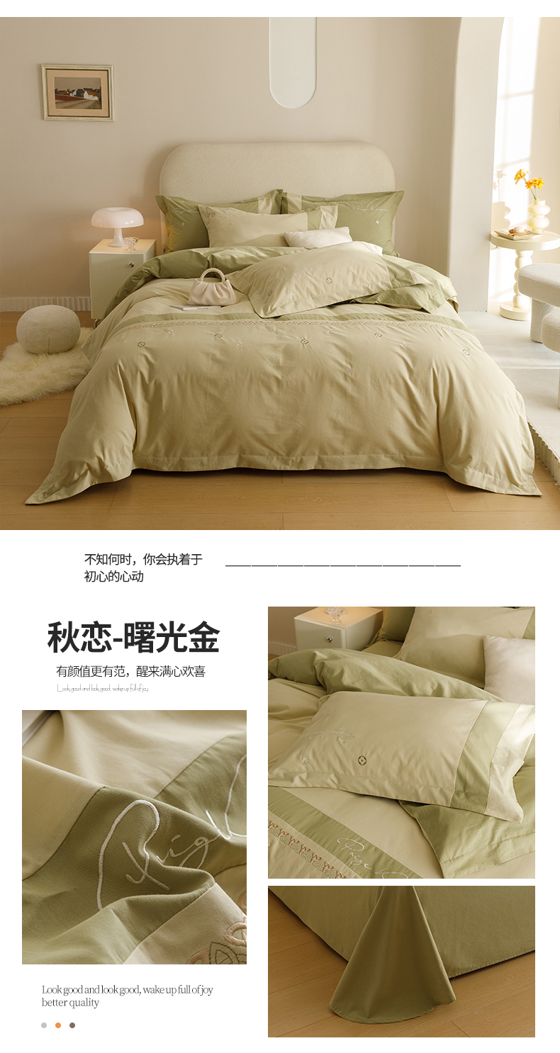 商品名称:艾莱家纺 2023新款A类秋恋磨毛刺绣四件套 秋恋-曙光金