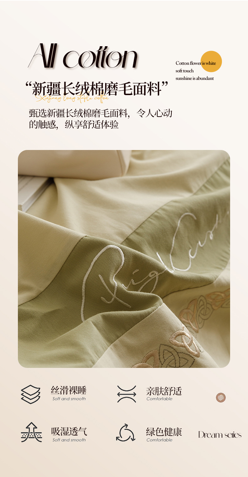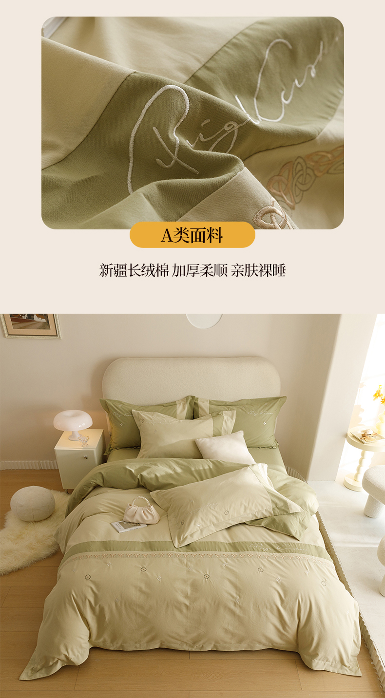(总)艾莱家纺 2025新款A类新疆长绒棉纯棉加厚柔顺磨毛贴布绣四件套-奶芙,奶芙-锦绣绿,奶芙-大麦灰,奶芙-可可蛋奶,奶芙-悠兰,奶芙-紫粉