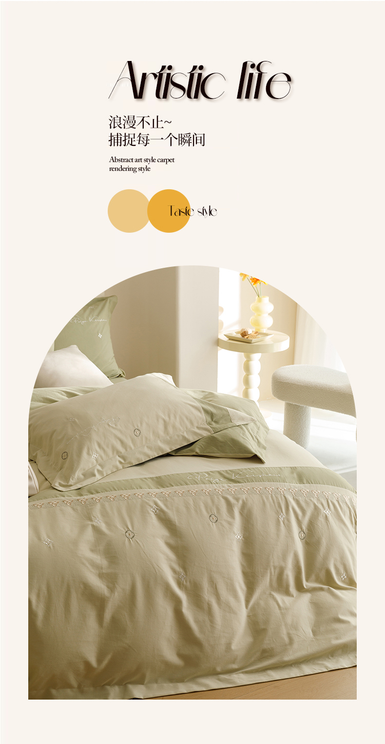 (总)艾莱家纺 2025新款A类精梳贴布纯棉刺绣花四件套-星澜,星澜-春绿,星澜-美拉德,星澜-蜜糖粉,星澜-松露咖,星澜-小米,星澜-烟云灰