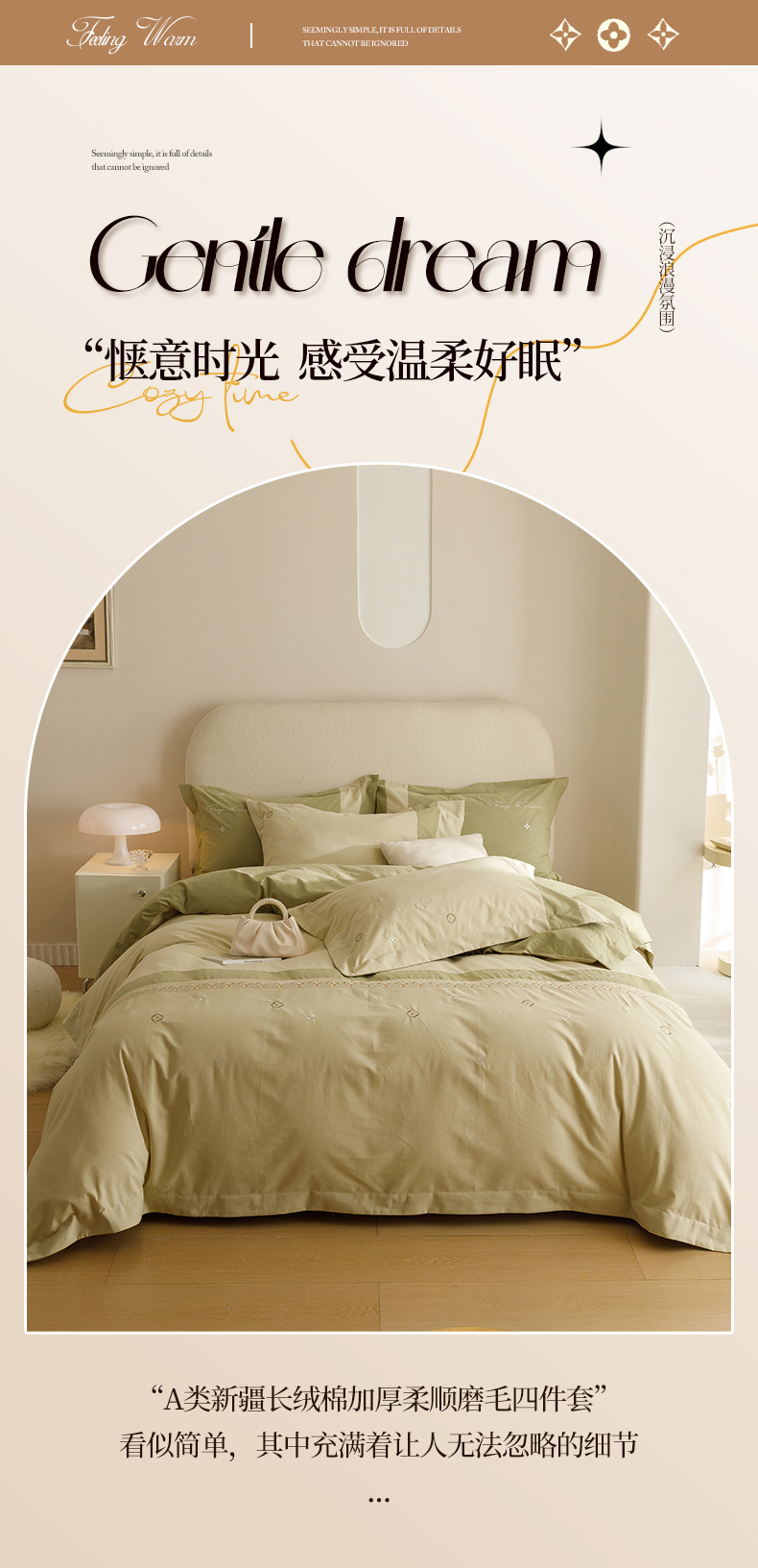 (总)艾莱家纺 2025新款A类新疆长绒棉加厚柔顺磨毛四件套--爱永恒系列,爱永恒-可可奶,爱永恒-大地色,爱永恒-北欧灰,爱永恒-抹茶绿,爱永恒-浅豆沙,爱永恒-嫣红