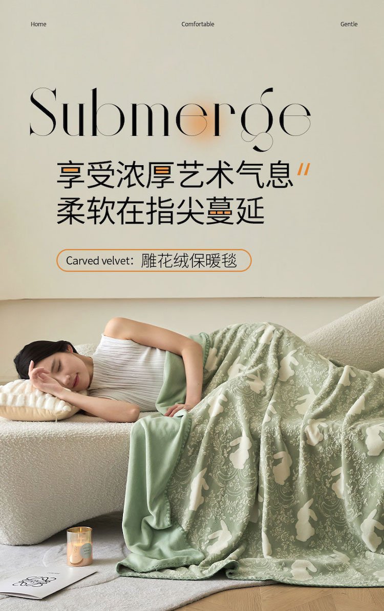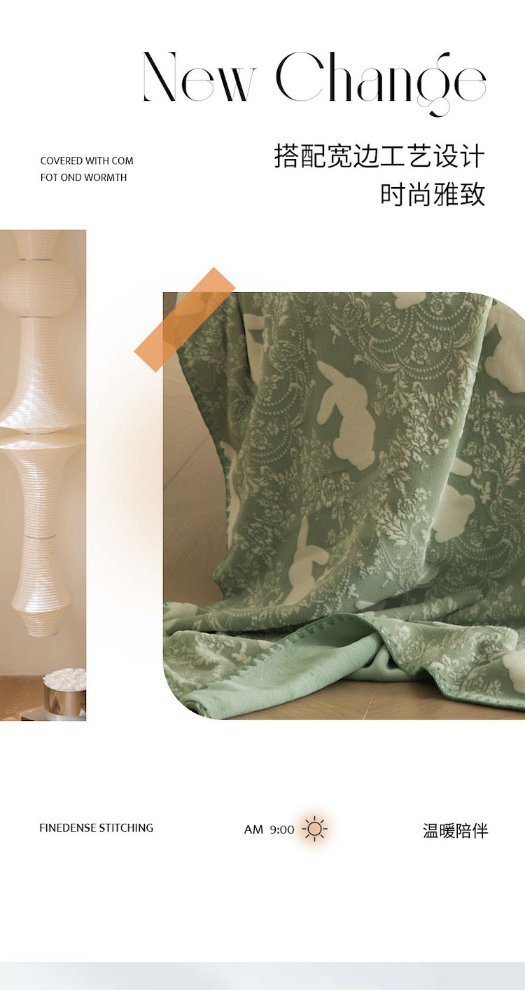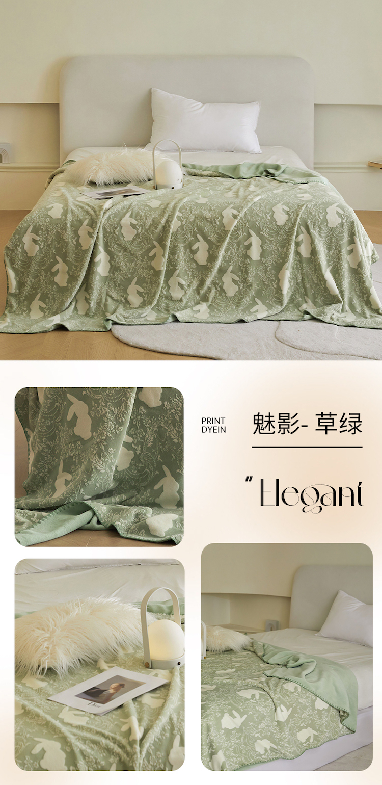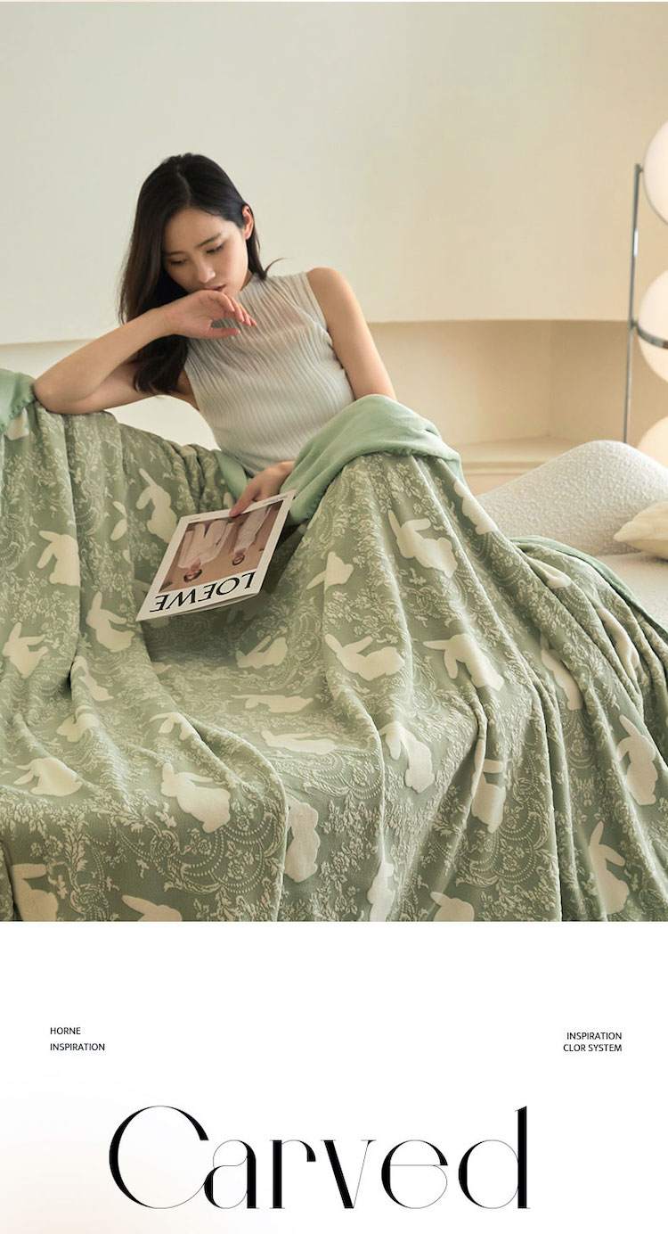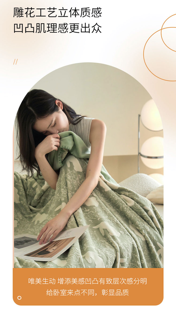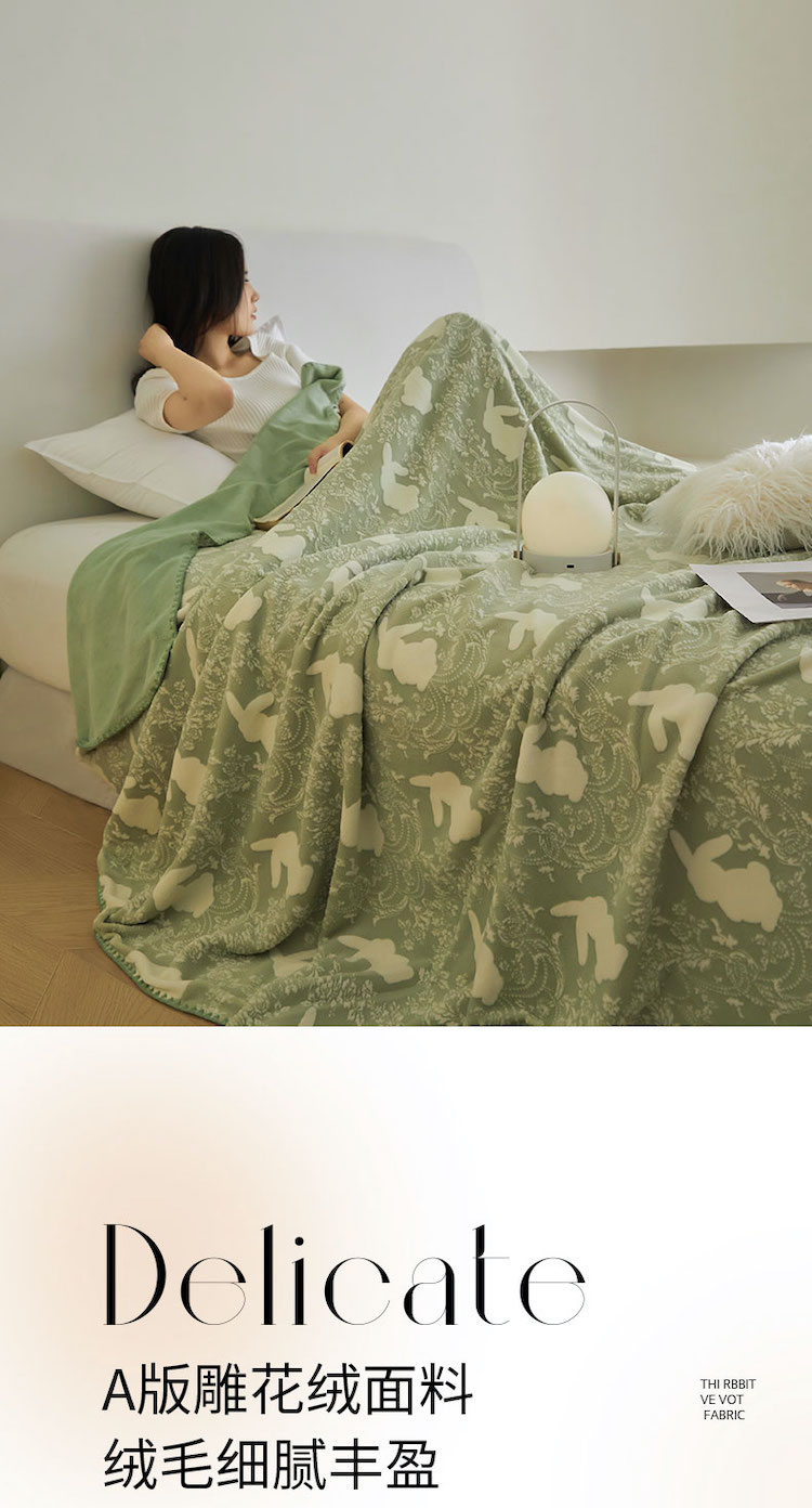商品名称:铭动 2023新款雕花绒保暖毯-魅影 草绿