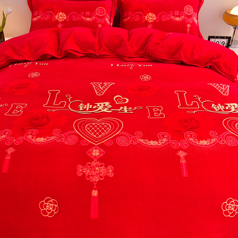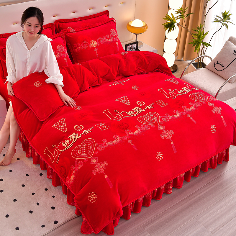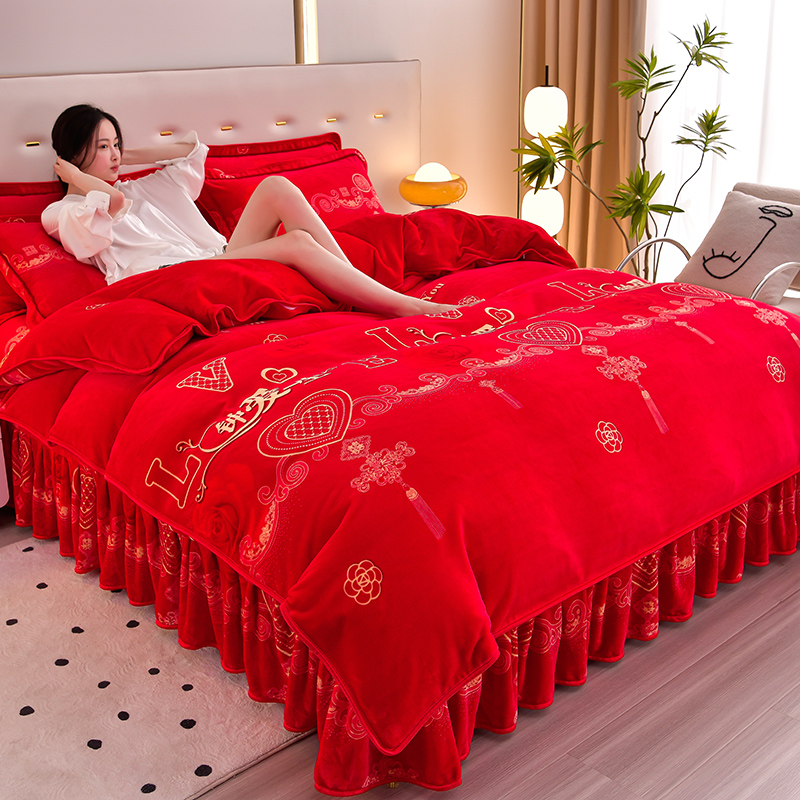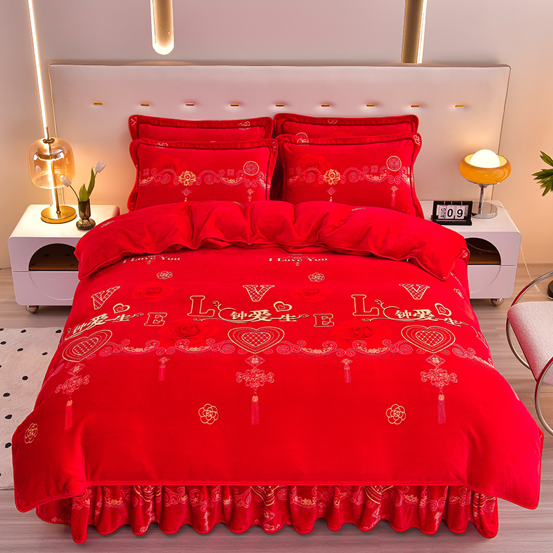当前位置: 91家纺网 > 商品网购 > 床品套件 > 四件套 > 牛奶绒四件套 > 绒宴 2025新款8.5斤牛奶绒金貂法莱绒床裙款保暖四件套 钟爱一生