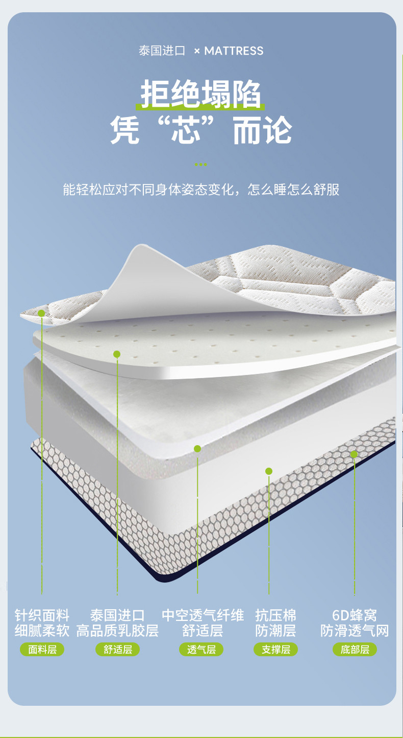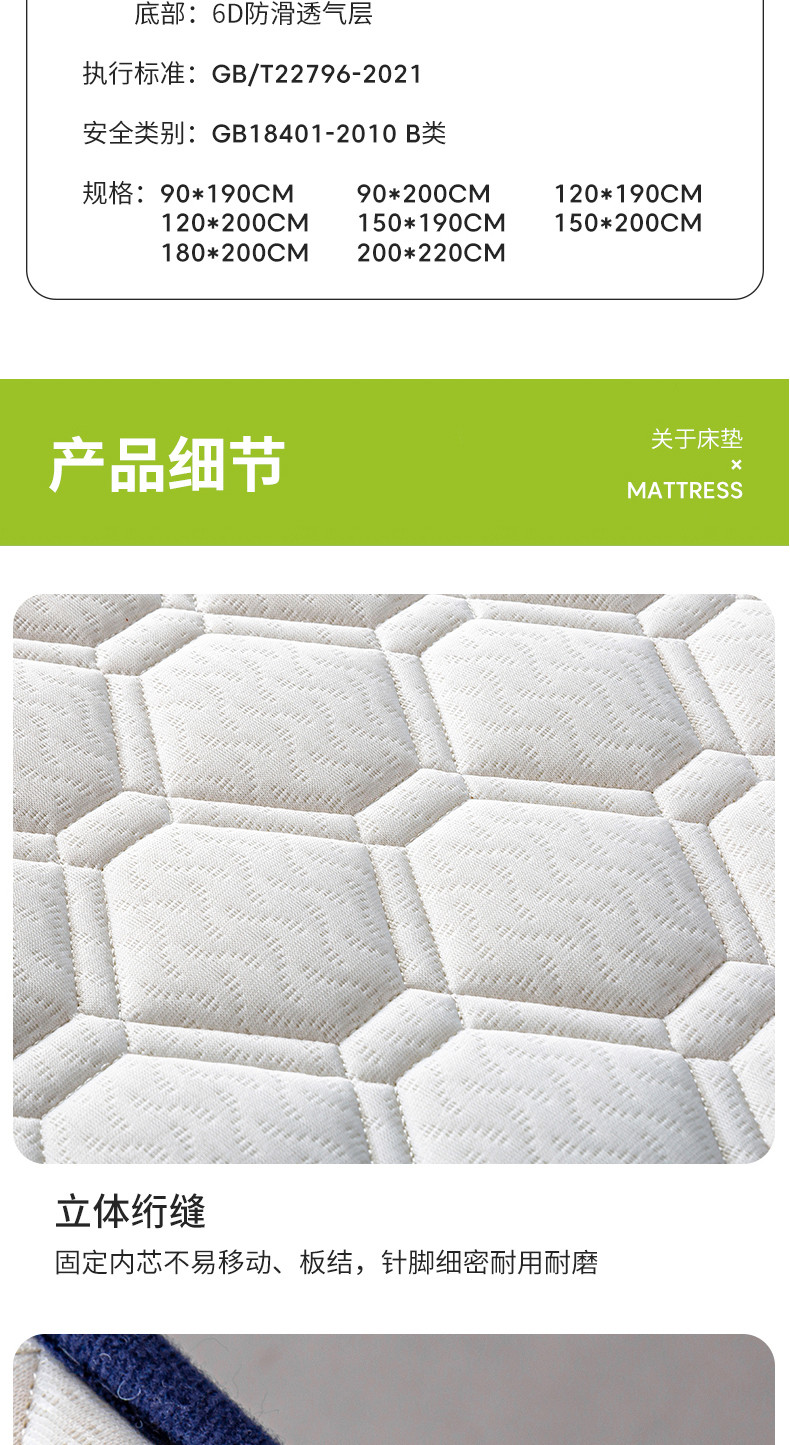 当前位置: 91家纺网 > 商品网购 > 床垫/床褥 > 普通床垫 > 缔莱 2023新款A类针织乳胶抗压记忆棉乳胶床垫-字母边款 菱形白(蓝)