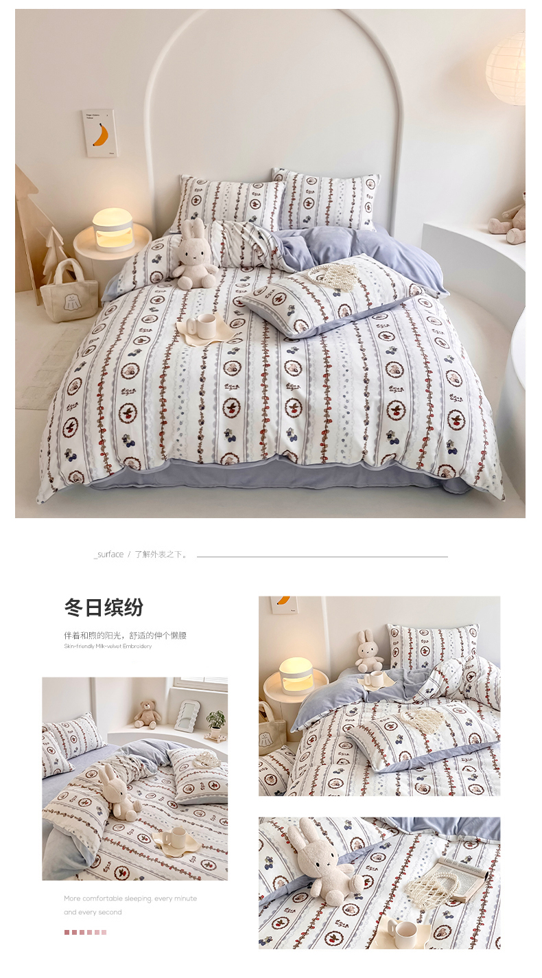 商品名称:潘朵拉 2023新款秋冬ins韩系牛奶绒印花四件套 冬日缤纷