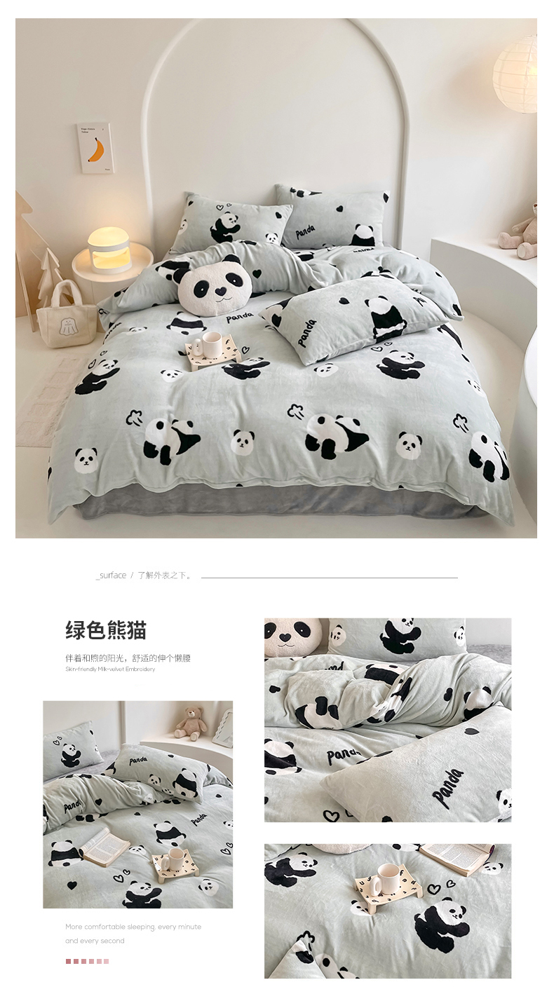 商品名称:潘朵拉 2023新款秋冬ins韩系牛奶绒印花四件套 绿色熊猫