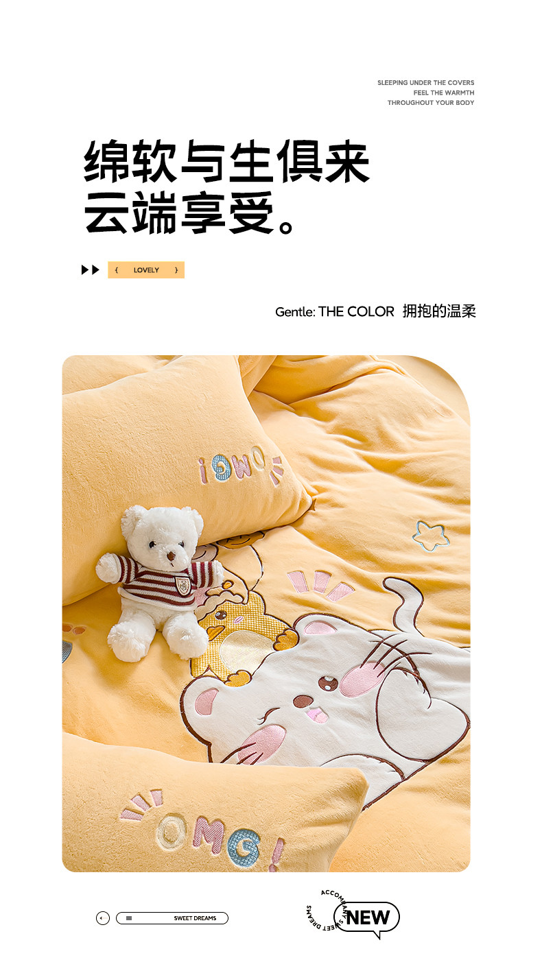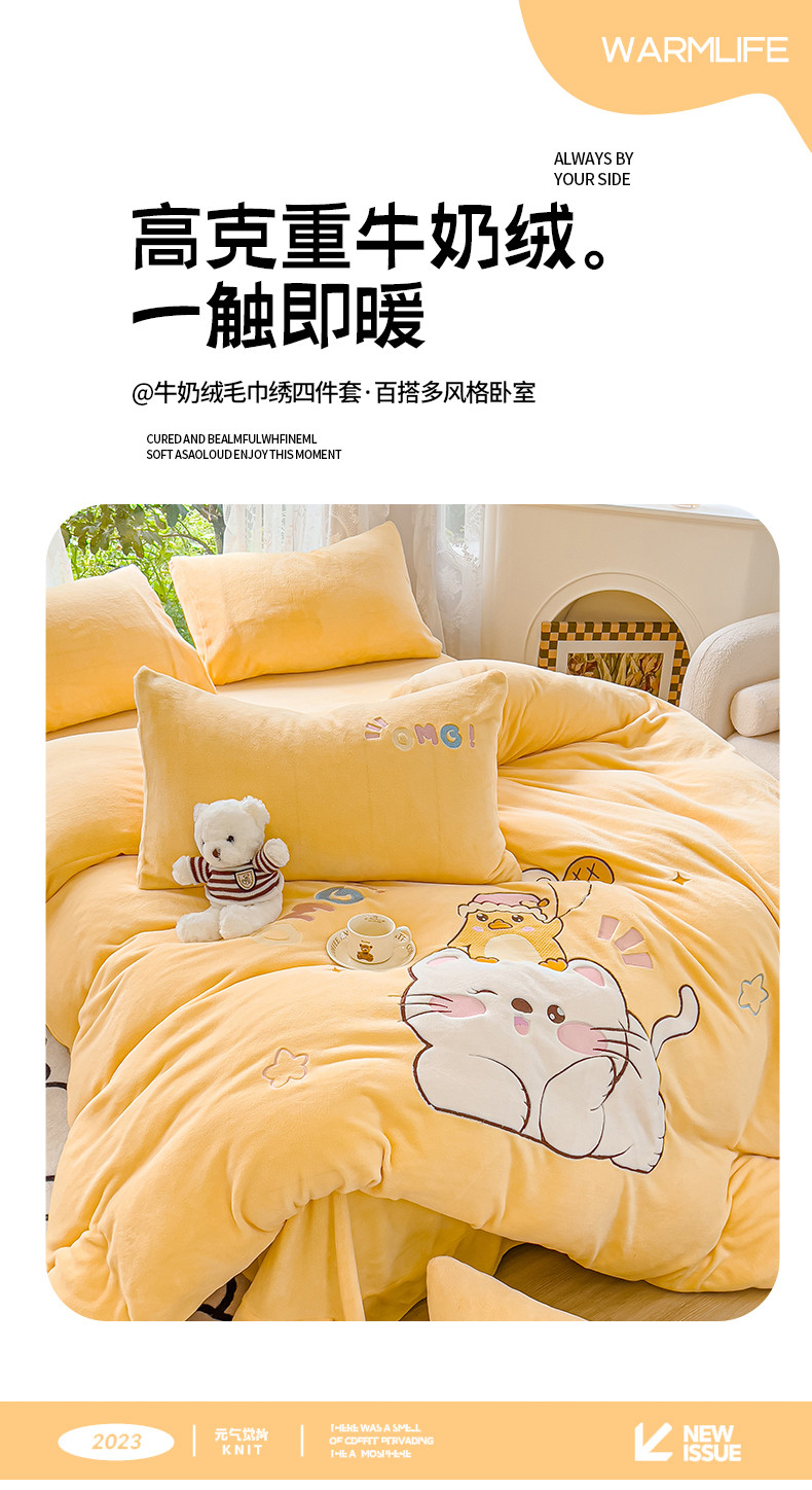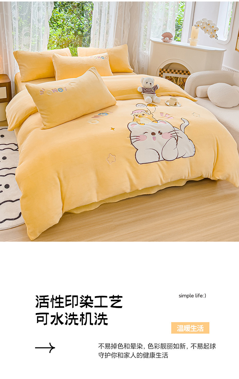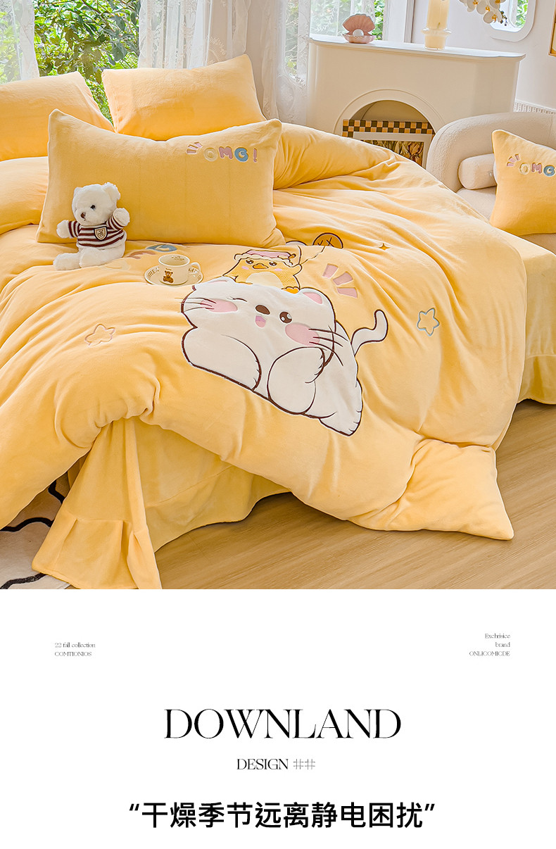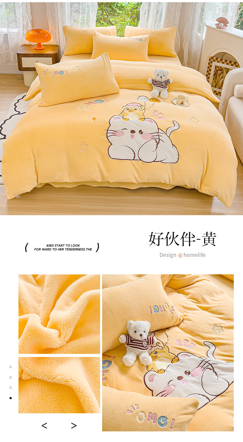 商品名称:米瑞娜 2024新款贴布绣牛奶绒四件套 好伙伴-黄
