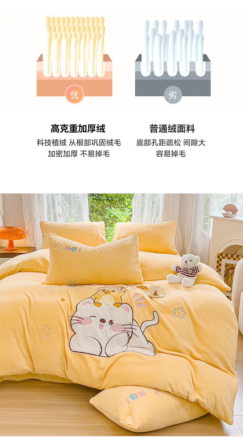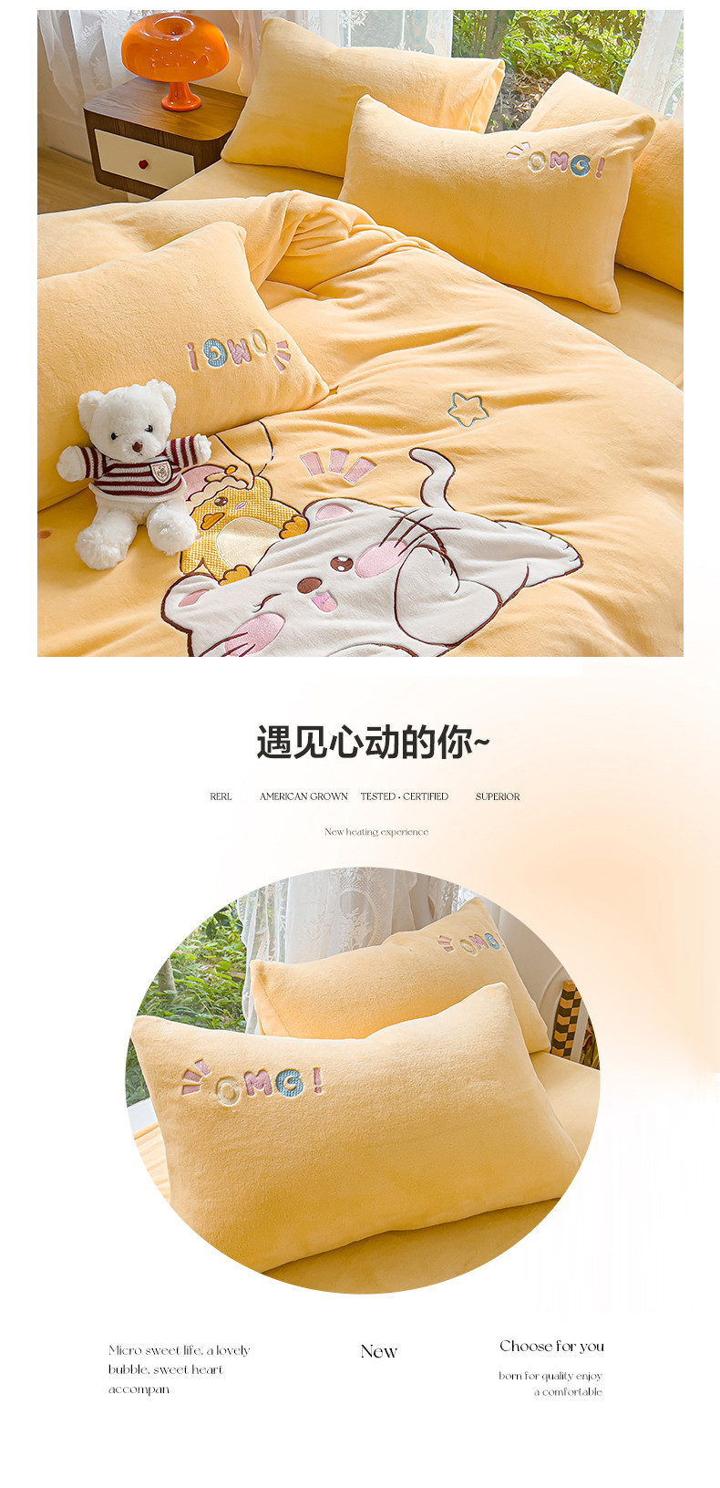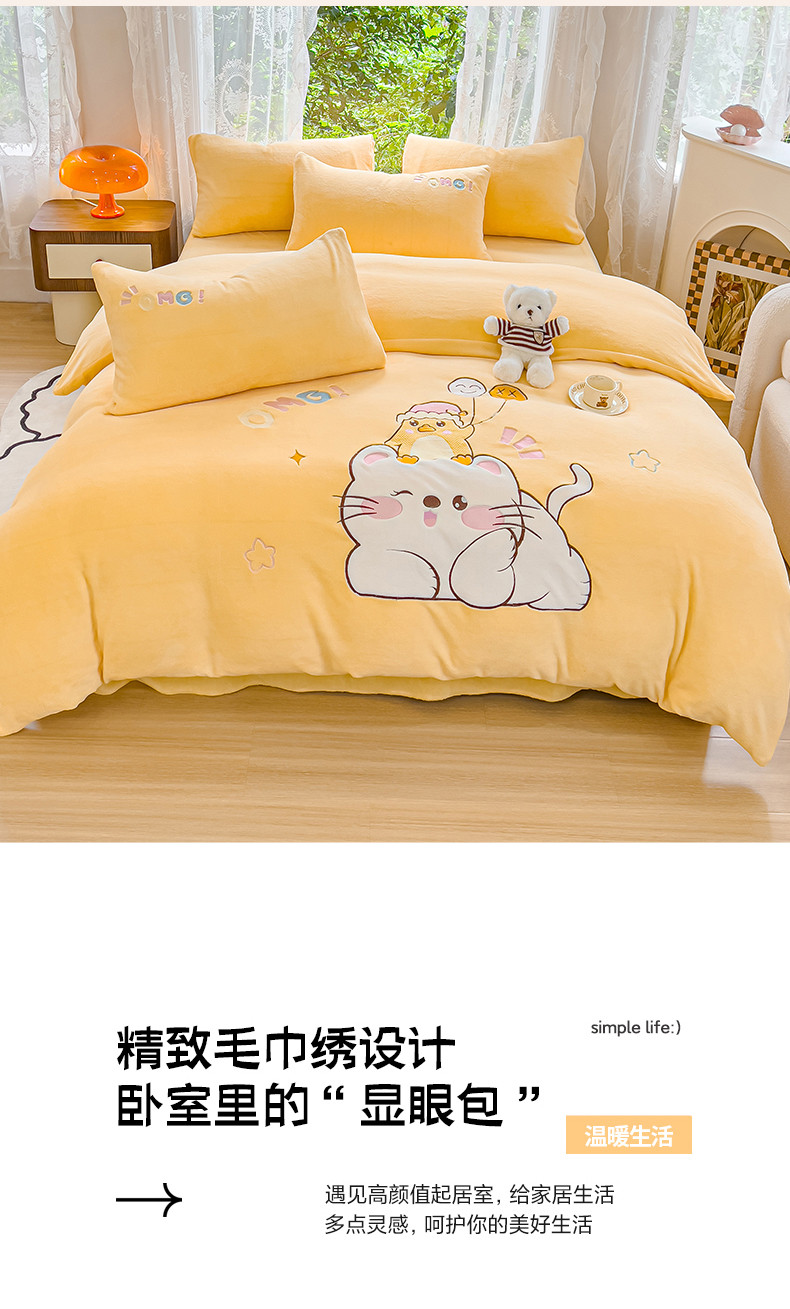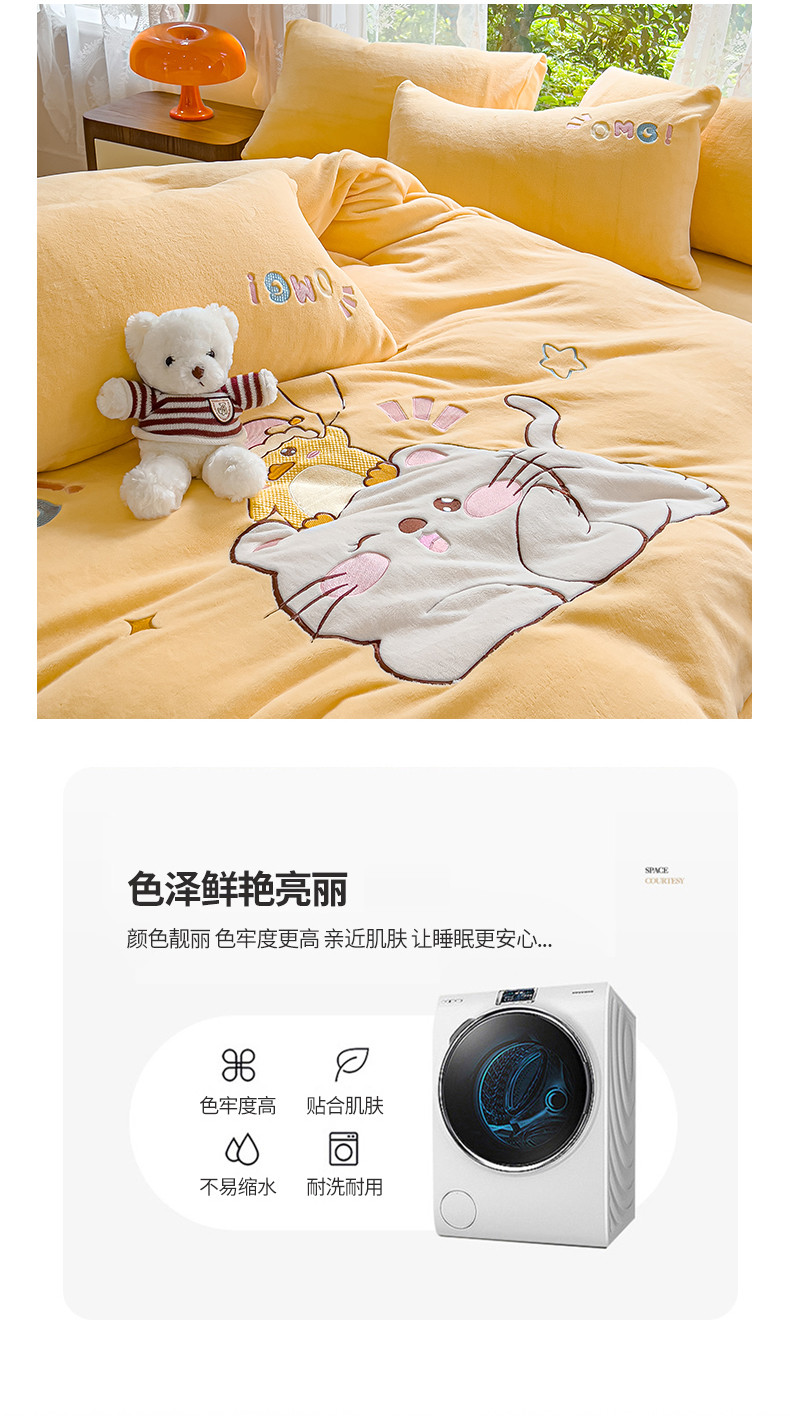 商品名称:米瑞娜 2024新款贴布绣牛奶绒四件套 好伙伴-黄