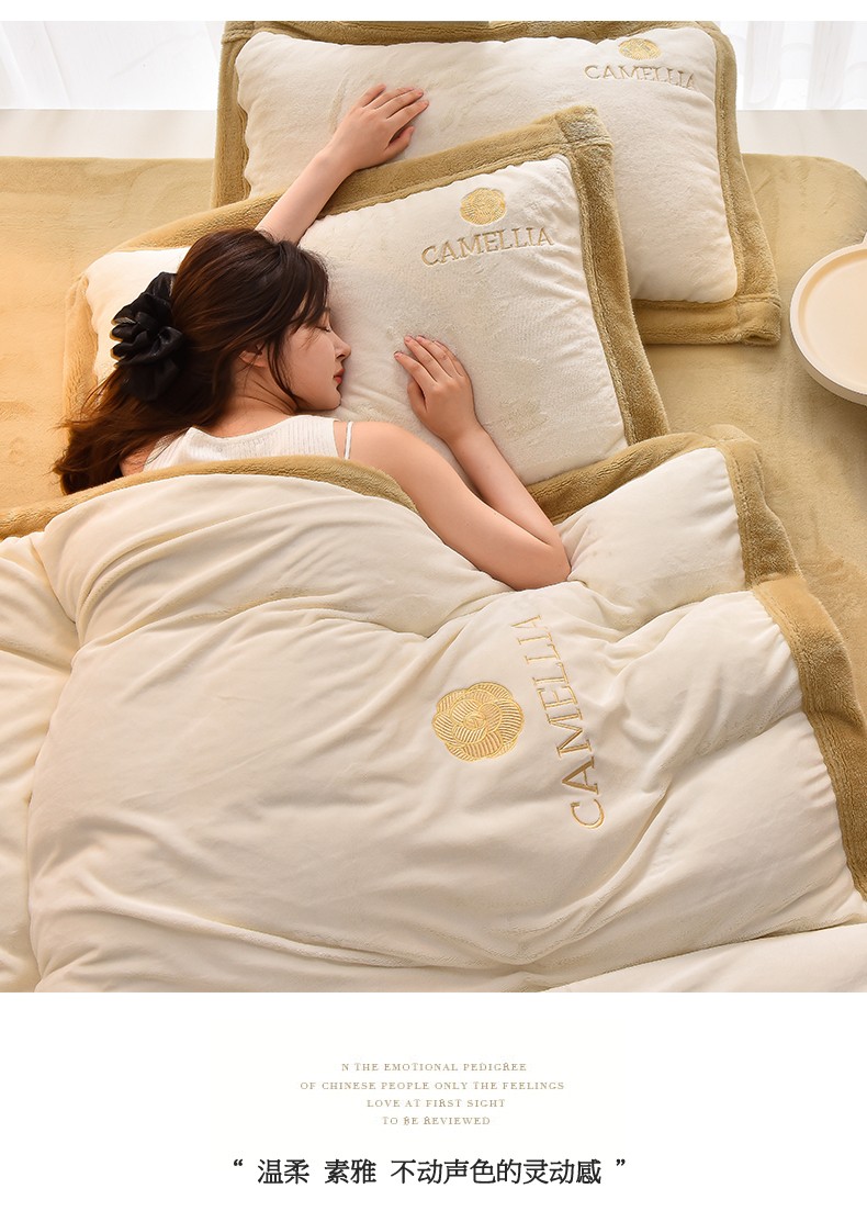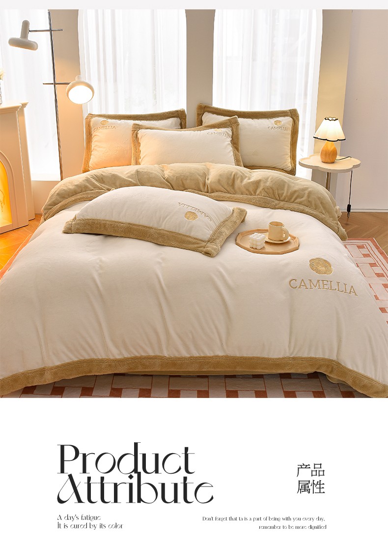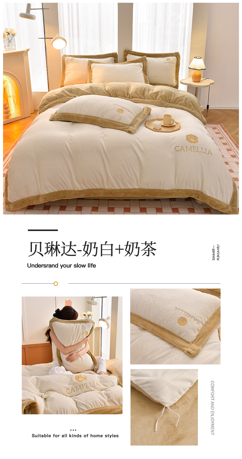 笙意 新款加厚牛奶绒刺绣四件套-贝琳达系列 贝琳达-奶白+奶茶