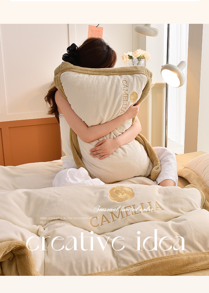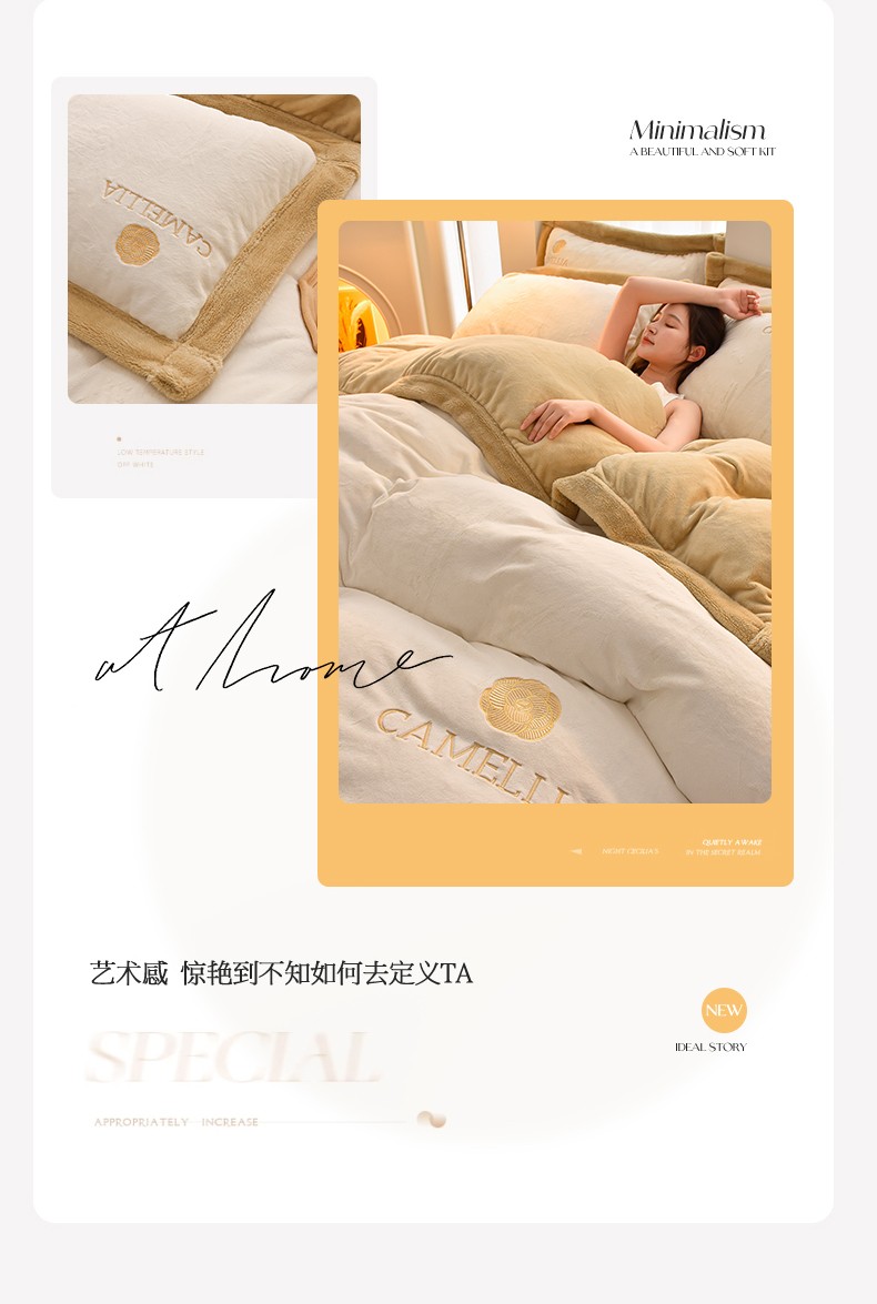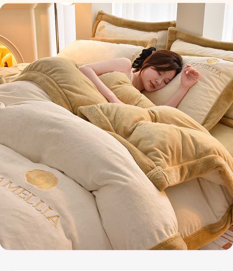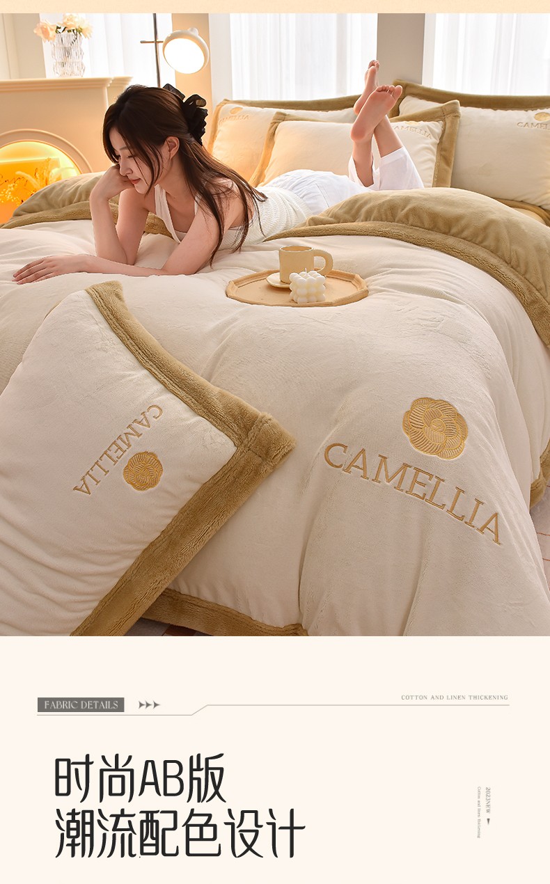 笙意 新款加厚牛奶绒刺绣四件套-贝琳达系列 贝琳达-奶白+奶茶