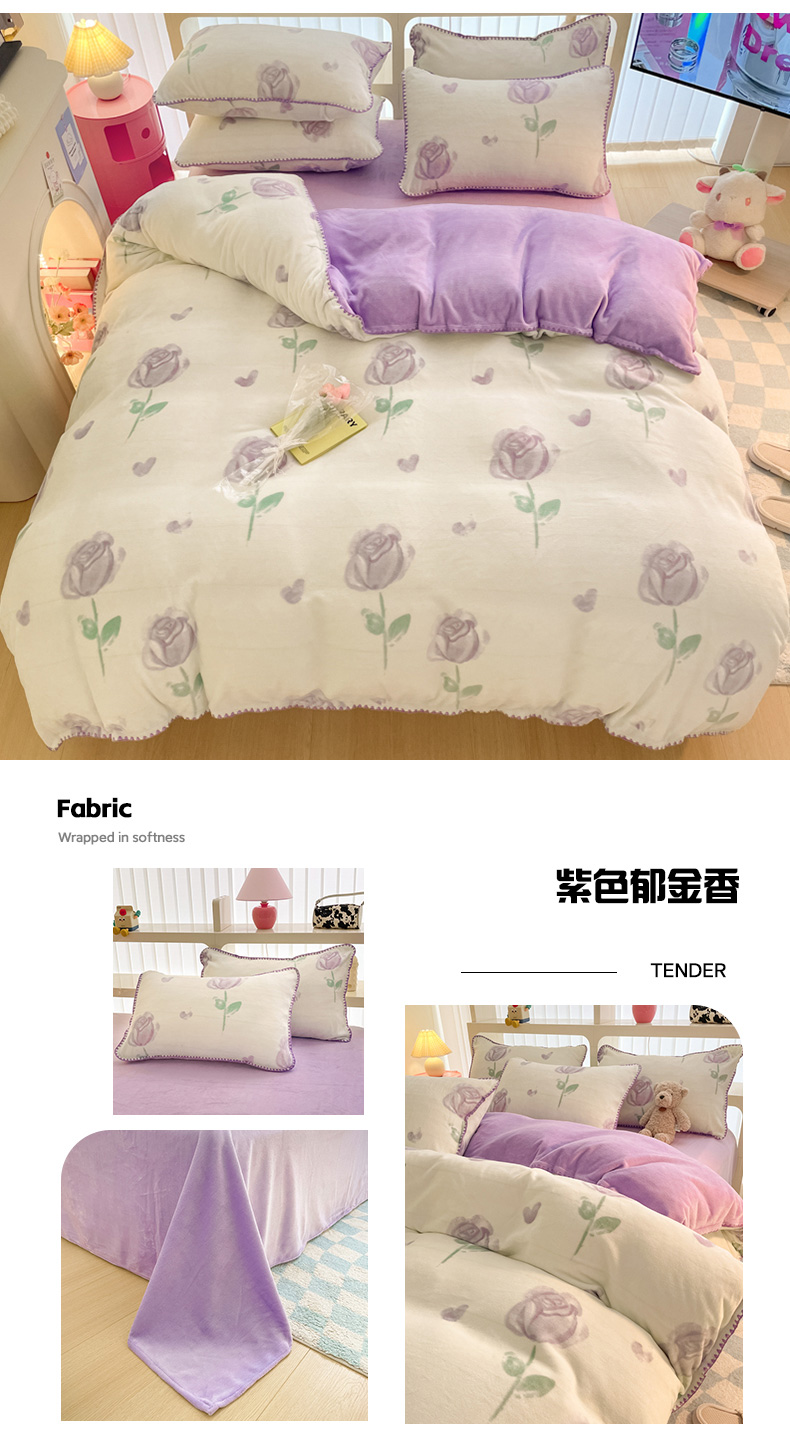 当前位置: 91家纺网 > 商品网购 > 床品套件 > 四件套 > 牛奶绒四件套 > 安哆啦家纺 2024新款牛奶绒三角针四件套 紫色郁金香