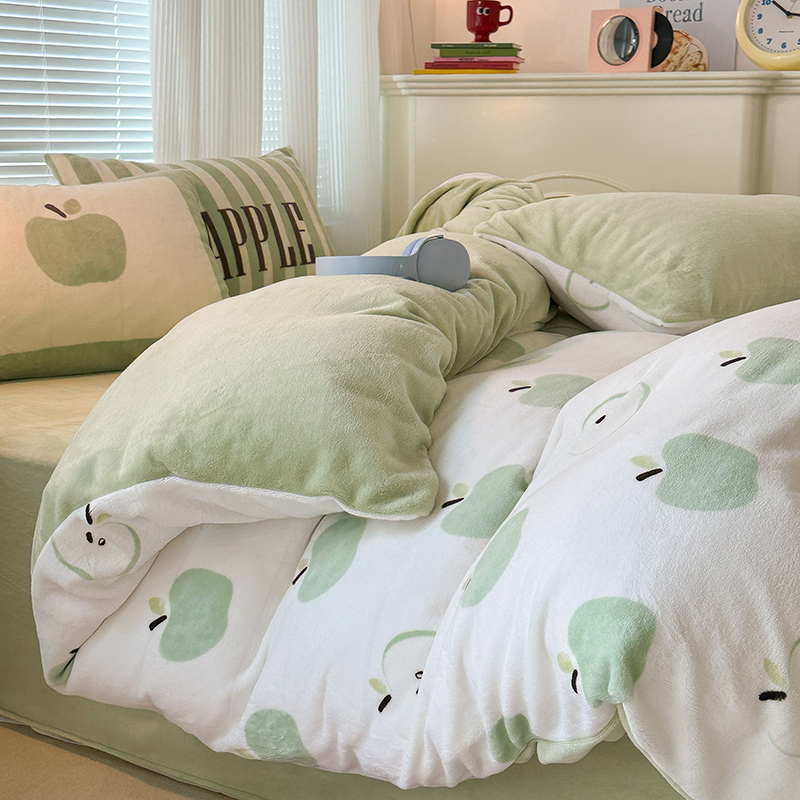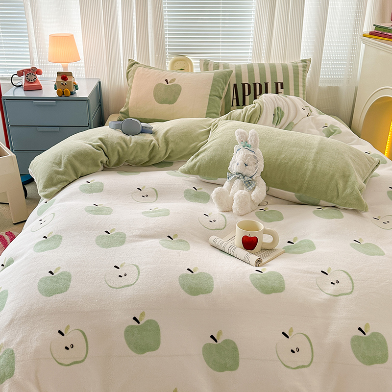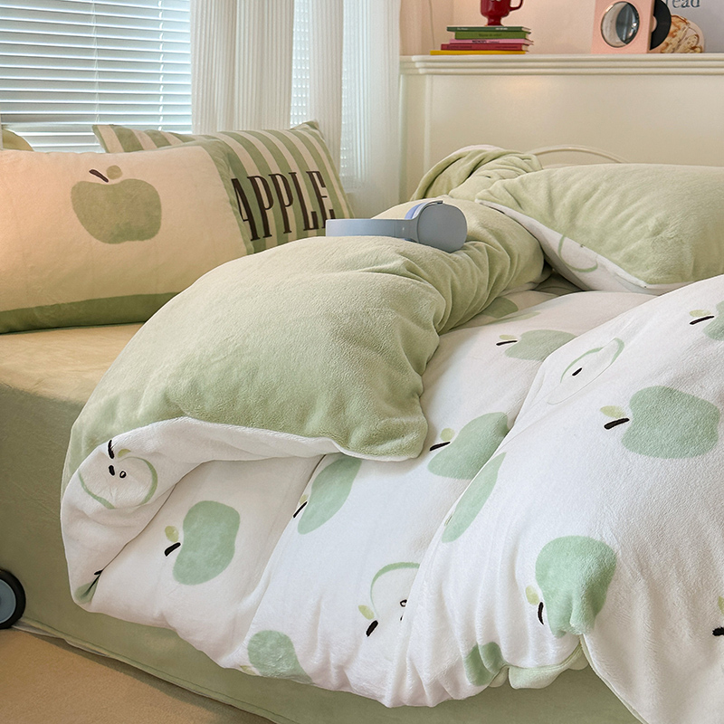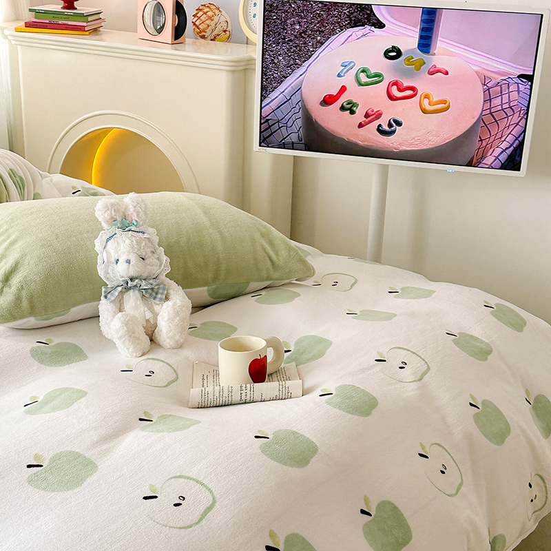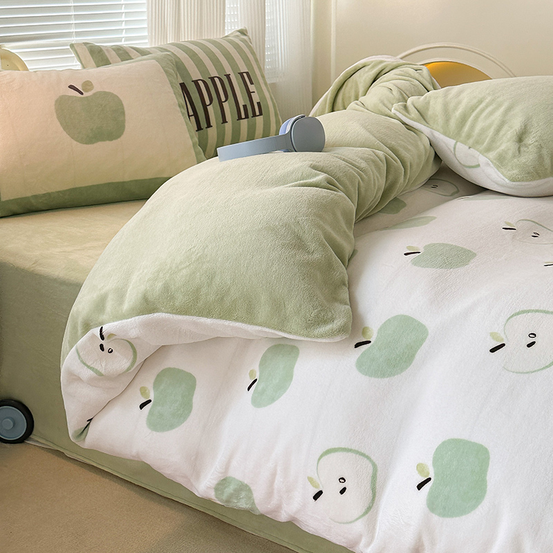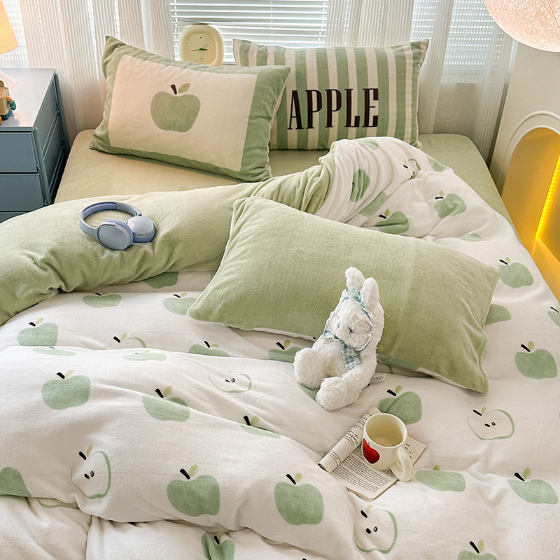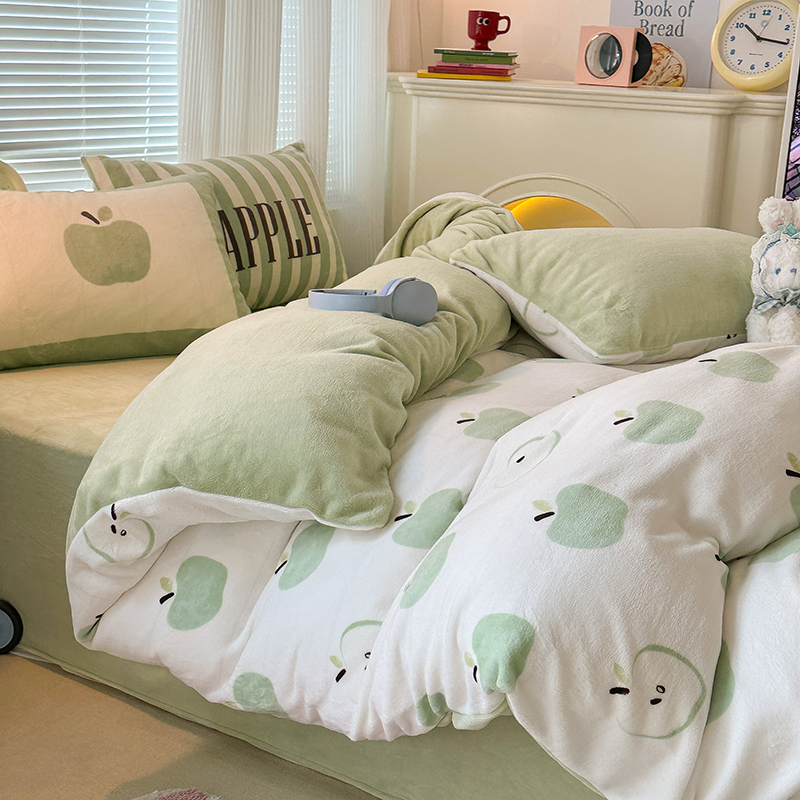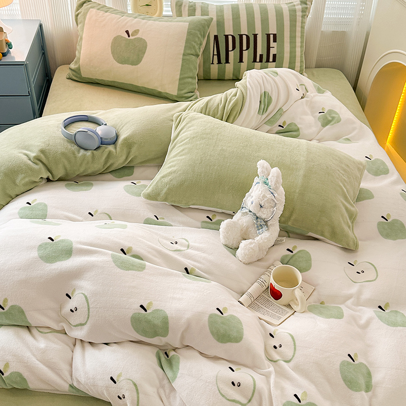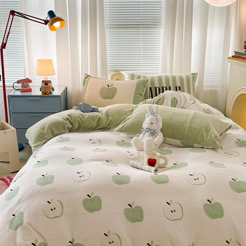 昔可家纺 2023新款大版印花枕套牛奶绒系列四件套 青苹果