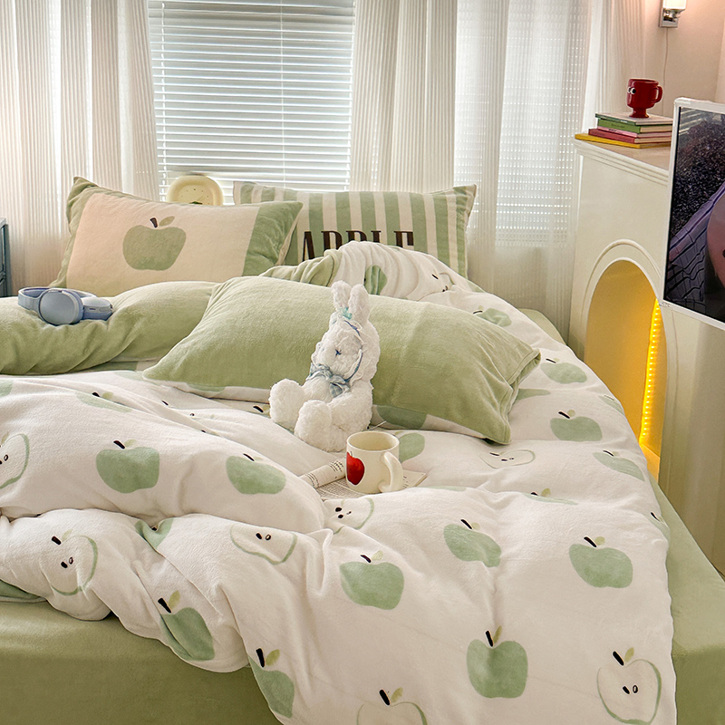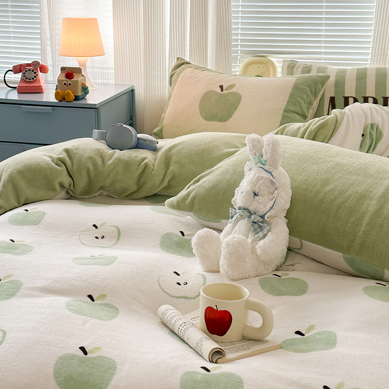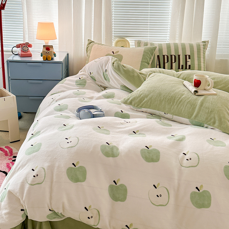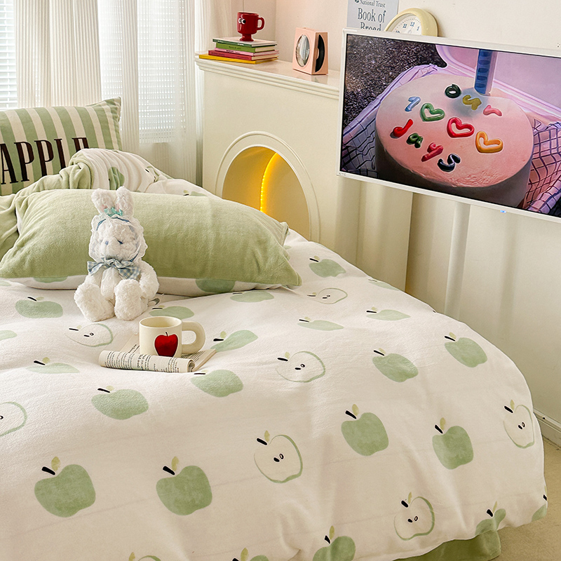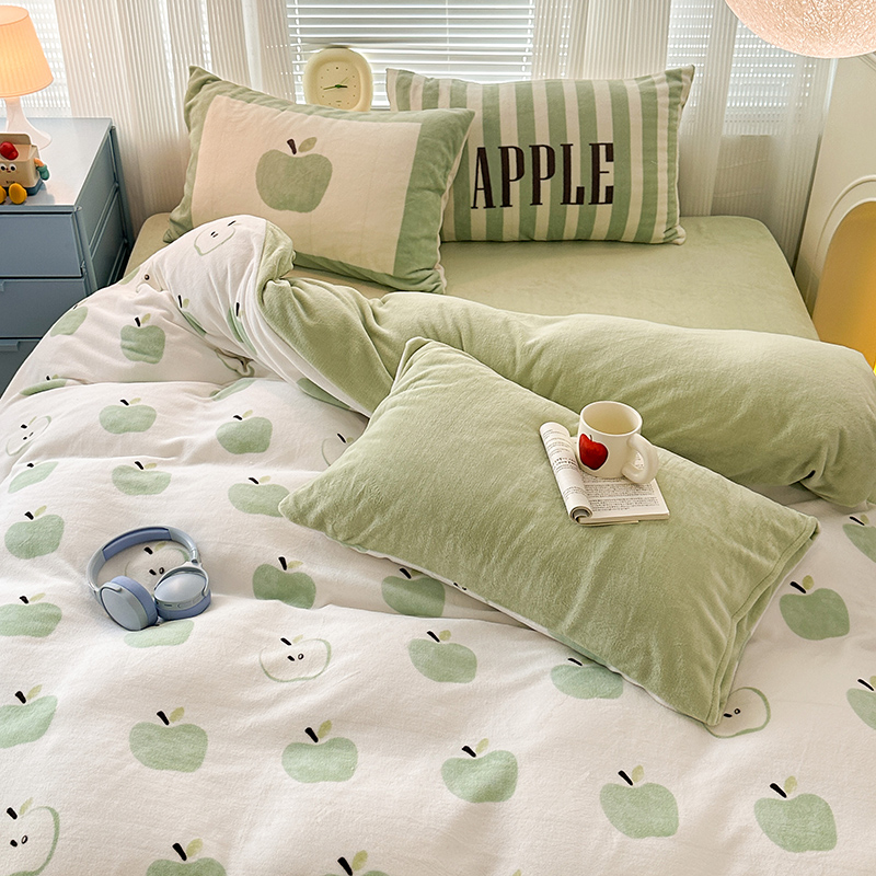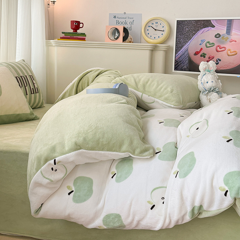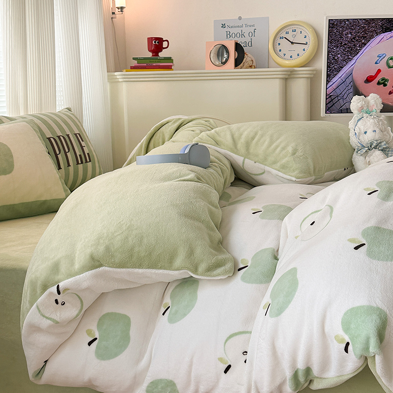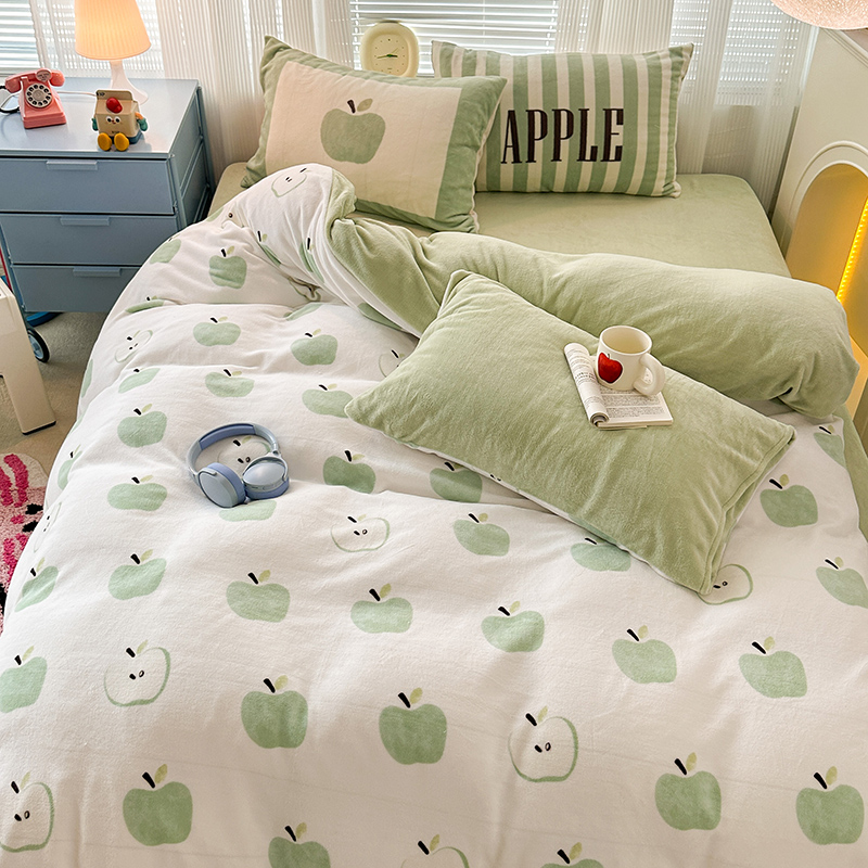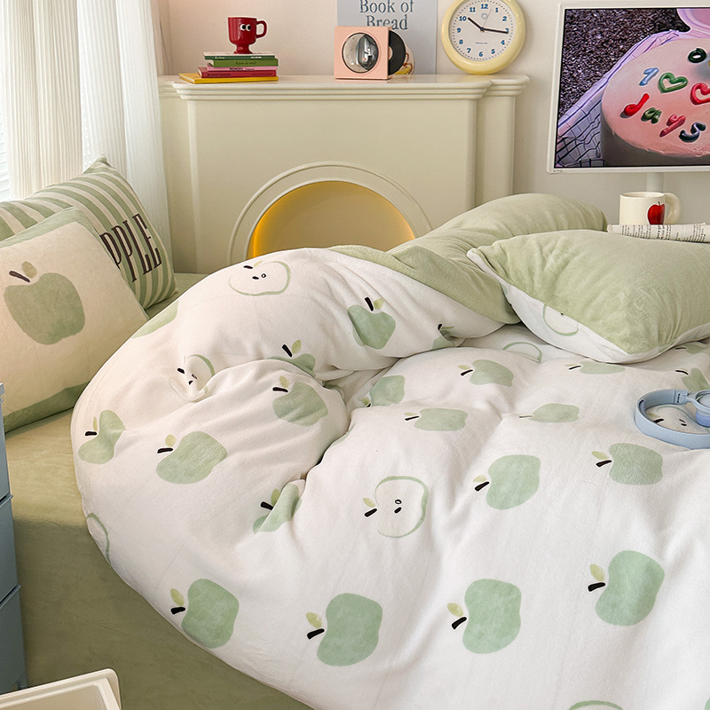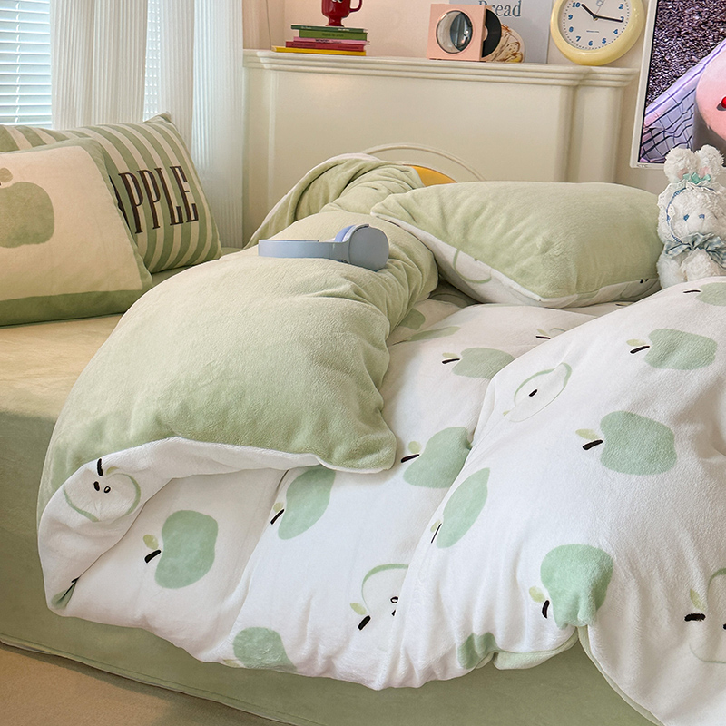 昔可家纺 2023新款大版印花枕套牛奶绒系列四件套 青苹果