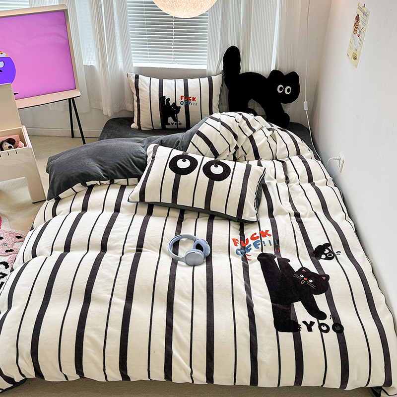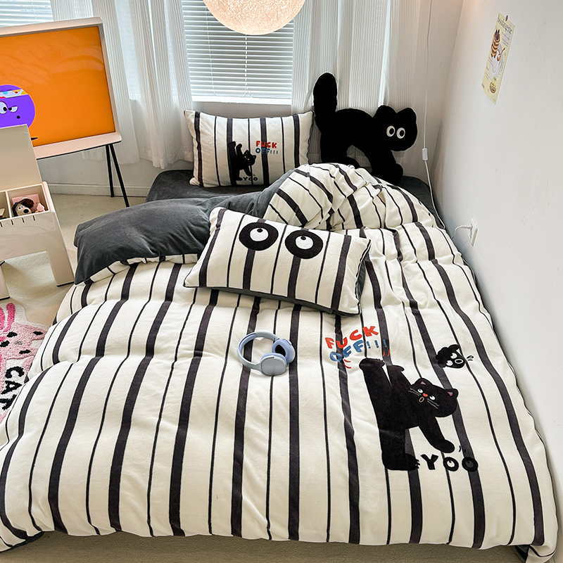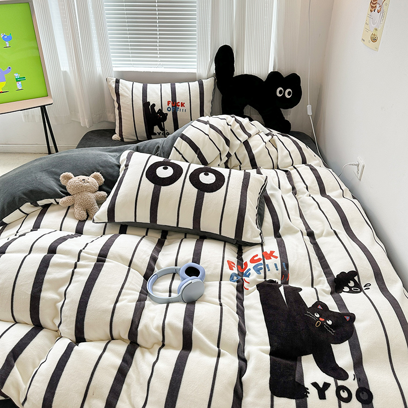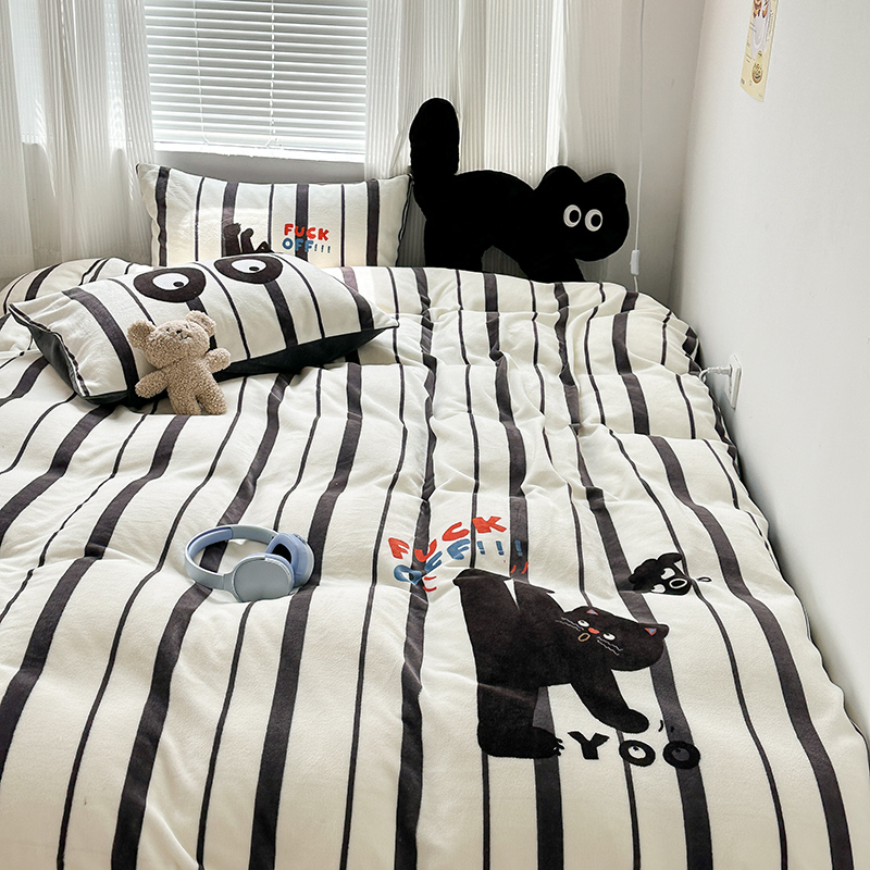 商品名称:昔可家纺 2023新款大版数码印花保暖牛奶绒四件套 功夫黑猫