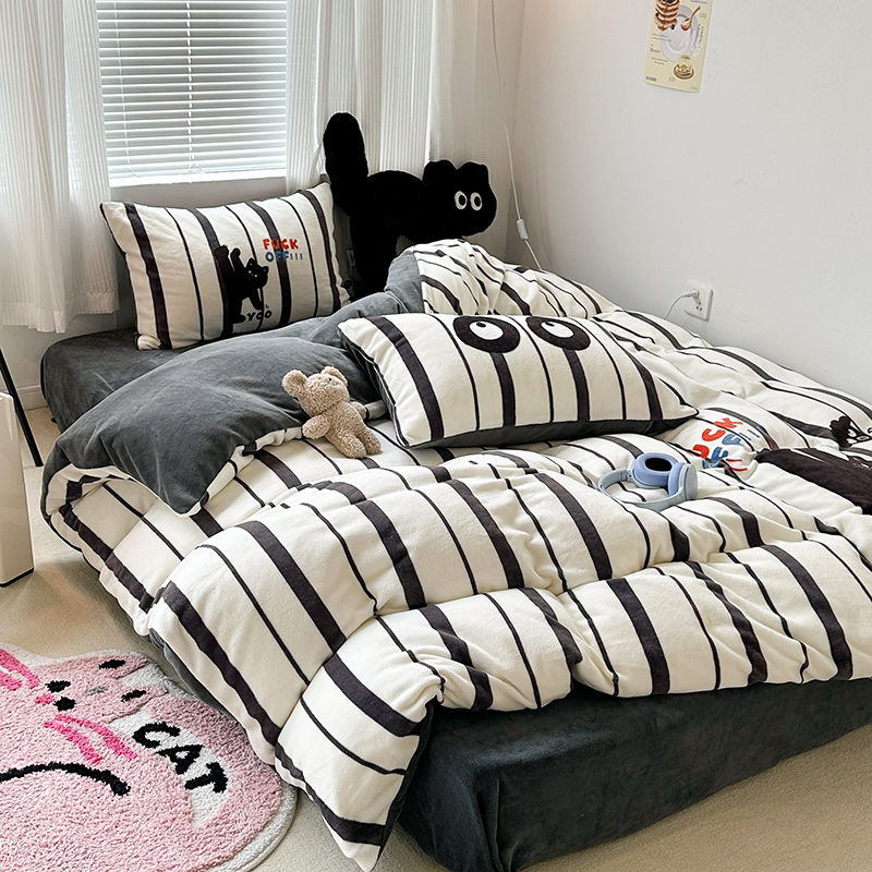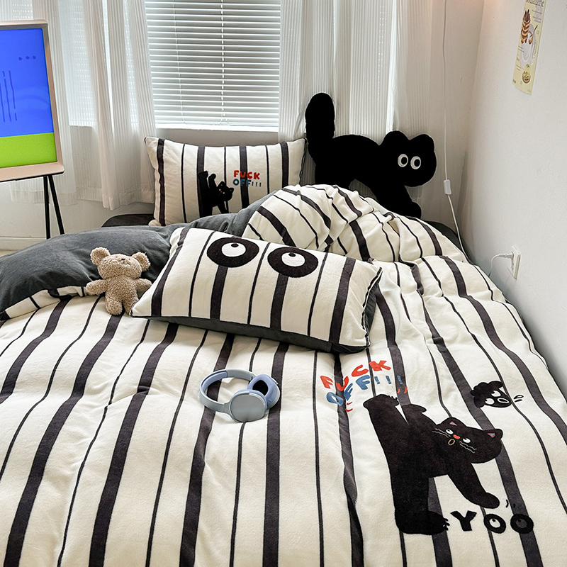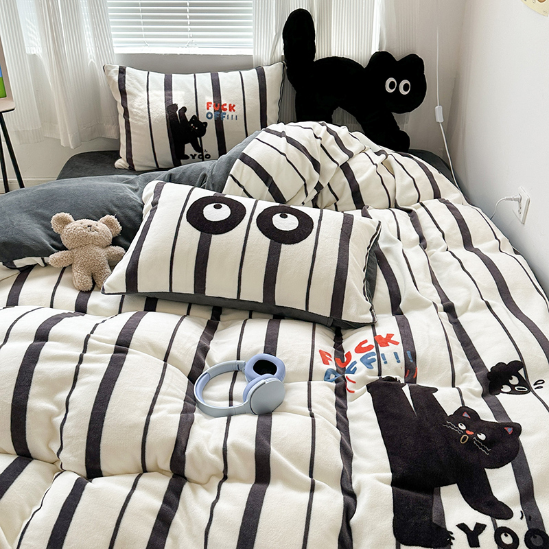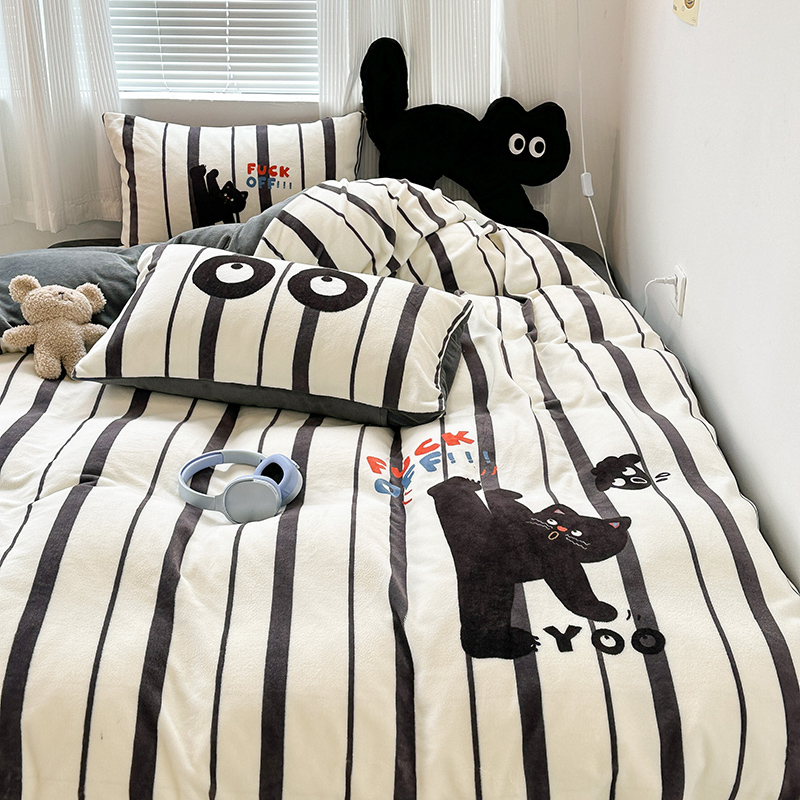 昔可家纺 2023新款大版数码印花保暖牛奶绒四件套 功夫黑猫