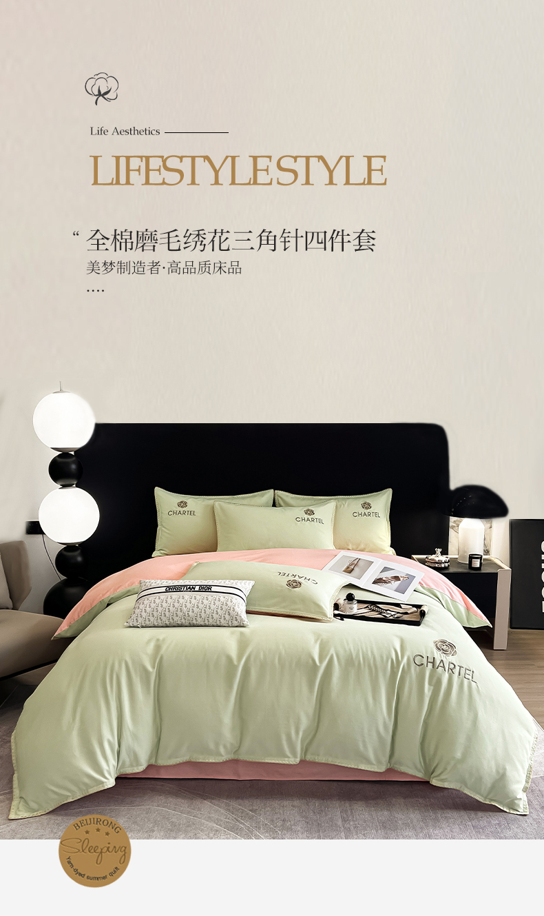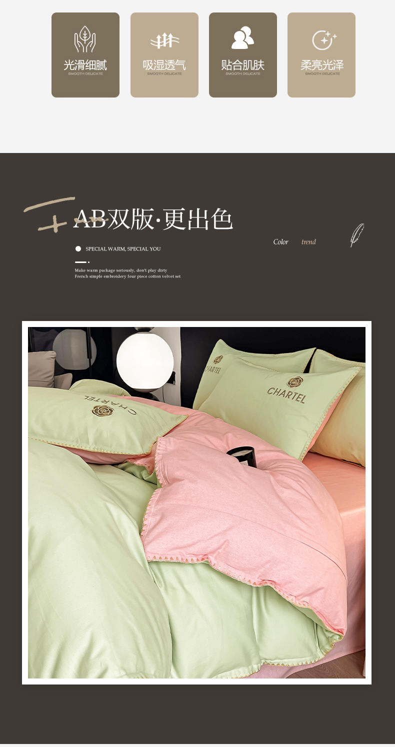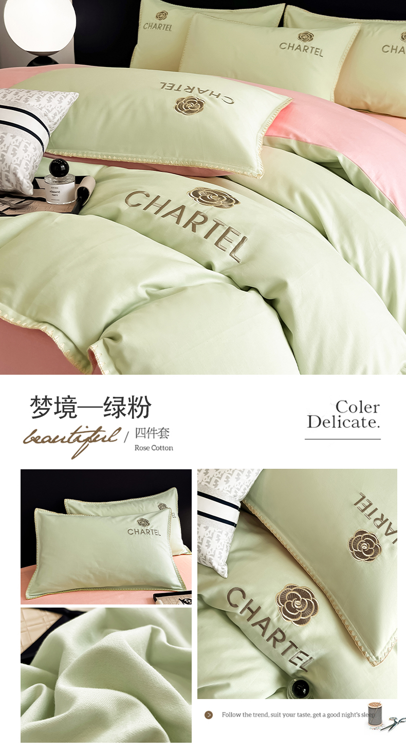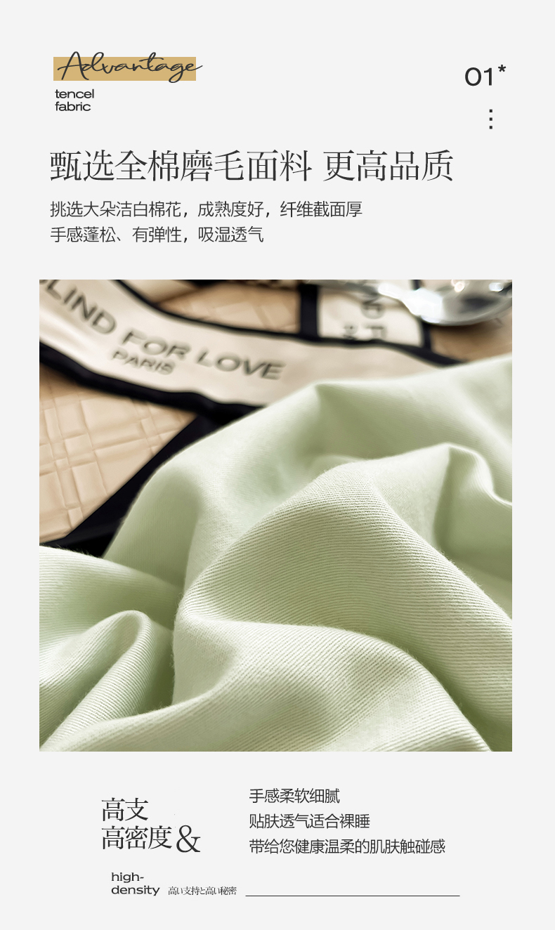 商品名称:2023新款磨毛梦境系列四件套 绿粉