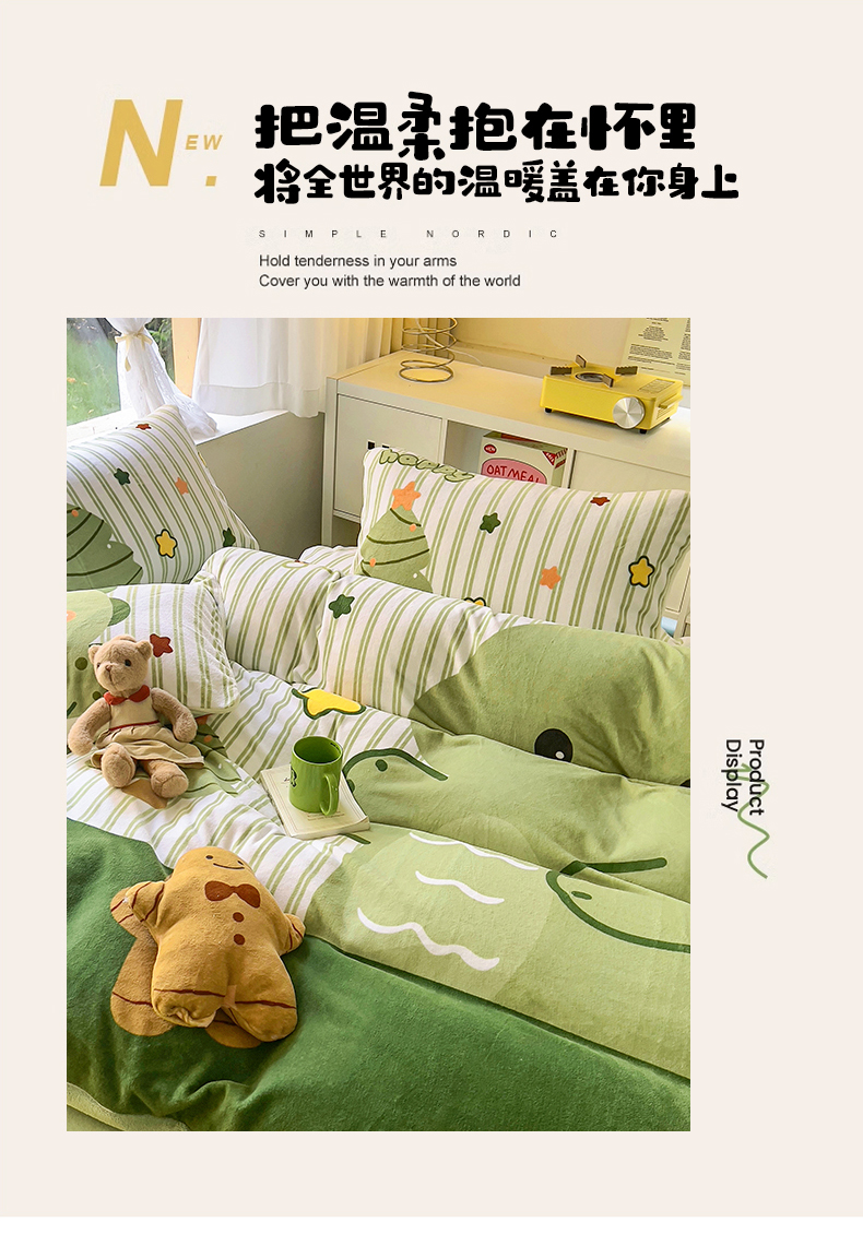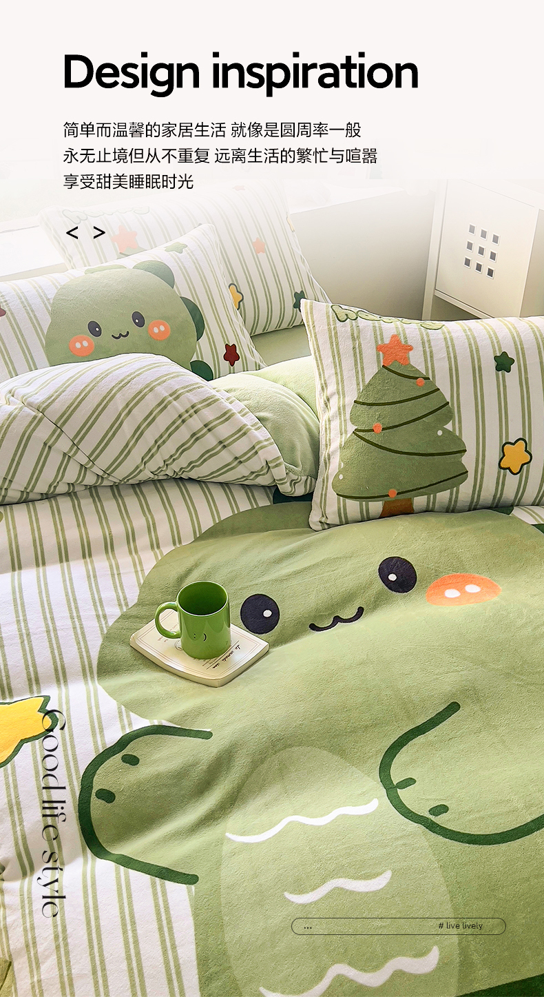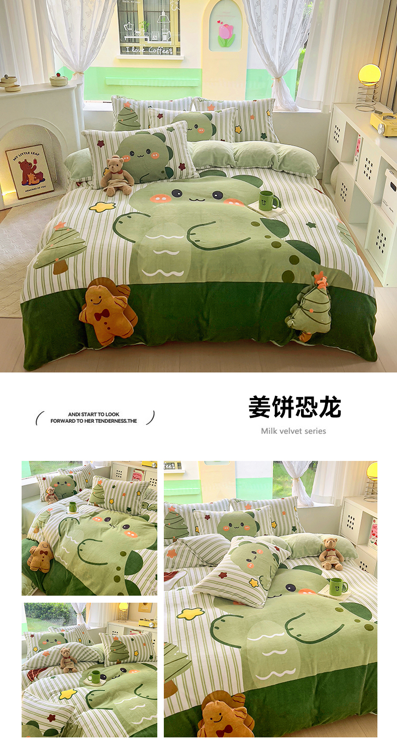 川悦生活 2023新款大版牛奶绒卡通玩偶脚工艺款四件套 姜饼恐龙