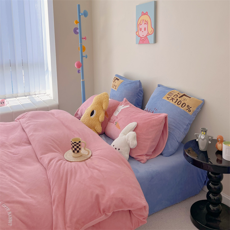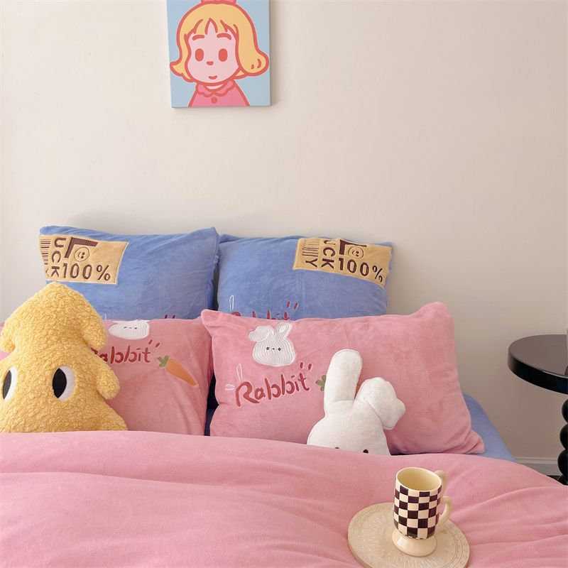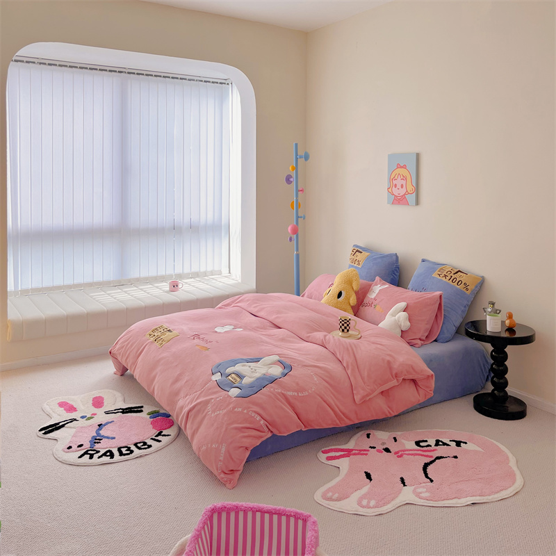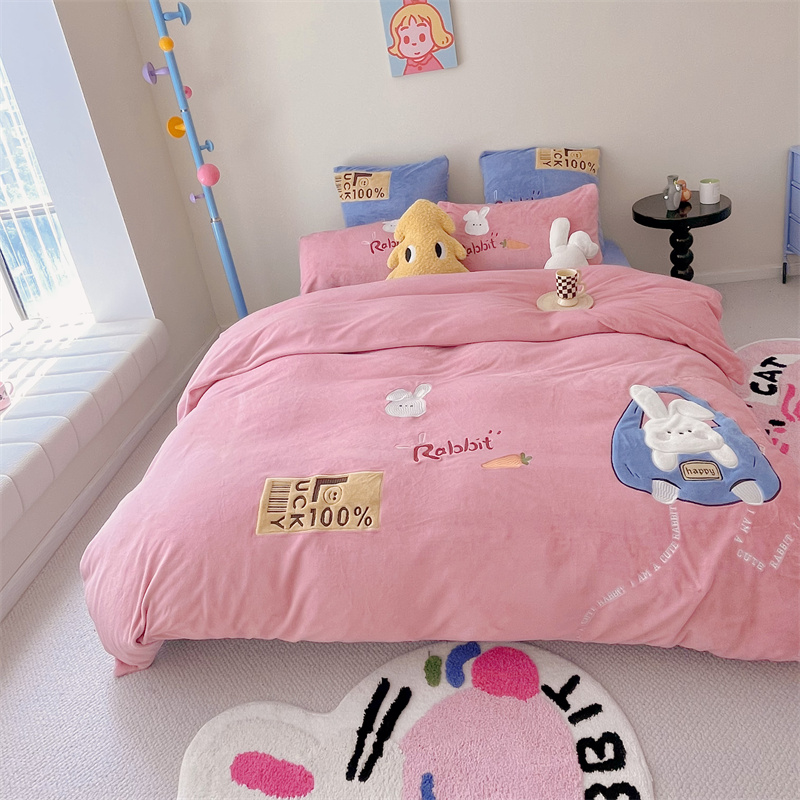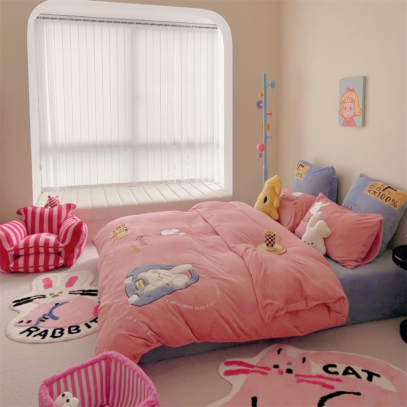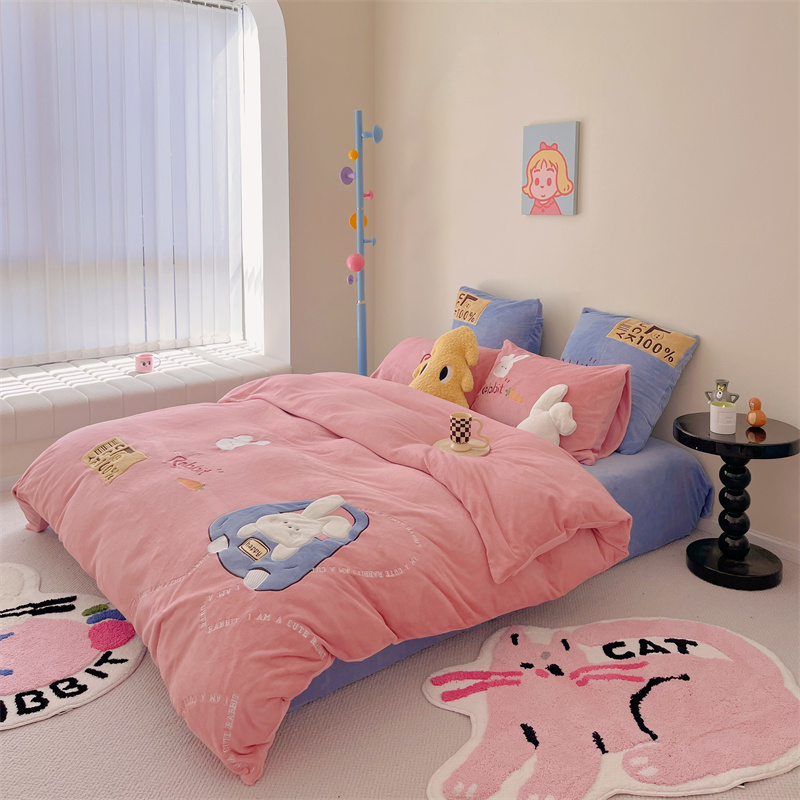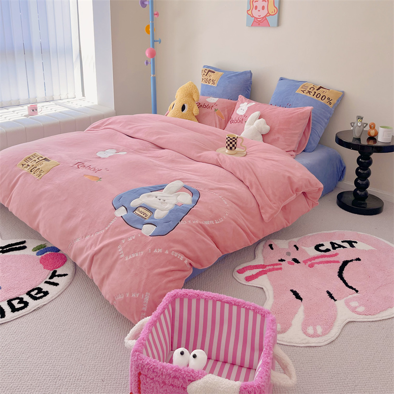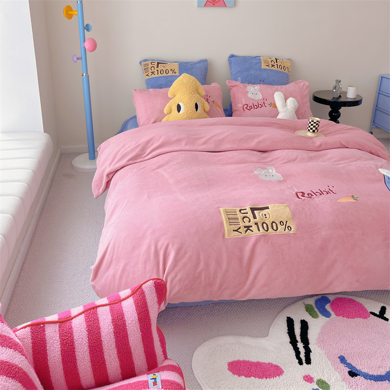 星野 2023秋冬高克重牛奶绒贴布绣多巴胺系列四件套 萌兜兜